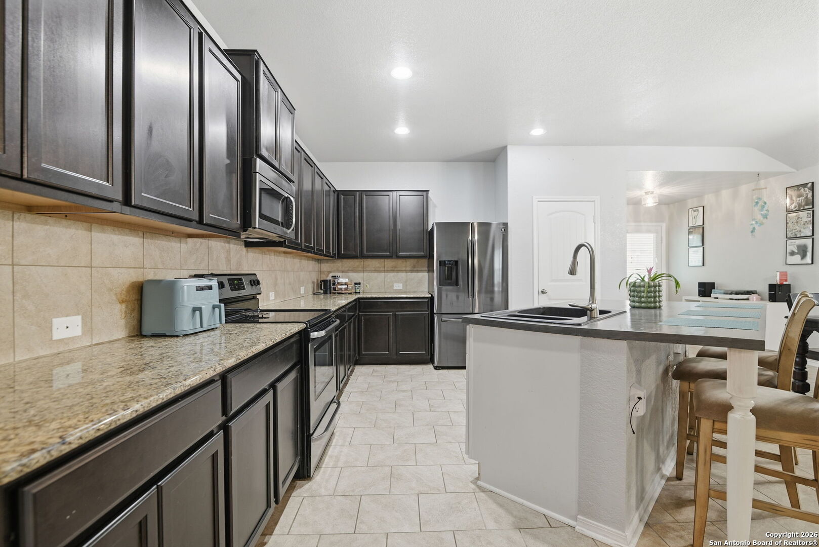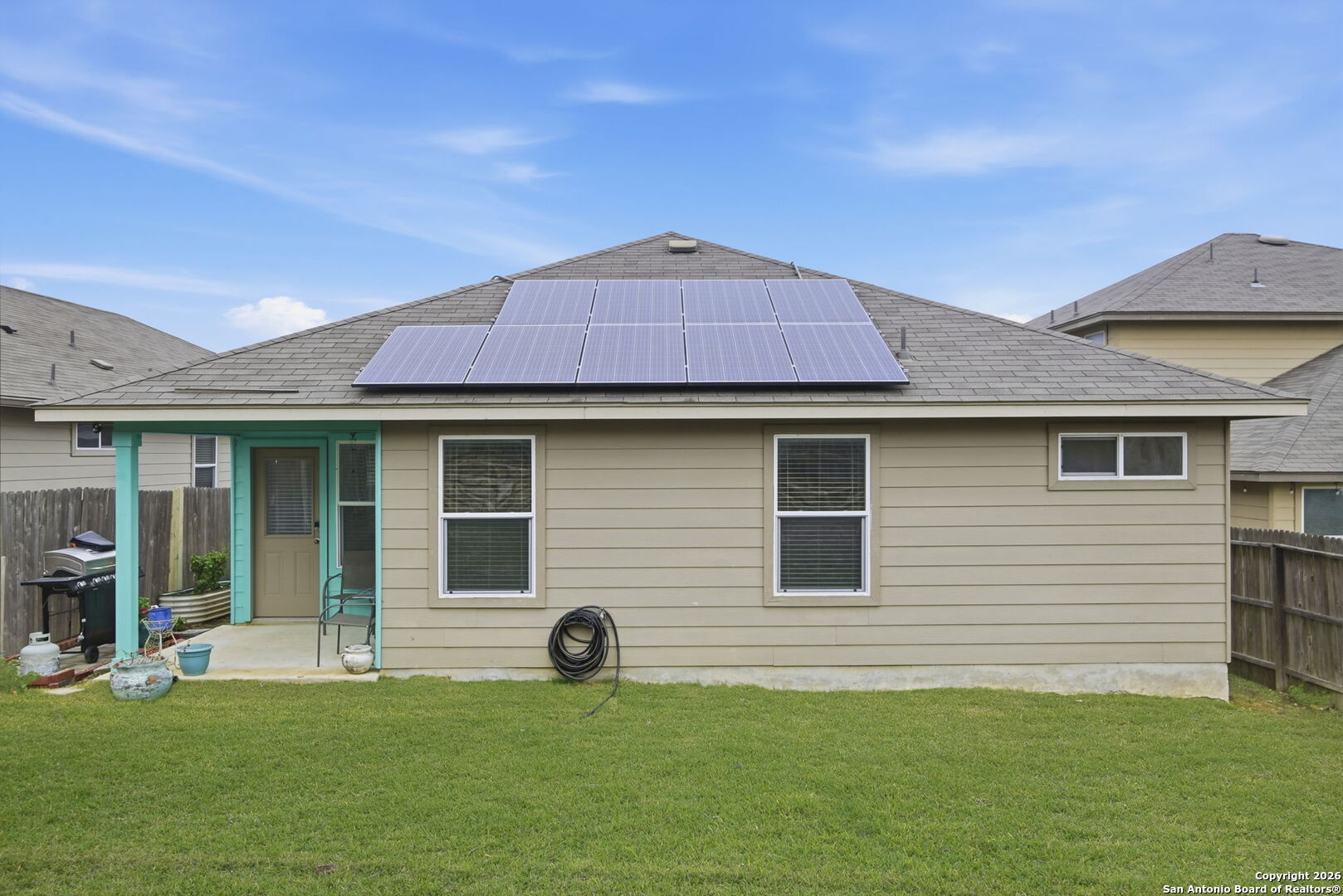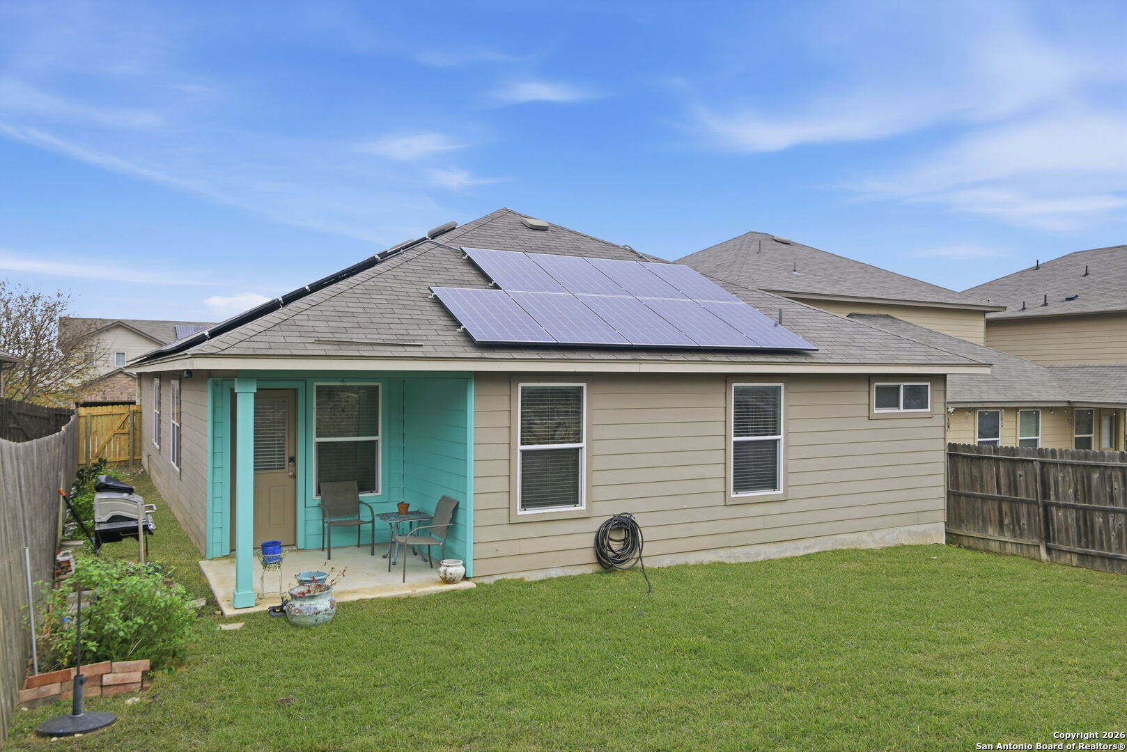 Welcome to this one story home with an open concept in the desired Solana Ridge subdivision. Home offers 4 beds-2 baths, hallway opens to family room, kitchen and dining area. Ideal for entertaining, plus area leads to outside covered patio. Home has many upgrades including solar panels, ceiling fans, baths have new shower heads & faucets, light fixtures, Nest thermostat, kitchen island w/butcher block countertop, foundation w/lifetime warranty and much more. Plus, all appliance stay with the house. Plus, minutes from Lackland AFB, schools and shopping and major freeways. Come and see this amazing home waiting for you!!