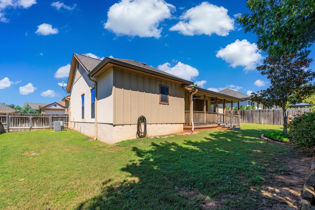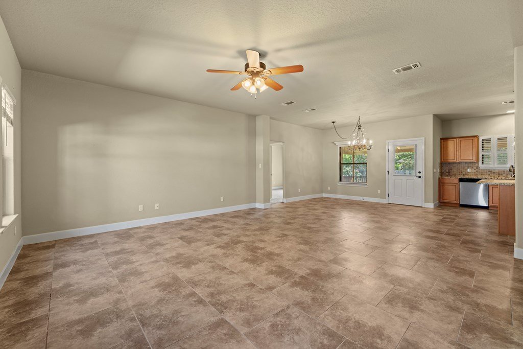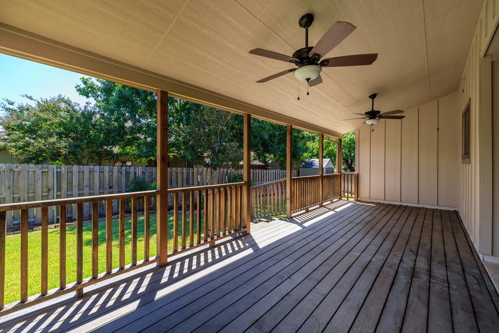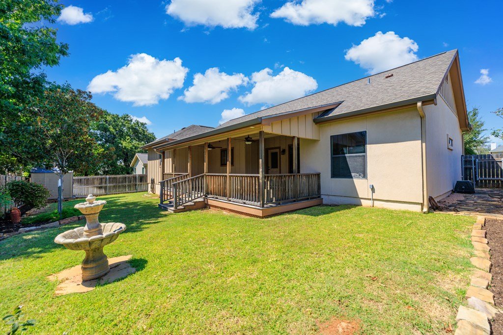Centrally located in the heart of Fredericksburg, this inviting Hill Country rock home offers both convenience and comfort. Just minutes from HEB, Fredericksburg High School and Middle Schools, Heritage School, Ambleside School, Methodist Hill Country Hospital, public tennis courts, and a variety of restaurants, the home is ideally positioned for easy living. Nestled in an established neighborhood, the property is part of an HOA that ensures a tidy, well-kept community. Inside, the home features tile flooring throughout the main living, kitchen, and dining areas, granite countertops, and a neutral color scheme that complements any style. Ample windows bathe the rooms in natural light, while generous closet space adds practical appeal. The primary suite includes a walk-in closet and split vanities for added convenience. Additional highlights include a two-car attached garage, a designated utility room for washer/dryer, and attic space for extra storage. Outdoors, the backyard is fully fenced for privacy and includes a storage shed. A standout feature is the custom oversized teak deck, complete with ceiling fans—perfect for relaxing or entertaining. Gutters add to the home's functionality and thoughtful upkeep. This home combines Hill Country character with modern amenities—all offered below appraised value, making it an exceptional opportunity.