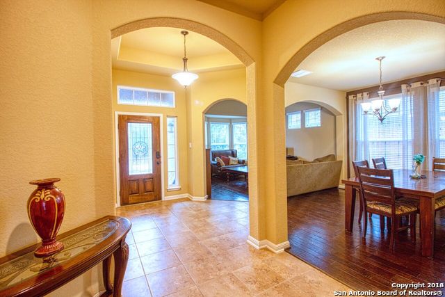 Luxurious high end upgrades in this amazing one story home. Beautiful hand scraped hardwood floors in family, formal dinning & study. Solar Panels. Sought after Sedona Floorplan that has a 3 car garage and secondary master. Gourmet kitchen with island, double ovens, travertine backsplash, SS appliances, walk in pantry and large breakfast room. Huge private master suite with walk in shower/ garden tub and separate vanities. Covered patio with extended deck, Bose speakers in family room,H20 Softener.