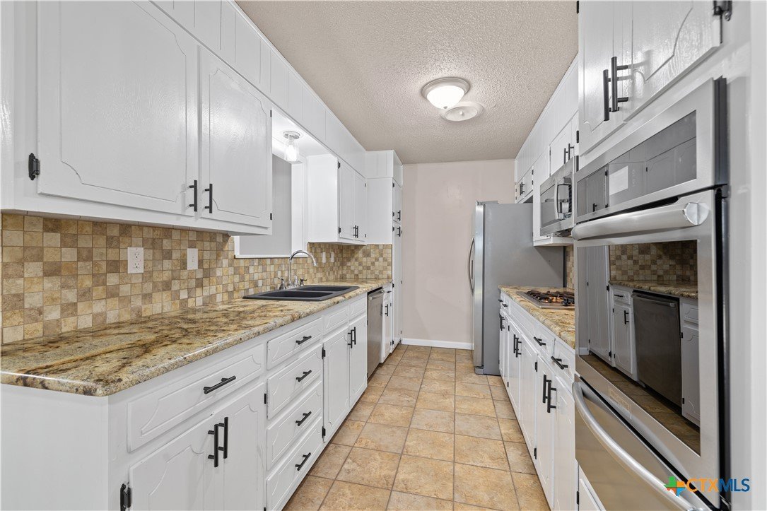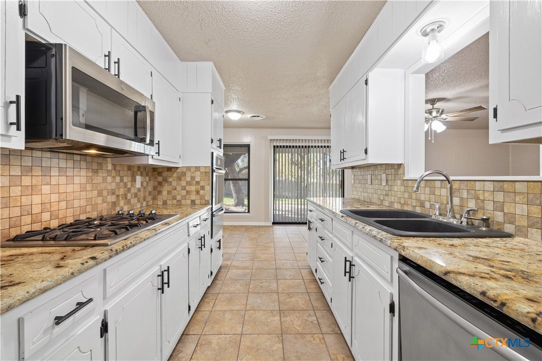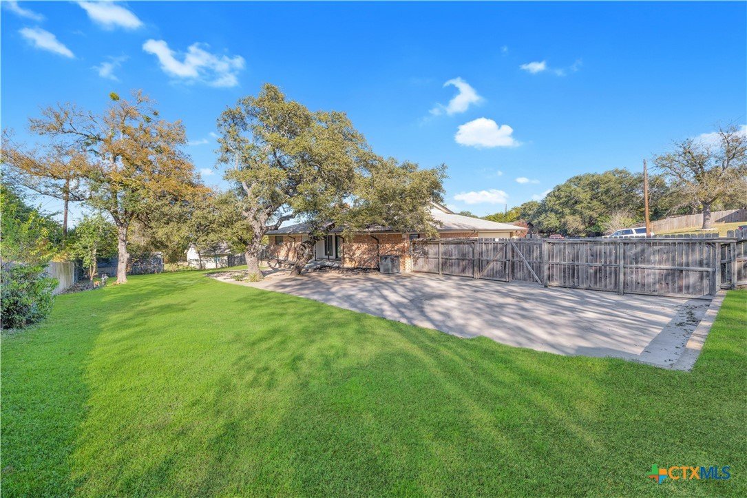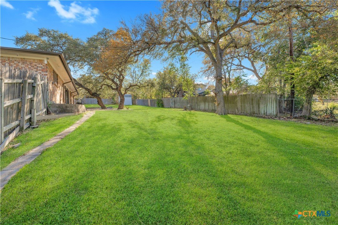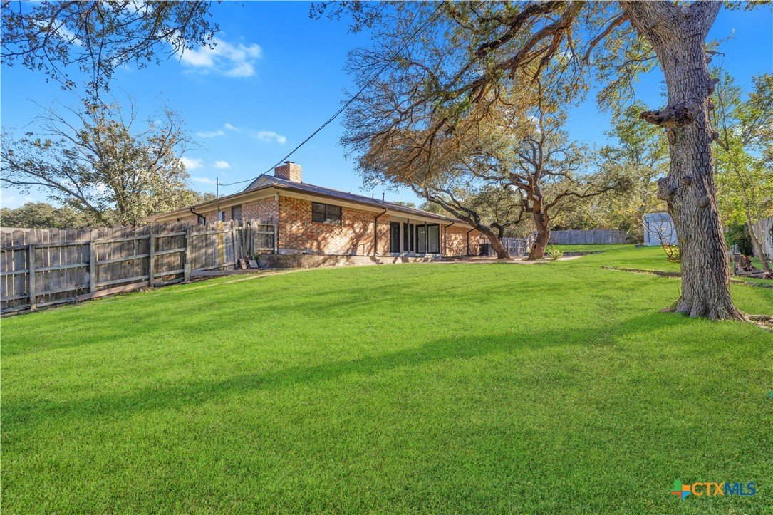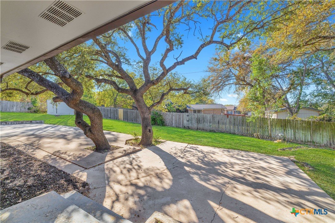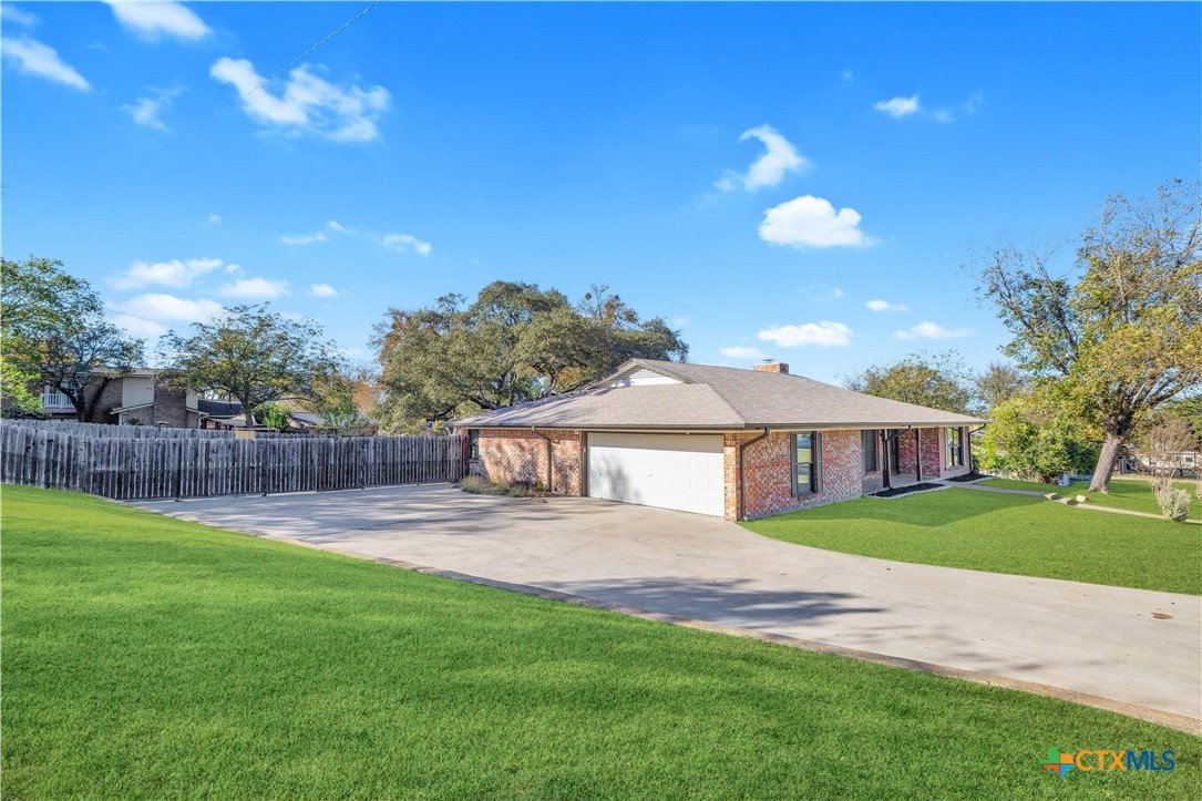 Welcome to this charming and character-filled 4-bedroom, 2-bath home situated on almost half an acre in the heart of Copperas Cove. From the moment you arrive, the beautifully paved, oversized driveway, large front yard, and mature trees create an inviting and picturesque setting. The home also features a convenient side-entry garage, adding to its appeal and functionality. Inside, the property showcases numerous upgrades, including fresh interior and exterior paint, full gutters, new light fixtures, new carpet, and new luxury vinyl plank flooring in select common areas. The kitchen offers a gas cooktop, new stainless steel appliances, and the refrigerator conveys. Additional highlights include gas fireplaces with brick built-ins, an HVAC system replaced in 2023, and a water heater replaced in 2023. Out back, you’ll find a spacious yard complete with a covered patio, mature trees providing ample shade, and a storage shed for additional convenience. The large side yard and generous backyard offer endless potential for outdoor enjoyment, gardening, or future projects. This gorgeous home offers a rare blend of charm, modern updates, natural gas on the property, and impressive outdoor space. Don’t miss the opportunity to make this standout property your own.
