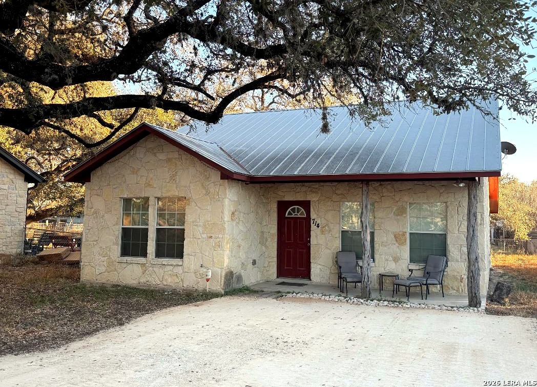 Charming rock home in Pleasanton with timeless curb appeal-rock on all four sides, a durable metal roof, and a welcoming covered porch shaded by beautiful mature oak trees. Inside, you'll find 2 bedrooms, 2 baths, and 1,090 sq ft with a comfortable layout and an open kitchen with breakfast bar. Energy-efficient features include double-pane windows, radiant barrier roof decking (Tech Shield), and a Trane HVAC system with a heat pump. Both bathrooms offer exhaust vents/heater units for added comfort. A great blend of character, comfort, and efficiency-schedule your showing at 714 Houston today!