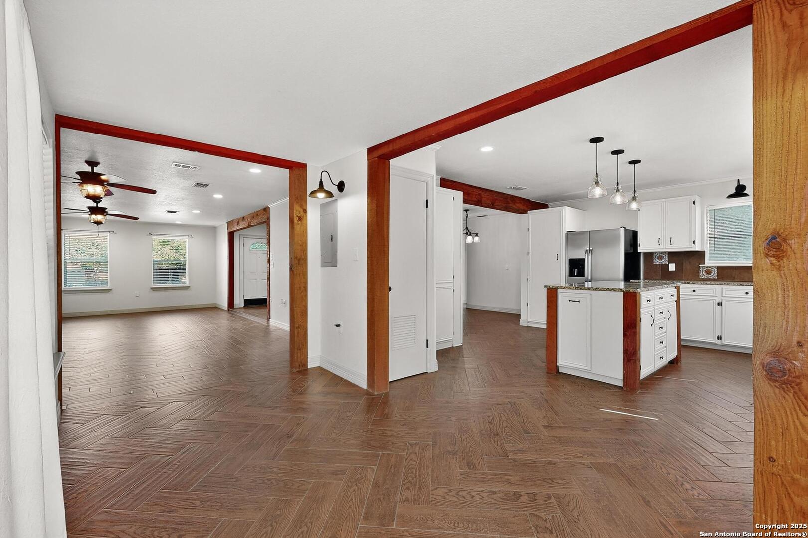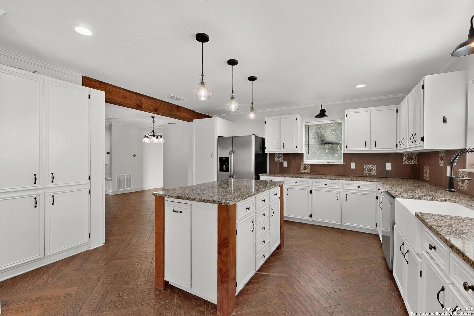 Looking for a 4-bed home in China Grove with room to breathe and no HOA? This 1.25-acre ranch-style retreat offers modern comfort, privacy, and serious workshop space just outside San Antonio. Set under mature trees in the peaceful community of China Grove, this updated 4-bedroom, 3-bath home blends country serenity with city convenience. Inside, you'll find 2,375 square feet of flexible living with an oversized living room, island kitchen, gas fireplace, and separate dining. The primary suite sits upstairs with a spacious walk-in closet and double-vanity bath, while three secondary bedrooms, a full mudroom, and laundry are all on the main level. Originally built in 1964 and tastefully remodeled in 2017 (including roof), this home has been continuously improved. Highlights include a custom steel-and-cedar south fence (2022), Hardie plank cement siding (2023), trenched water lines to garden and greenhouse (2021), and upgraded utility connections. Outside, a 36x25 ft detached garage/workshop with electricity, greenhouse, and shed offer massive flexibility for hobbies, home business, or storage. * 2-car garage plus extended gravel drive * Zoned HVAC, natural gas, and septic * Covered patio and partial fencing * No HOA, low Bexar County taxes ($7,743/year) * East Central ISD: Sinclair, Heritage, East Central High * Easy access to Hwy 87, I-10, and downtown SA Whether you're gardening, tinkering, or entertaining, this move-in-ready home offers space to grow and room to roam.