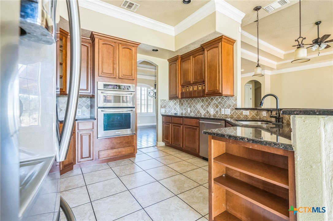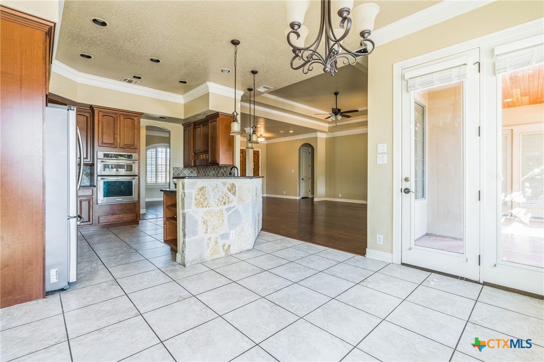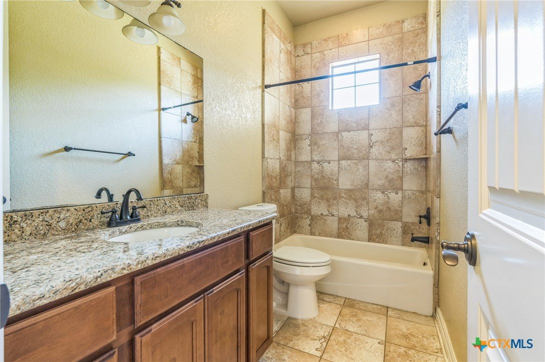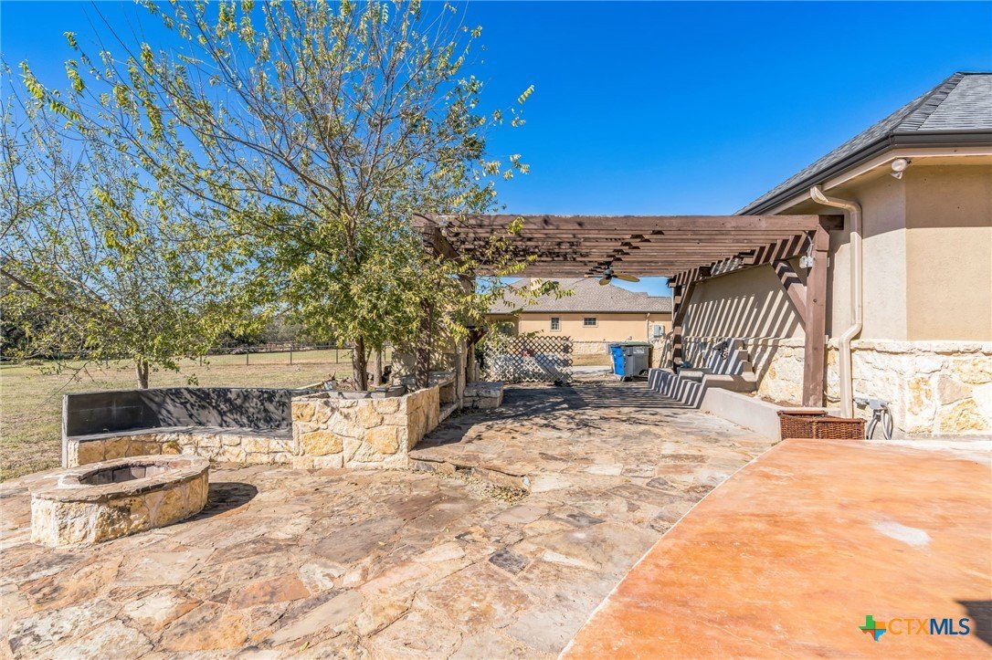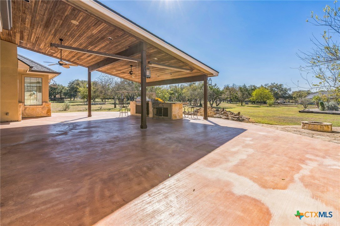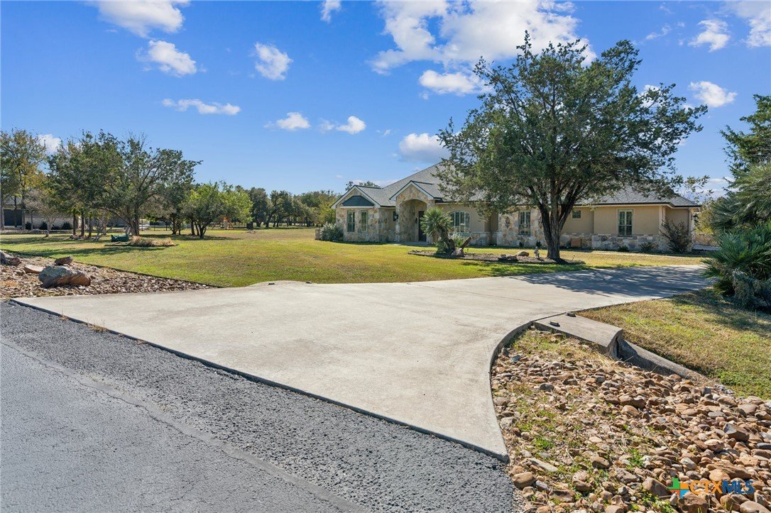 Check out this beautiful home with countryside views in New Braunfels, TX! This stunning 3,166 square foot home consists of 5 bedrooms, 4 1/2 bathrooms and a 3 car garage! Grand entry way with high vaulted ceilings and cherry brown wood flooring. Stunning kitchen that is open to family room and consists of a breakfast bar, dark granite countertops, light brown cabinets, dual ovens and stainless steel appliances! Large laundry room with ample cabinet space and a separate sink. Spacious primary bedroom nestled on the main level with a vaulted ceiling and an ensuite with a large dual vanity, nice soaking tub, separate shower and huge walk-in closet with built in shelving. Upon entering the second level, you have another living area with a built in entertainment center! Large three car garage with storage cabinets and counters adding additional storage! Awesome covered patio equipped with a grill and fire pit. Great for entertaining guests! Convenient to IH-35. Don't miss this opportunity, schedule an appointment today!