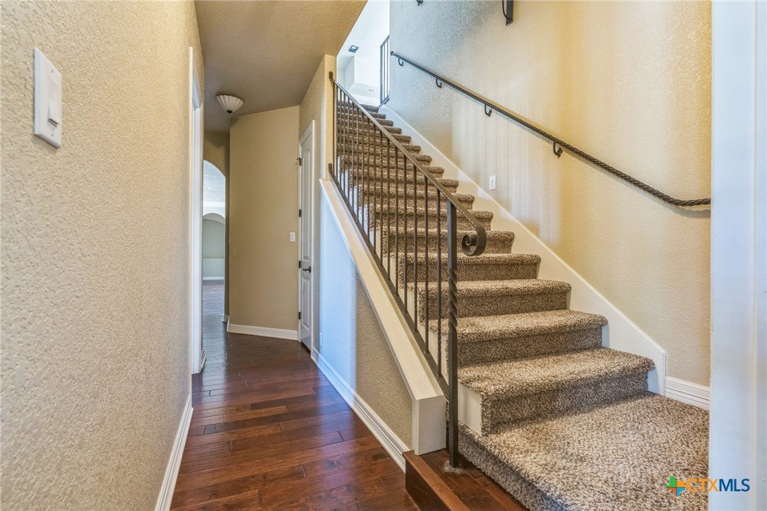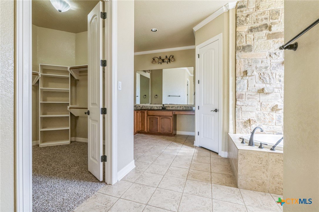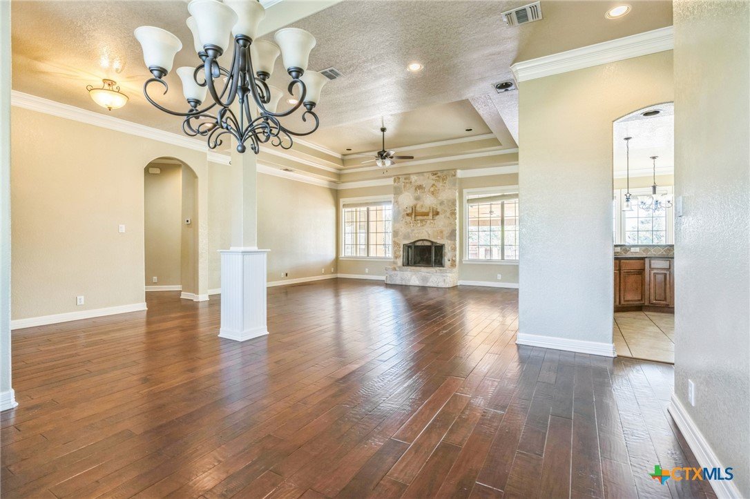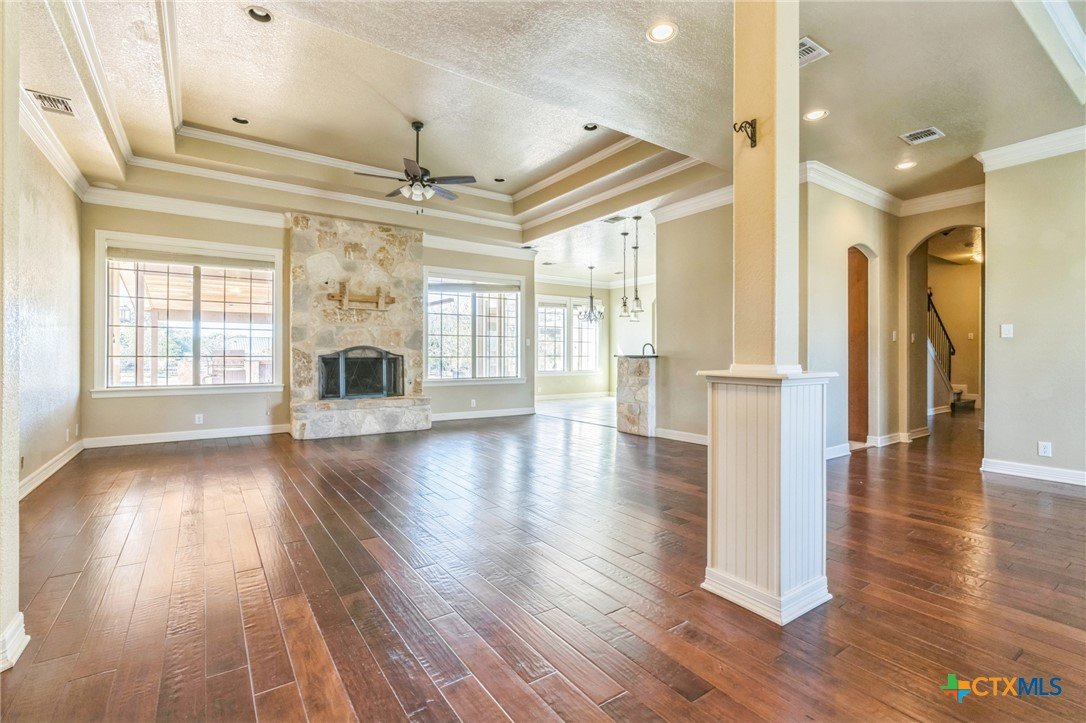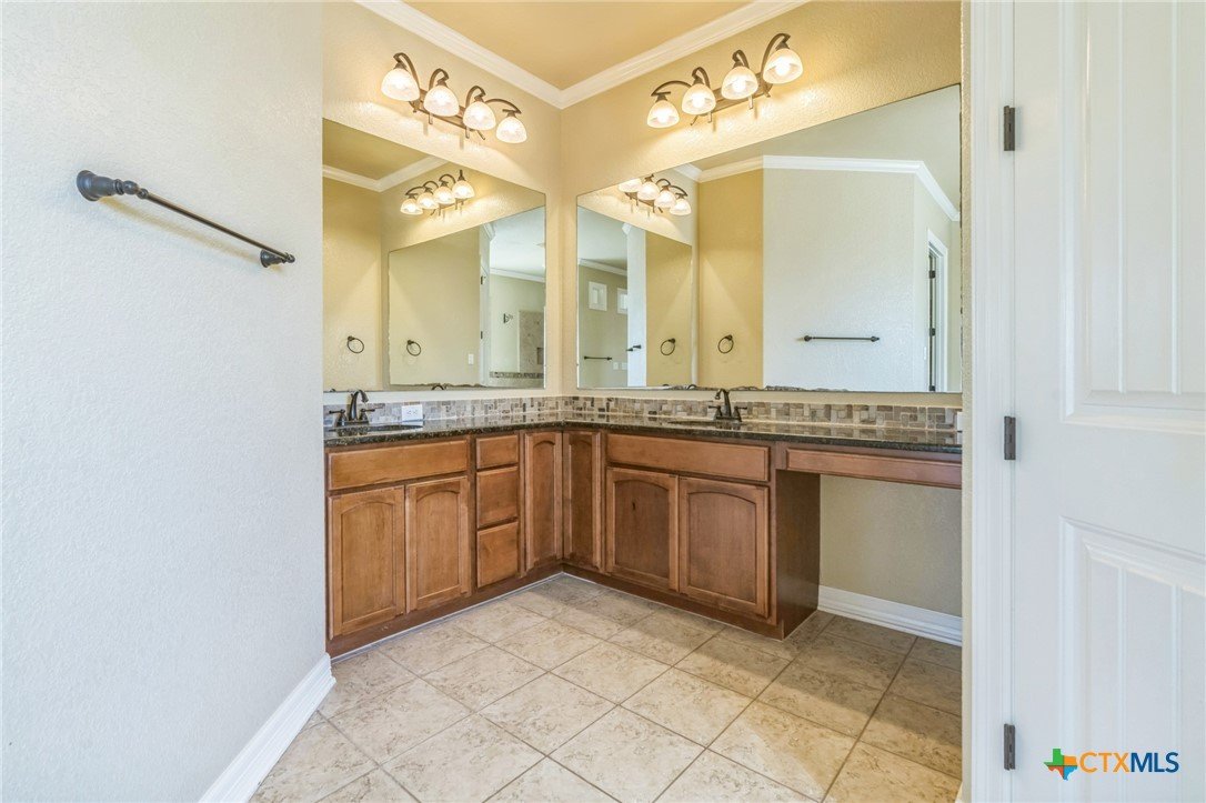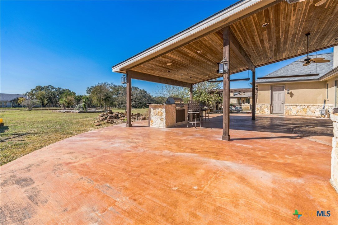 Check out this beautiful home with countryside views in New Braunfels, TX! This stunning 3,166 square foot home consists of 5 bedrooms, 4 1/2 bathrooms and a 3 car garage! Grand entry way with high vaulted ceilings and cherry brown wood flooring. Stunning kitchen that is open to family room and consists of a breakfast bar, dark granite countertops, light brown cabinets, dual ovens and stainless steel appliances! Large laundry room with ample cabinet space and a separate sink. Spacious primary bedroom nestled on the main level with a vaulted ceiling and an ensuite with a large dual vanity, nice soaking tub, separate shower and huge walk-in closet with built in shelving. Upon entering the second level, you have another living area with a built in entertainment center! Large three car garage with storage cabinets and counters adding additional storage! Awesome covered patio equipped with a grill and fire pit. Great for entertaining guests! Convenient to IH-35. Don't miss this opportunity, schedule an appointment today!