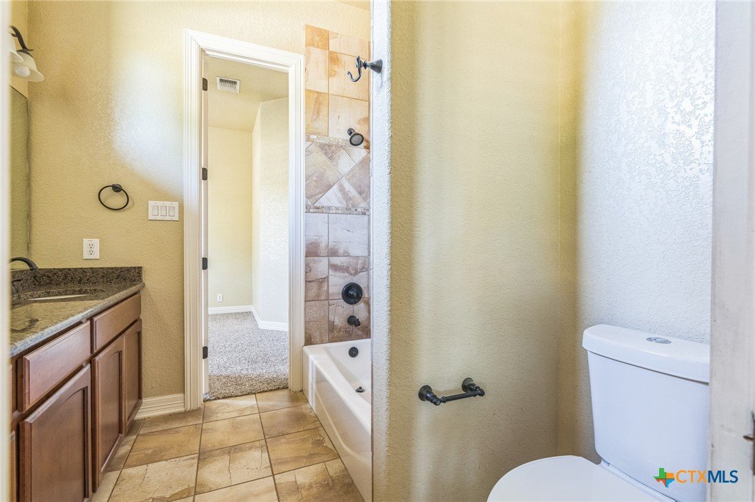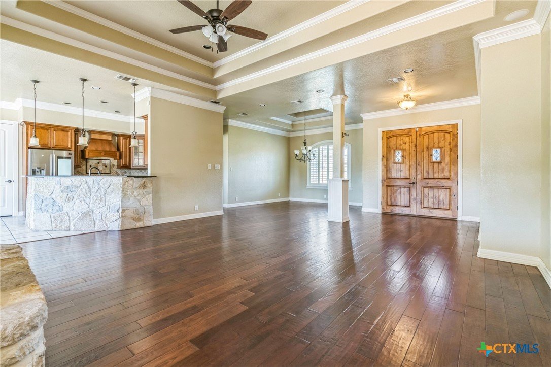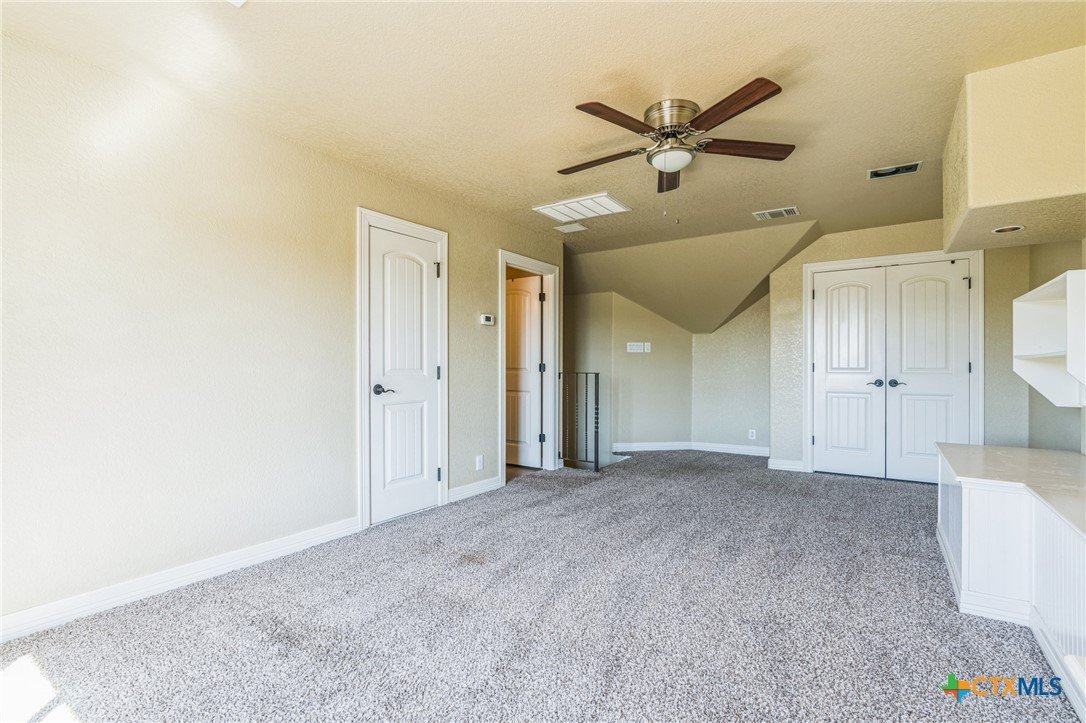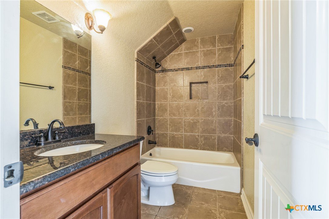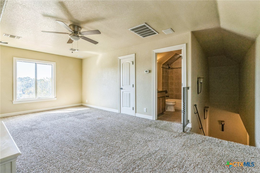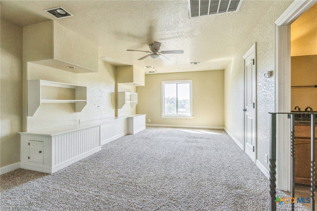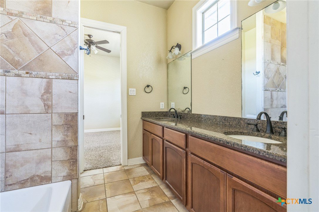 Check out this beautiful home with countryside views in New Braunfels, TX! This stunning 3,166 square foot home consists of 5 bedrooms, 4 1/2 bathrooms and a 3 car garage! Grand entry way with high vaulted ceilings and cherry brown wood flooring. Stunning kitchen that is open to family room and consists of a breakfast bar, dark granite countertops, light brown cabinets, dual ovens and stainless steel appliances! Large laundry room with ample cabinet space and a separate sink. Spacious primary bedroom nestled on the main level with a vaulted ceiling and an ensuite with a large dual vanity, nice soaking tub, separate shower and huge walk-in closet with built in shelving. Upon entering the second level, you have another living area with a built in entertainment center! Large three car garage with storage cabinets and counters adding additional storage! Awesome covered patio equipped with a grill and fire pit. Great for entertaining guests! Convenient to IH-35. Don't miss this opportunity, schedule an appointment today!