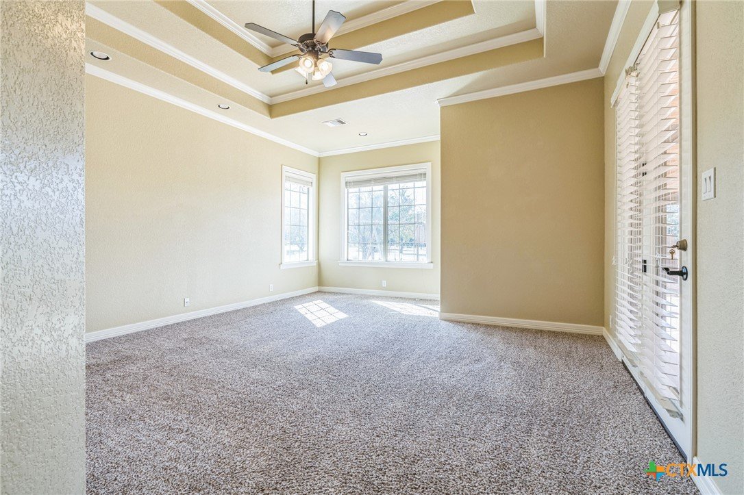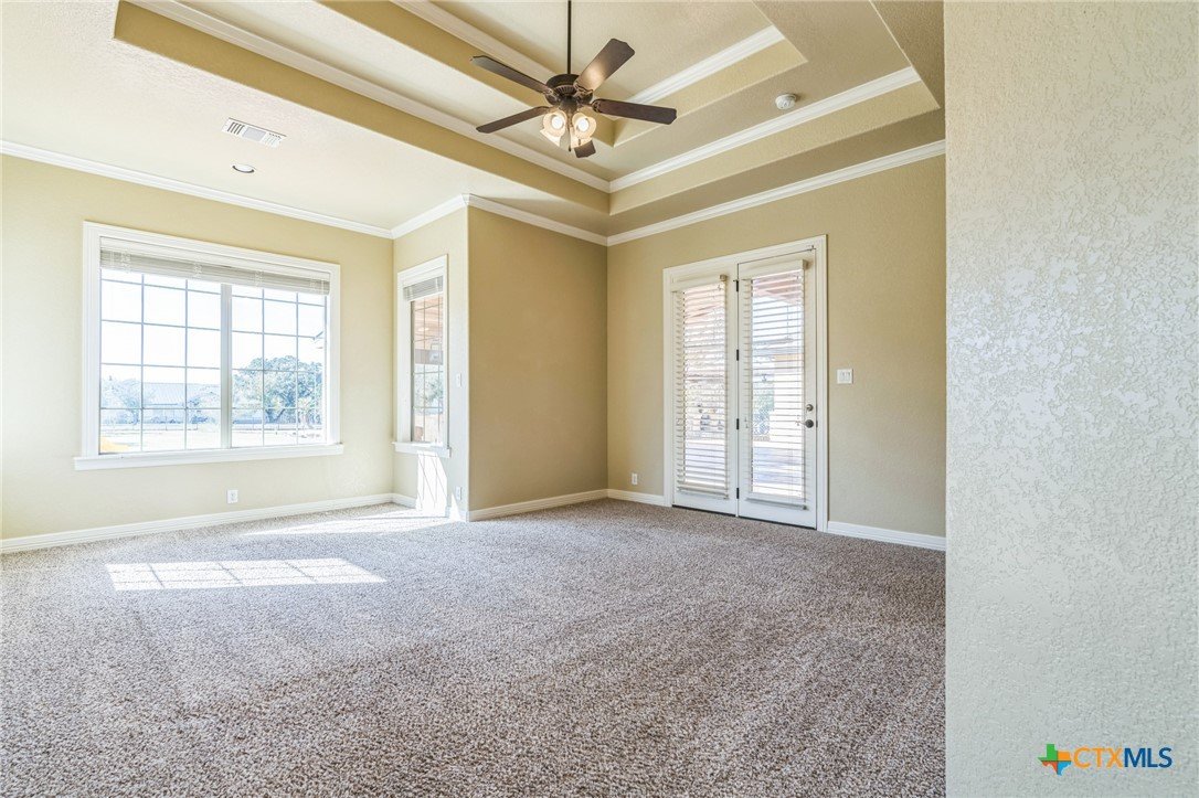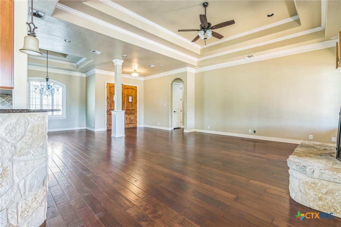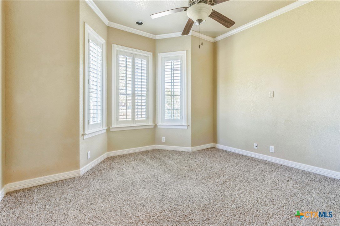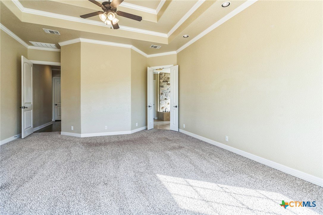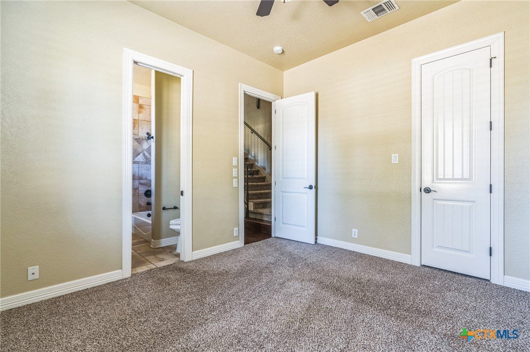 Check out this beautiful home with countryside views in New Braunfels, TX! This stunning 3,166 square foot home consists of 5 bedrooms, 4 1/2 bathrooms and a 3 car garage! Grand entry way with high vaulted ceilings and cherry brown wood flooring. Stunning kitchen that is open to family room and consists of a breakfast bar, dark granite countertops, light brown cabinets, dual ovens and stainless steel appliances! Large laundry room with ample cabinet space and a separate sink. Spacious primary bedroom nestled on the main level with a vaulted ceiling and an ensuite with a large dual vanity, nice soaking tub, separate shower and huge walk-in closet with built in shelving. Upon entering the second level, you have another living area with a built in entertainment center! Large three car garage with storage cabinets and counters adding additional storage! Awesome covered patio equipped with a grill and fire pit. Great for entertaining guests! Convenient to IH-35. Don't miss this opportunity, schedule an appointment today!