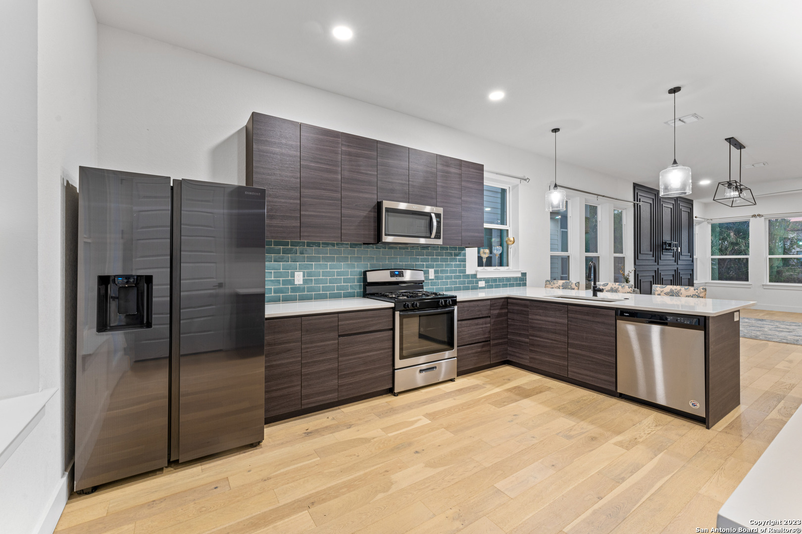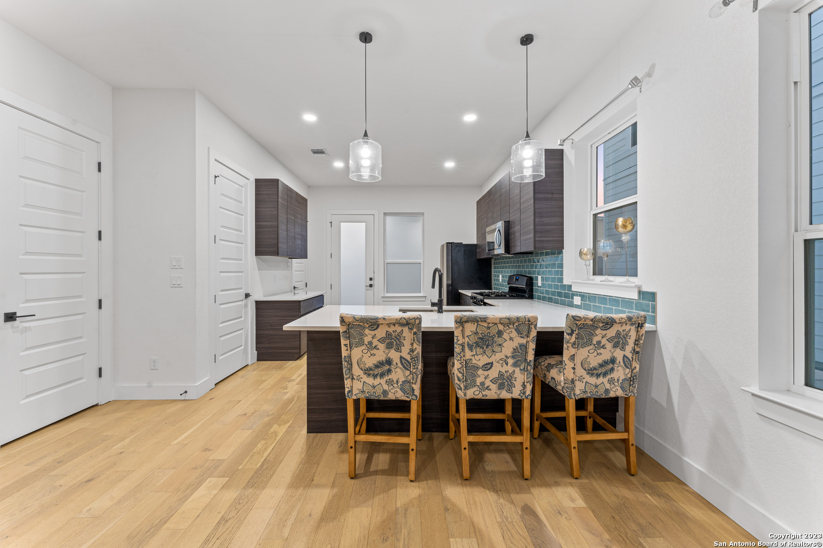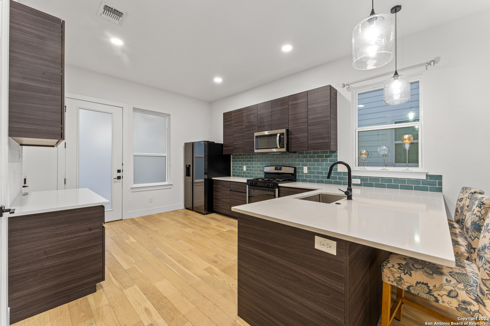 Luxury condo off historical Broadway Street minutes from Fort Sam Houston, downtown San Antonio, and the airport. This three-level condo features a private rooftop patio with water and gas line. Evolution Home Builders designed a modern living space with top tier accessories and features. Unique glass lighting fixtures from Italy, custom pine wood flooring, and modern black matte hardware throughout. Evolution was also voted the #1 Modern Home Luxury Floor Designer in the 2021 San Antonio Parade of Homes. T