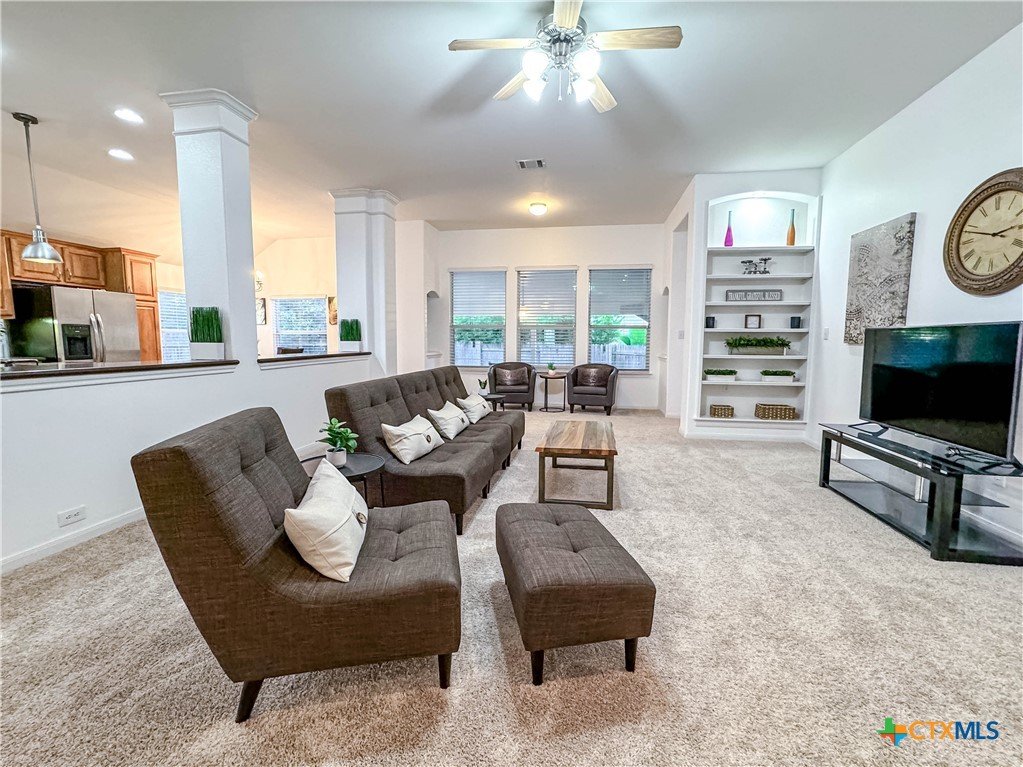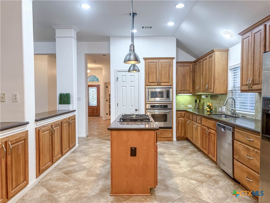 Welcome to Your Dream Home in The Ranch at Brushy Creek. Nestled in the heart of Cedar Park, this charming, one story, 4-bedroom, 2 full bath home + study/office is where family memories are made. From the moment you step through the front door, you'll feel the warmth and comfort this home exudes. Freshly painted with brand-new carpet (September 2024), it’s move-in ready for your next chapter. Imagine the laughter of loved ones filling the open-concept living area, where the living room flows seamlessly into the gourmet kitchen—perfect for family gatherings or quiet dinners. The kitchen itself is a chef's delight, complete with a center island, gas cooktop, stainless steel appliances, and ample cabinetry for all your culinary adventures. As you explore, you'll find spacious bedrooms designed with your family's needs in mind. The primary suite is a true retreat, offering a private space to unwind with a spa-like bath featuring dual sinks, a soaking tub, and a separate shower. The additional bedrooms are just right for children and guests. The large, separate, oversized study allows for ample space to work from home comfortably. Outside, the covered patio awaits weekend barbecues and lazy afternoons. Picture yourself relaxing while the kids play in the fully fenced, private yard—your own slice of Texas tranquility. Located in the sought-after Ranch at Brushy Creek community, this home offers the perfect blend of suburban serenity and convenient proximity to top-rated schools, parks, nature trails, shopping and entertainment. This isn't just a house; it’s a home where your family’s story begins.