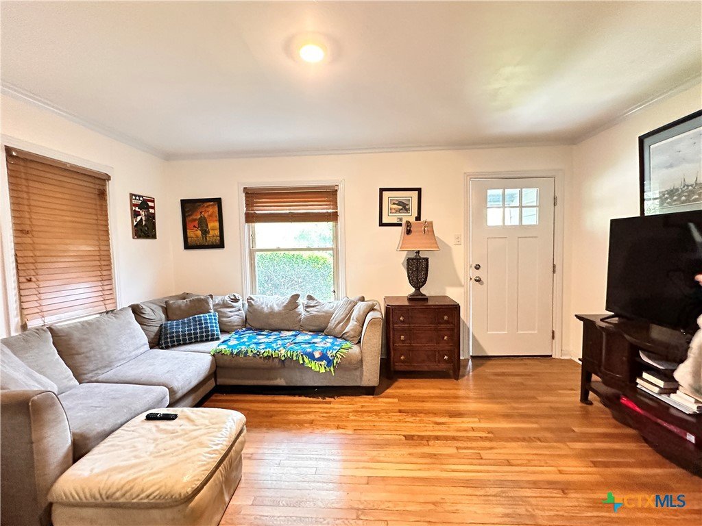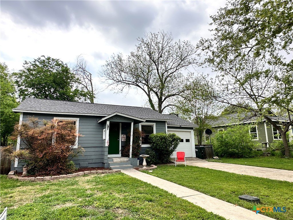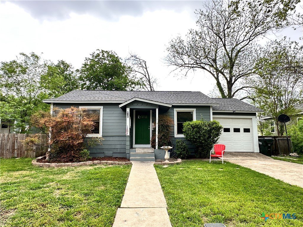 $5000 Buyer Concession. Come see this charming 2/1 home in the established neighborhood. Most everything has been newly updated such as: wood flooring, new carpet, roof replaced in 2023, A/C replaced in 2023, the pier and beam foundation was leveled and 36 new piers added, new lights, bathroom remodeled with new lights, floor and vanity, wiring, new double pane windows by Anderson. The spacious back yard has two sheds that will stay, as well as a one car garage with bonus room for washer, dryer, freezer and workshop area attached. See full list attached in the documents. Great for students or family! Easy access to the San Marcos River, the big HEB or to IH35. Schedule your showing today!!