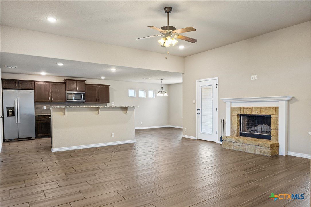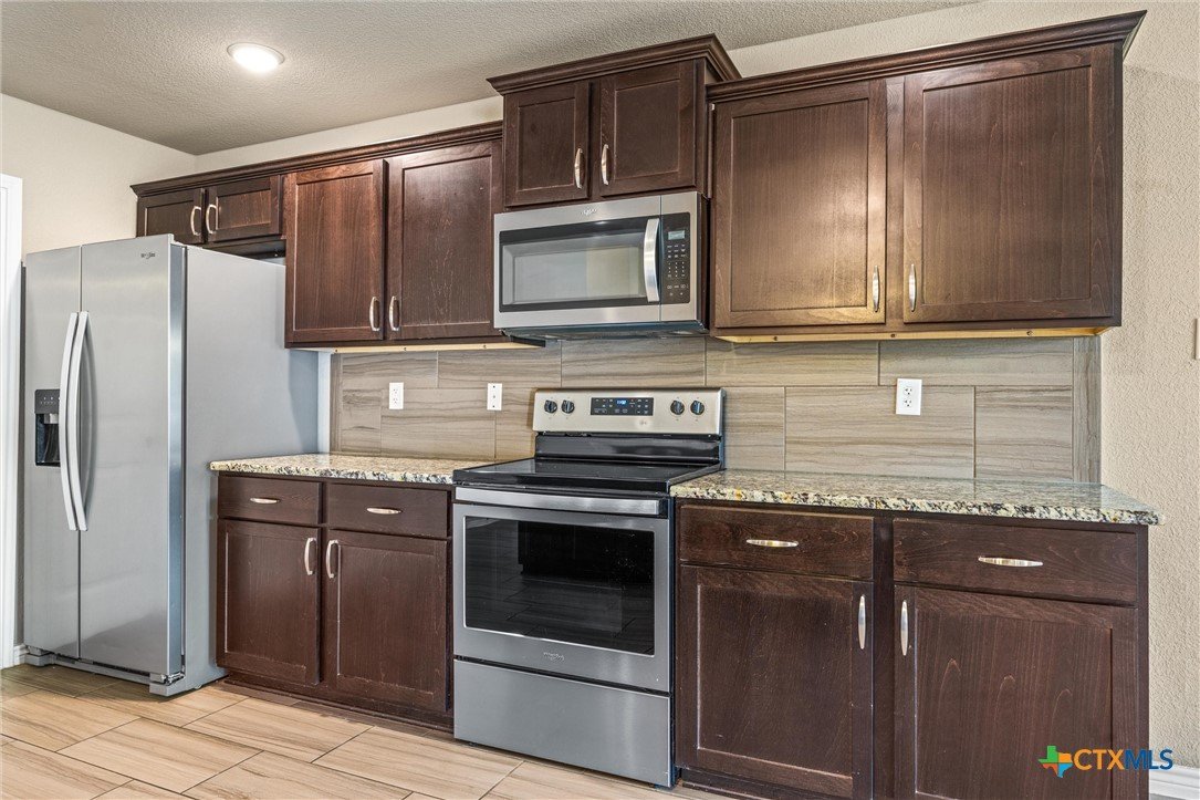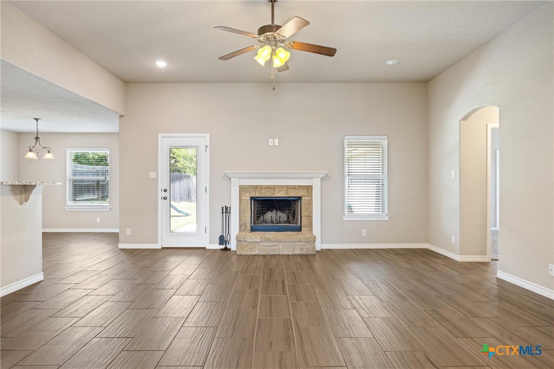 LOCATION! LOCATION! LOCATION! For house hunters looking for a beautiful 4/2 that is just minutes away from Scott & White, local shopping, & I-35, this is the one! Located in the Canyon Ridge subdivision, this approx. 1,853 sqft home welcomes with an attractive stone/brick exterior, landscaping, & covered front porch. Once inside, new owners will love the open floor plan that features an elevated ceiling, recessed lighting, & a neutral color palette that ties in beautifully with the wood burning fireplace and tiled floor. The kitchen boasts of stainless appliances, granite countertops, & plenty of room for both cooks & taste testers alike! This area easily transitions into a sizable dining space with backyard views and patio access. This split bedroom plan allows for a generous master bedroom that opens into a double vanity bath with soaking tub and separate shower. The secondary bedrooms are good sizes and are just steps away from guest bath. The north facing back yard features a large back patio and plenty of room for gardening, entertaining, or playing! You'll never be late to work again living in this fantastic south Temple home!