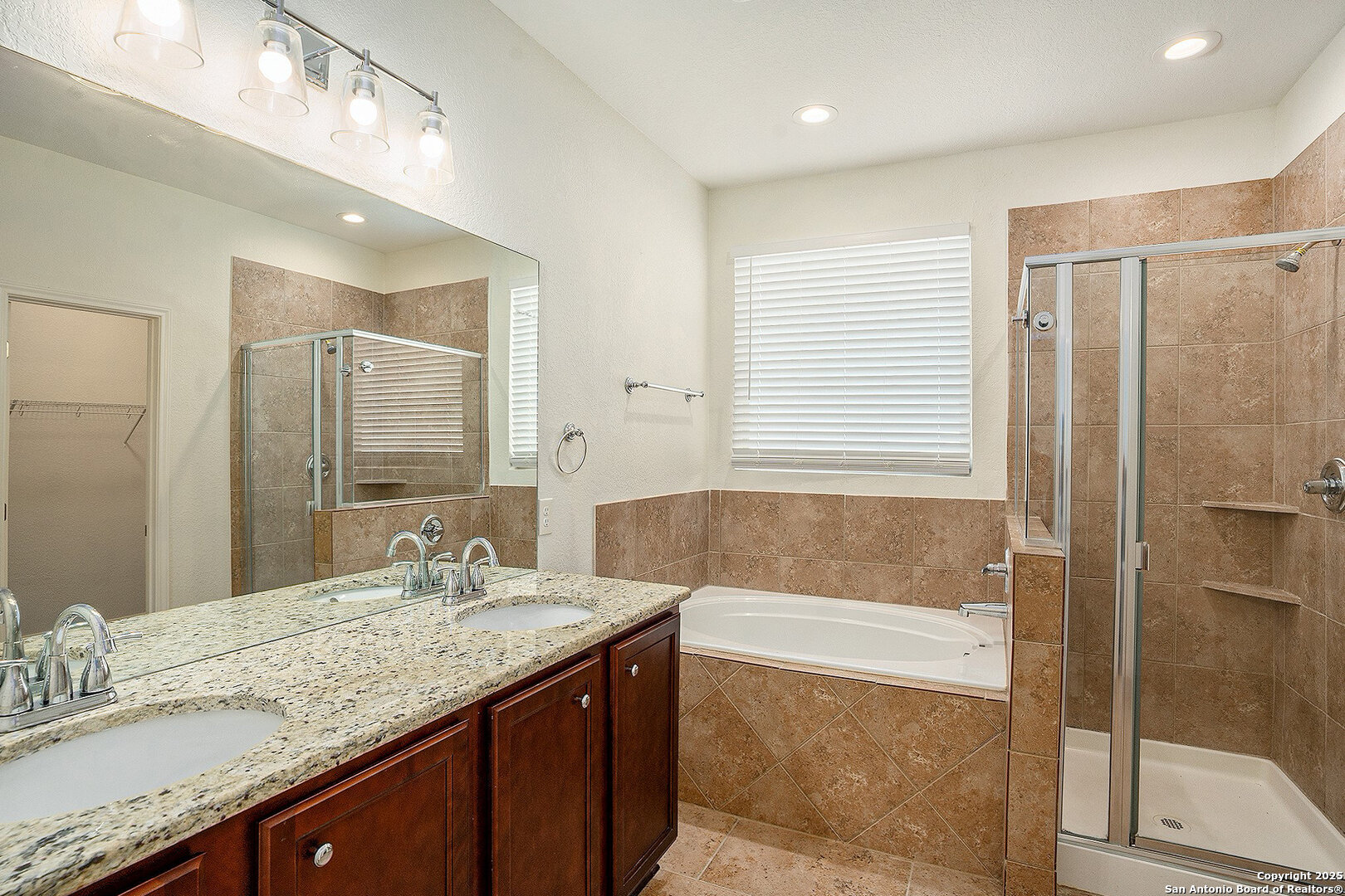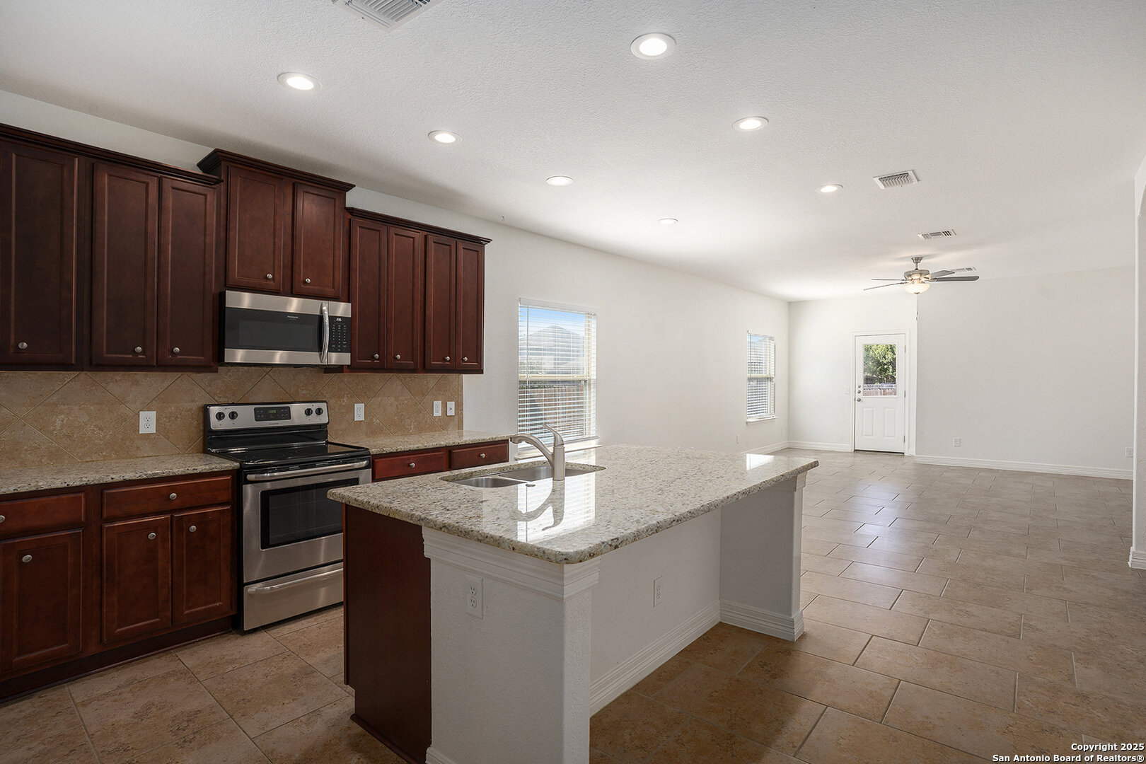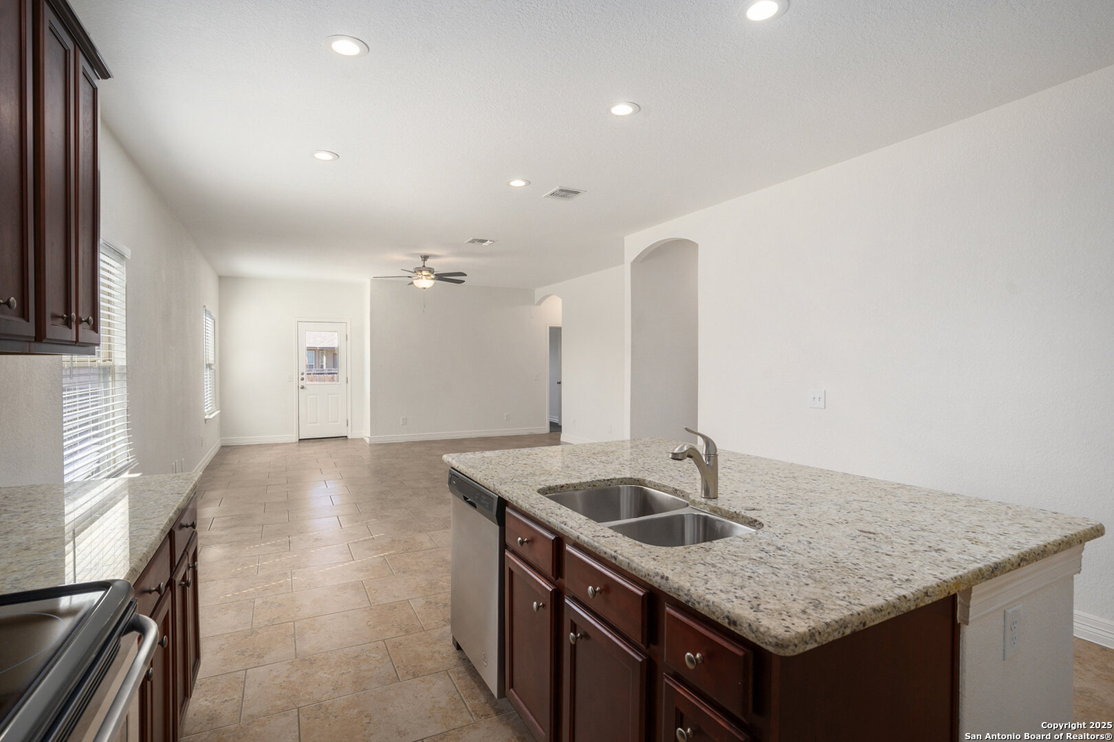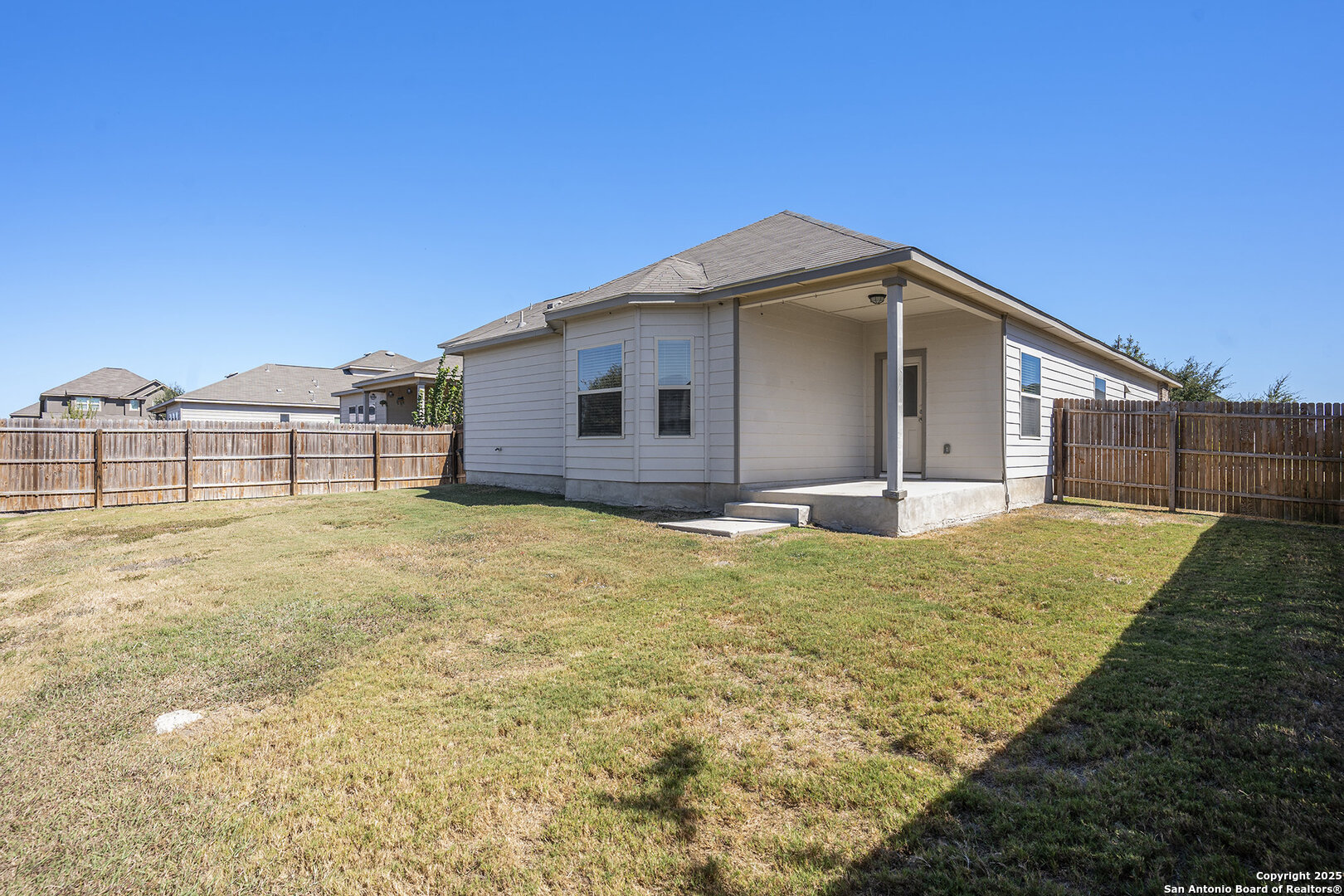 Welcome to this fantastic 3-bedroom, 2-bathroom home with a dedicated office, just minutes from downtown New Braunfels. This home features a functional open-concept living area. The kitchen is equipped with modern cabinets, granite countertops, and stainless steel appliances, along with an island sink and a breakfast bar, making it ideal for entertaining. The living room provides direct access to the fenced-in backyard, which is perfect for grilling and outdoor activities. The primary bedroom is a peaceful retreat, featuring charming bay windows and an ensuite with dual sinks, a garden tub, and a separate standing shower. Enjoy a prime location just seconds from the new NBISD High School, with easy access to the interstate and downtown shopping. Schedule your showing today!