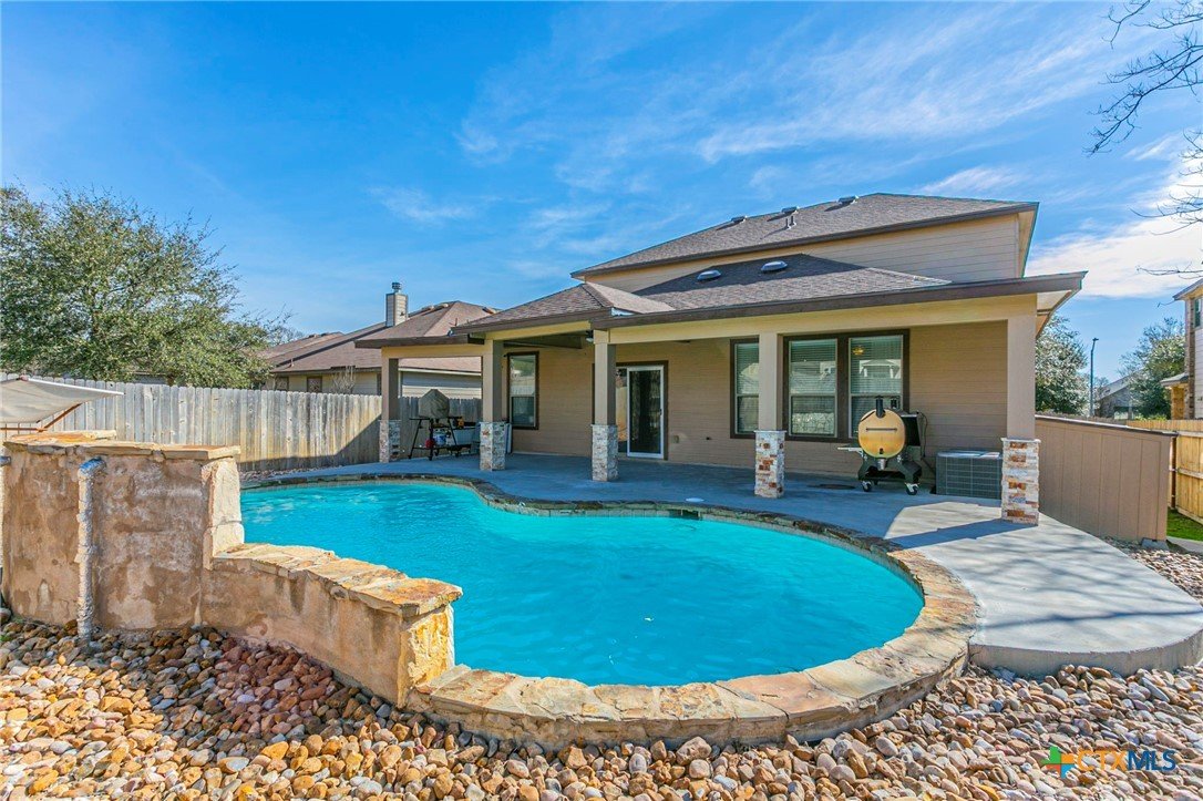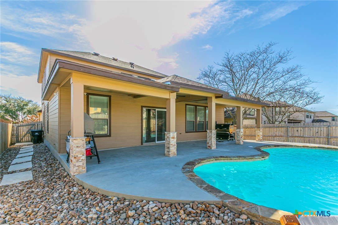 Welcome to this spacious and beautifully maintained two-story home designed for both everyday living and entertaining! The flexible floor plan offers multiple living areas, including a large downstairs living room and an open family room that flows seamlessly into the kitchen and dining area. The kitchen features granite countertops, abundant cabinetry, a center island with sink, and an open layout perfect for gathering. The private primary suite is conveniently located on the main floor and includes a walk-in closet and spacious bath with double vanities, separate shower and tub. Upstairs, you’ll find generously sized secondary bedrooms plus an oversized media room—ideal for movie nights, gaming, or a second living space. With room to spread out, this home offers flexibility for families of all sizes. Step outside to your backyard retreat! Enjoy a sparkling in-ground pool and an extended covered patio with columns—perfect for relaxing evenings, entertaining guests, or weekend BBQs. The curb appeal shines with a brick exterior and inviting front porch. If you’re looking for space, functionality, and a backyard made for Texas summers, this home delivers. The seller is willing to offer owner financing — contact us today for details!