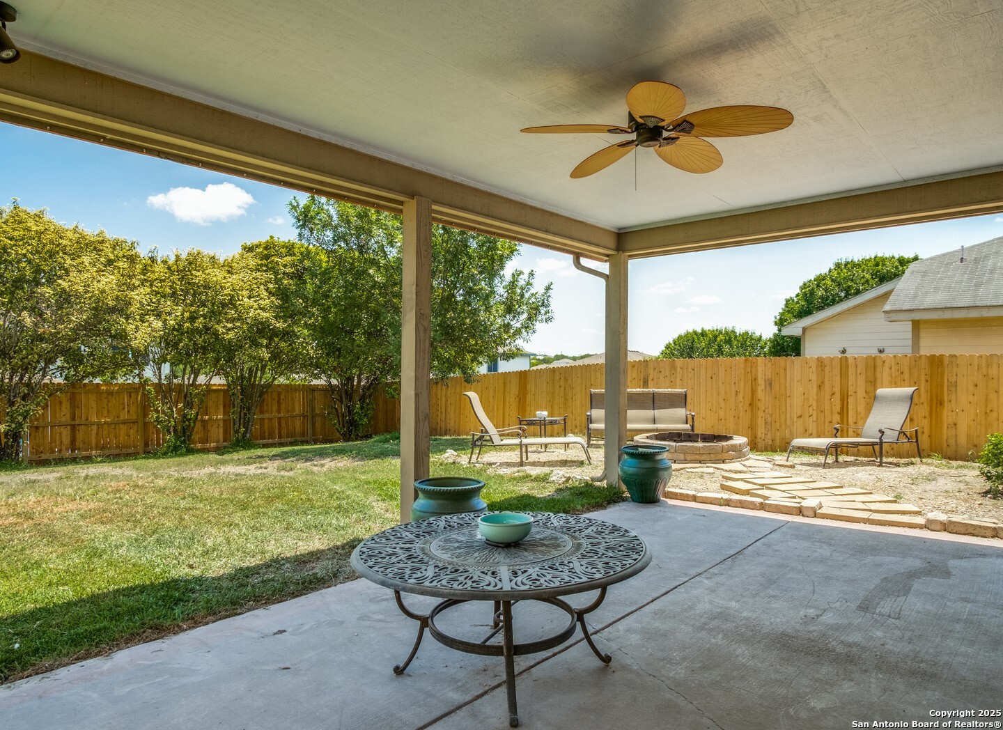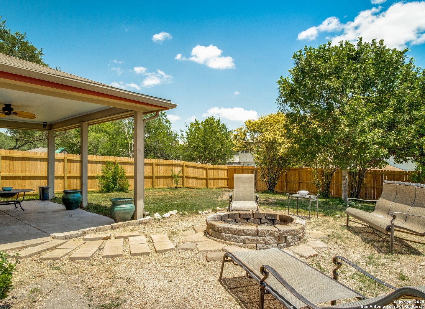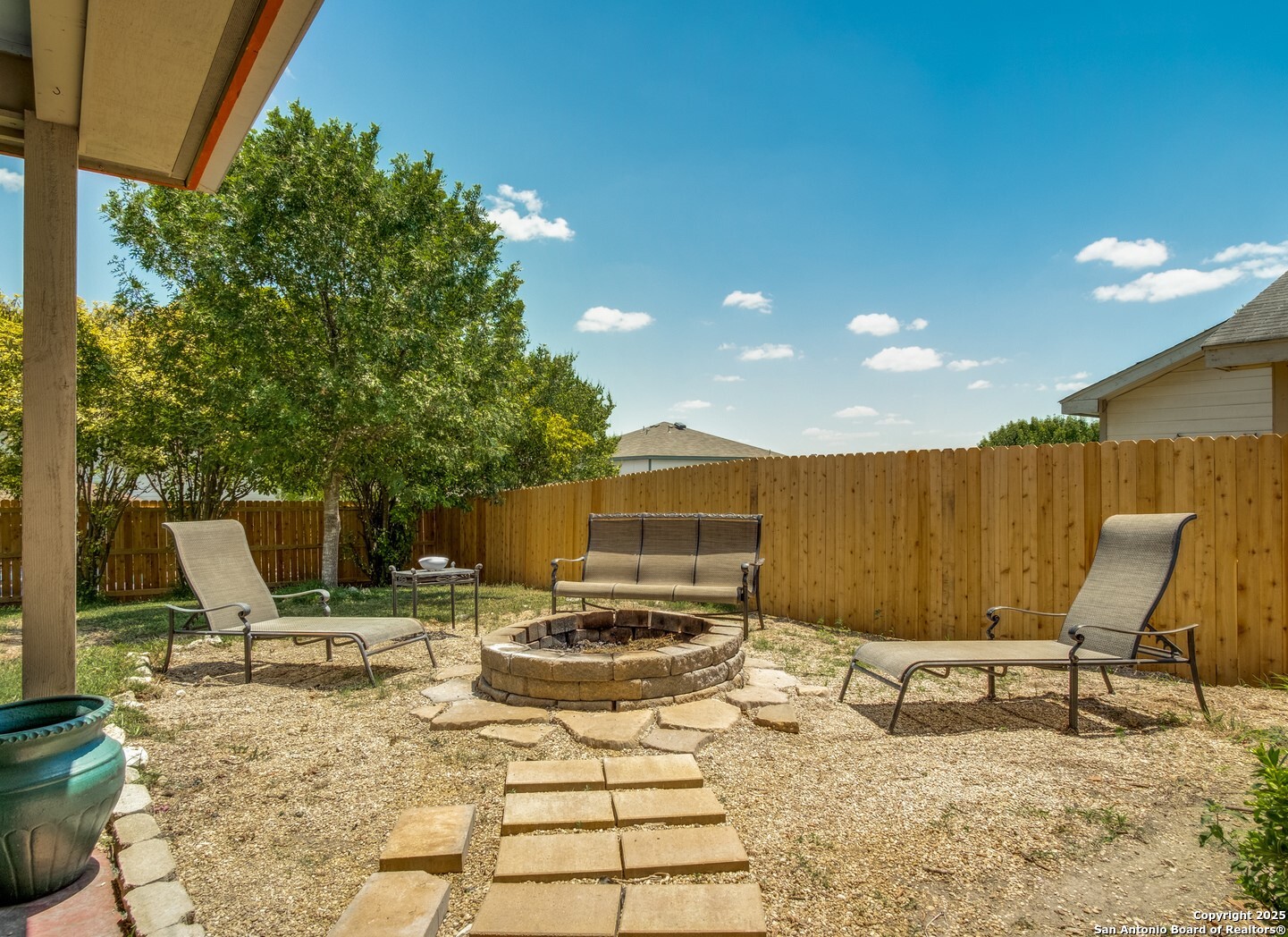 Minutes from Lackland Air Force Base, Alamo Ranch Shopping Centers, Sea World, Northwest Vista, and Hwy 151, 410, 90, and 1604. Charming 3-Bedroom Home in Spring Vistas with Flexible Living Spaces. Well-maintained and thoughtfully updated, this Spring Vistas home offers 3 bedrooms, 2.5 bathrooms, and multiple living and dining areas. The main floor features a formal dining room with built-ins, which can also serve as a home office or second living area. The spacious living room flows into a bright breakfast area with backyard views and additional built-in storage. The kitchen provides ample cabinetry and prep space, perfect for daily living and entertaining. A powder bath and a combined pantry/laundry room complete the first floor. Upstairs, the owner's suite includes a private bath with soaking tub, walk-in shower, and dual vanity. Two secondary bedrooms, a second full bath, and a versatile game room/flex space round out the upper level. Enjoy outdoor living in the privately fenced backyard featuring a covered patio and built-in fire pit.