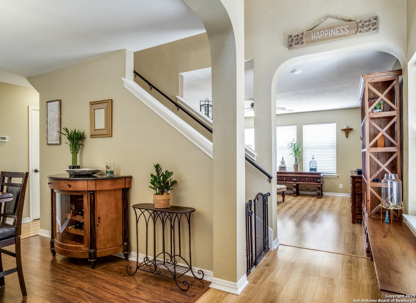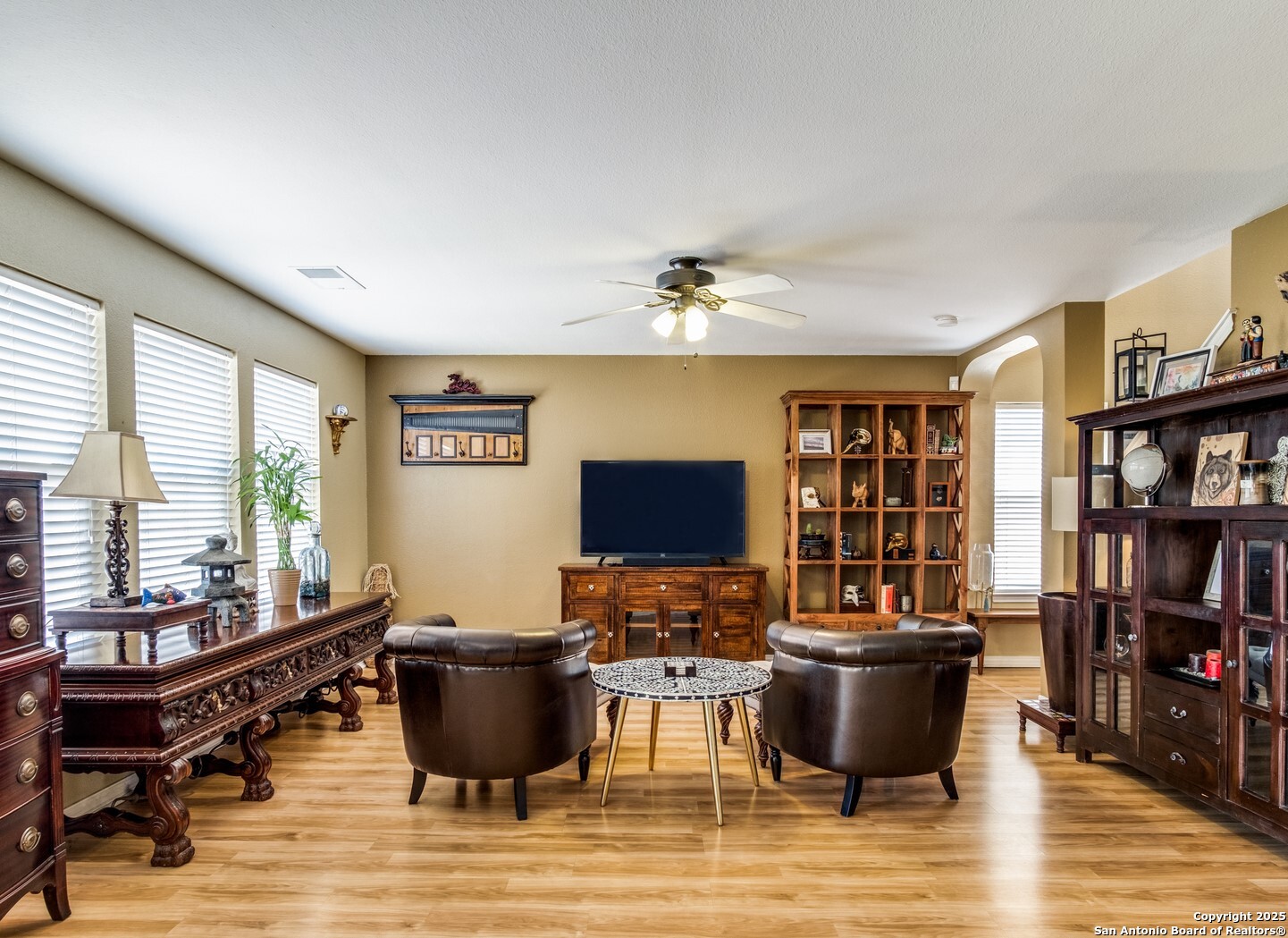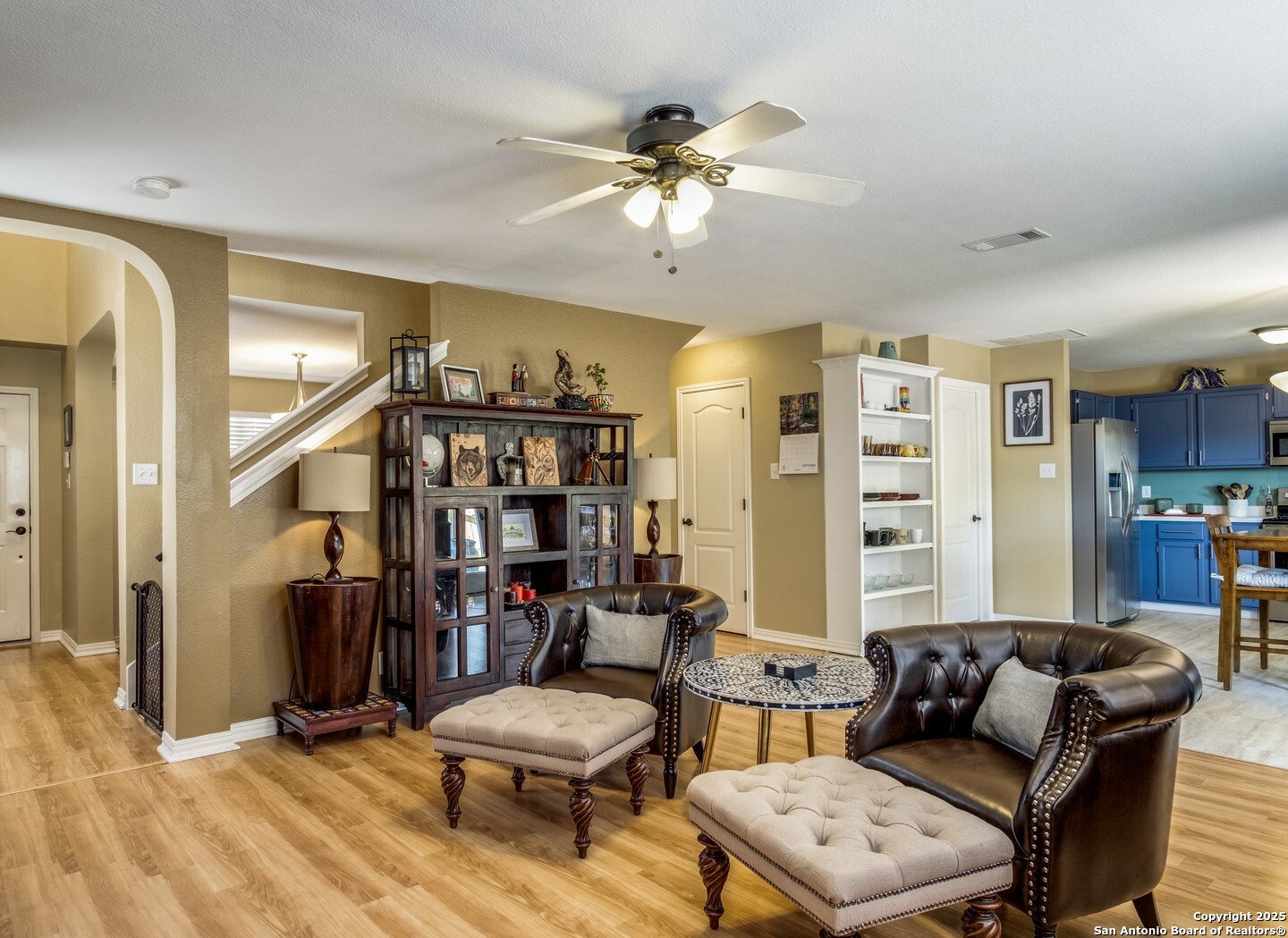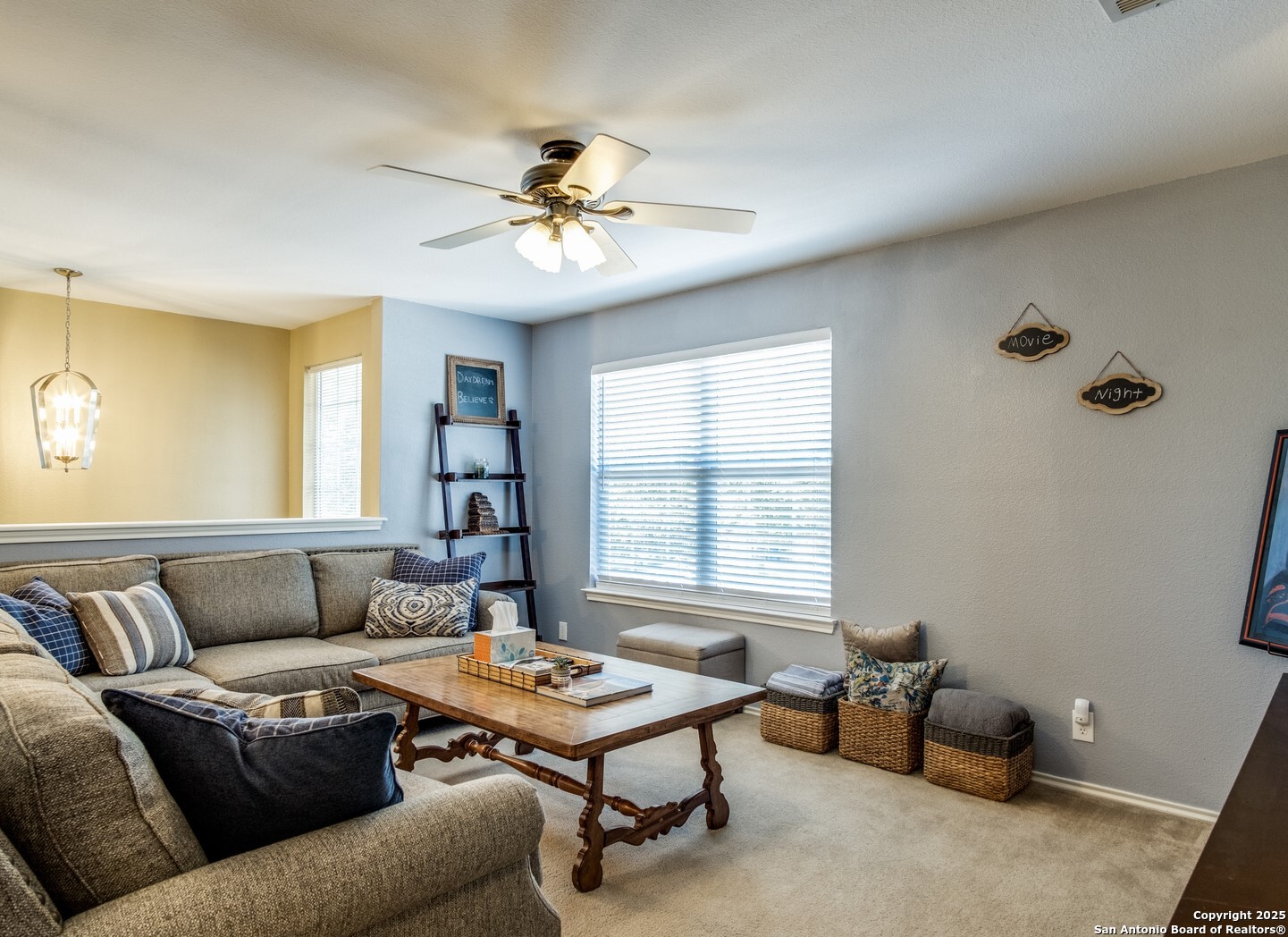 Minutes from Lackland Air Force Base, Alamo Ranch Shopping Centers, Sea World, Northwest Vista, and Hwy 151, 410, 90, and 1604. Charming 3-Bedroom Home in Spring Vistas with Flexible Living Spaces. Well-maintained and thoughtfully updated, this Spring Vistas home offers 3 bedrooms, 2.5 bathrooms, and multiple living and dining areas. The main floor features a formal dining room with built-ins, which can also serve as a home office or second living area. The spacious living room flows into a bright breakfast area with backyard views and additional built-in storage. The kitchen provides ample cabinetry and prep space, perfect for daily living and entertaining. A powder bath and a combined pantry/laundry room complete the first floor. Upstairs, the owner's suite includes a private bath with soaking tub, walk-in shower, and dual vanity. Two secondary bedrooms, a second full bath, and a versatile game room/flex space round out the upper level. Enjoy outdoor living in the privately fenced backyard featuring a covered patio and built-in fire pit.