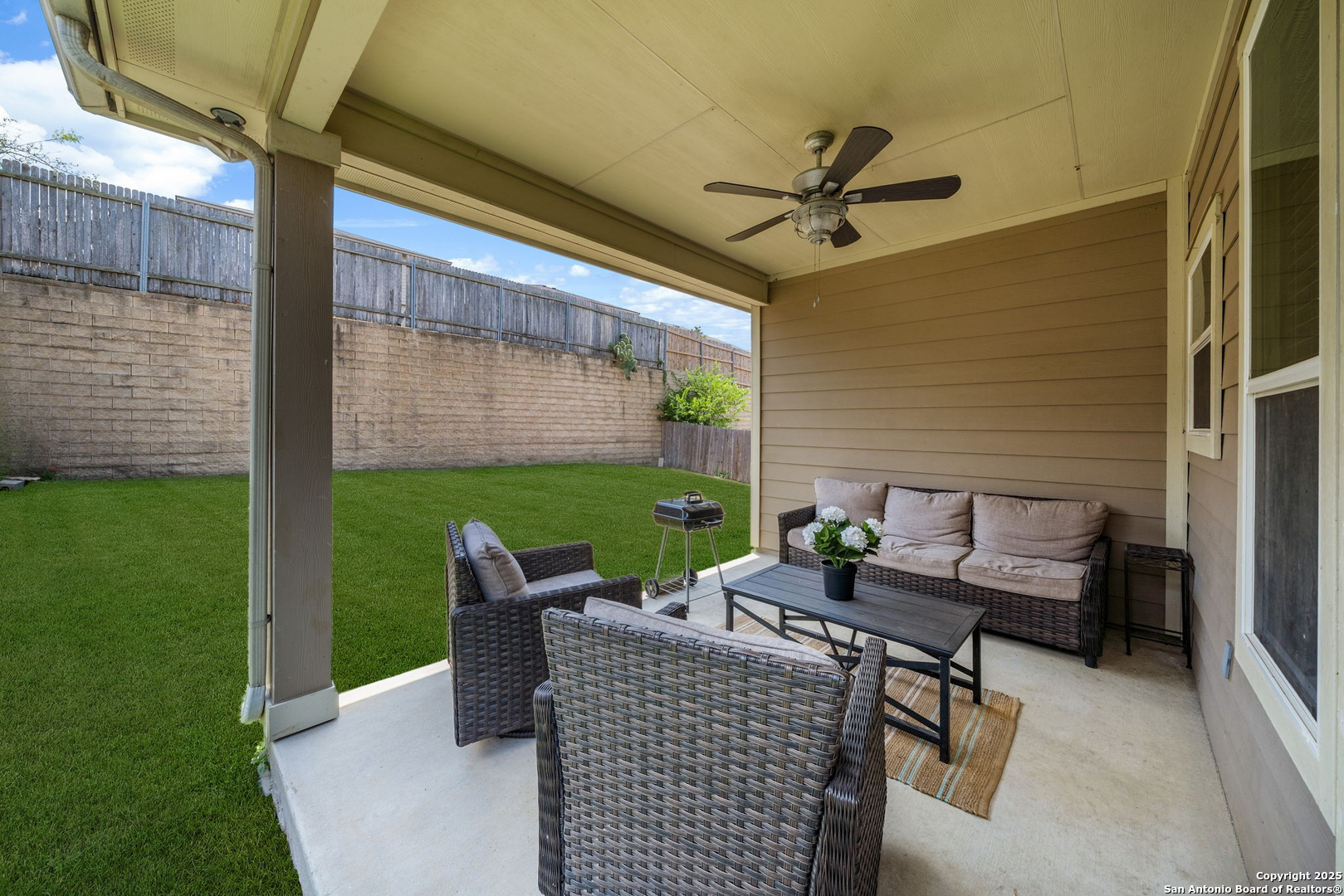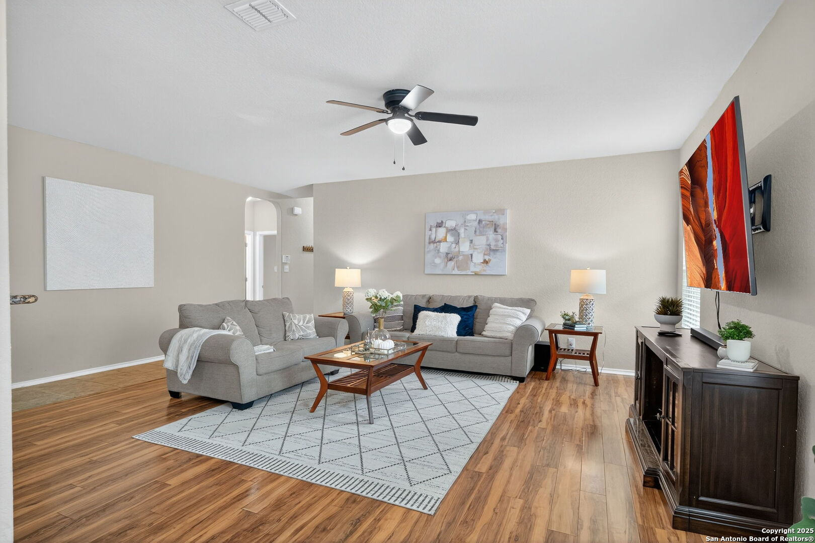 Meticulously maintained one-story home with a bright and functional layout in a prime location just minutes from Lackland Air Force Base, major highways, shopping, dining, and schools. A mature shade tree in the front yard enhances curb appeal and welcomes you inside to a light-filled living area with durable laminate flooring that flows seamlessly into the kitchen, complete with granite countertops, ample cabinet space, and a dining area perfect for everyday meals or entertaining. The home's thoughtful design includes comfortable bedrooms, well-kept bathrooms, and carpet replaced just two years ago for added peace of mind. A covered patio overlooks the backyard, providing a great space for relaxing outdoors. Whether you're looking for a move-in ready home or an investment property, the combination of location, condition, and layout makes this an excellent opportunity for homebuyers and investors alike.