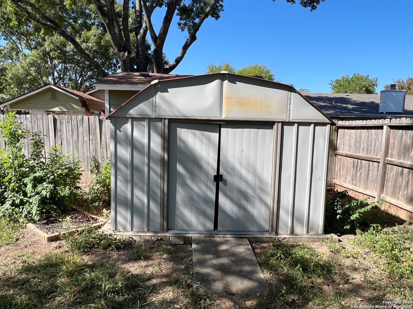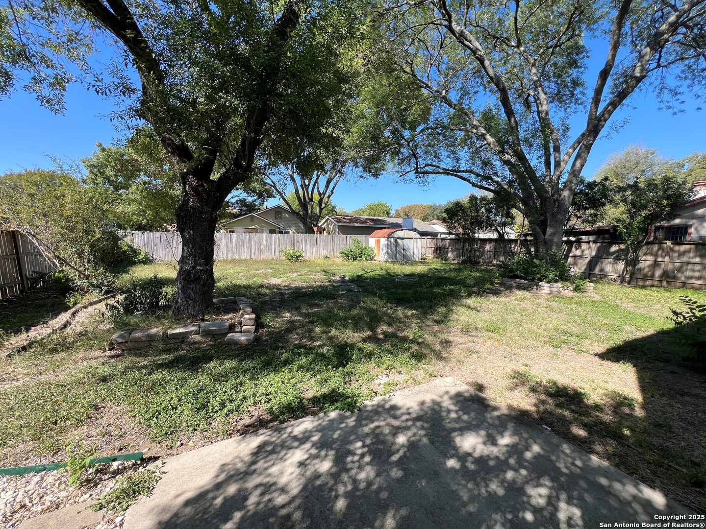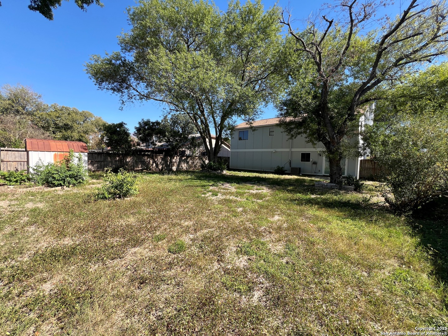 3 Bed 2.5 Bath 1629 Sq Ft Home on Corner Lot in Northwest Crossing. Large Living Room with Gas Fireplace. Kitchen with solid counters, Gas Stove, Dishwasher. Utility Area with Electric and Gas dryer connections. Large Primary Bedroom with Sitting Area, Ceiling Fan, Walk-in Closet. Primary Bath with Walk-in Shower, Dual Sinks. Large Fenced Yard with Patio, Mature Trees, Shed. 2 Car Garage with Opener. Community Pool, Tennis Courts, Playground. Great Northside schools. Near UTSA, 151, 1604, Shopping.