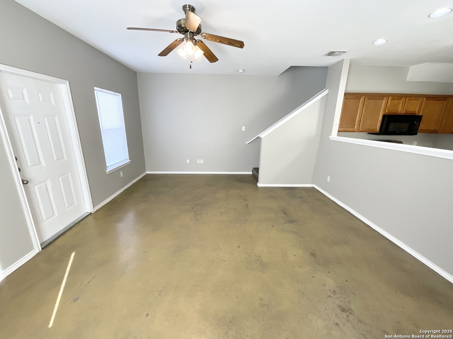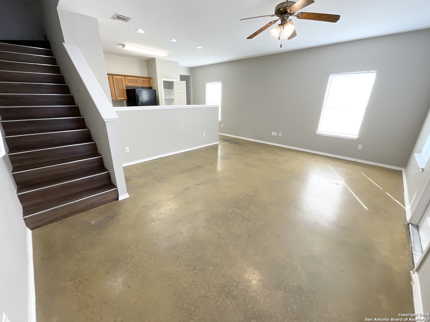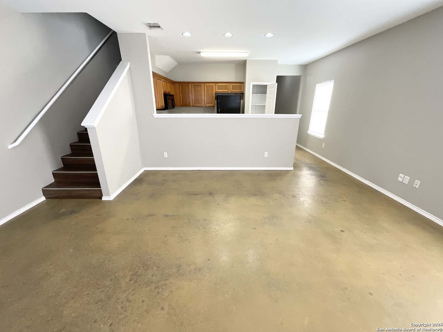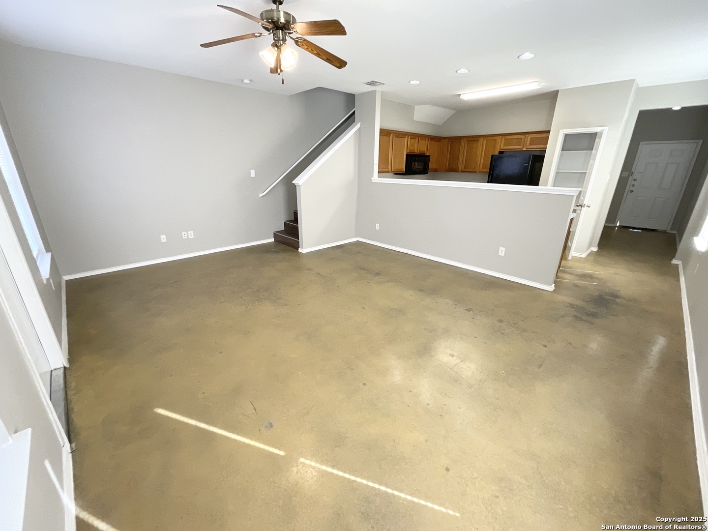 Welcome to this lovely, well-maintained unit in cul-de-sac. This home has brand new luxury vinyl flooring upstairs & low-maintenance stained concrete floors downstairs- no carpet! All 3 bedrooms are upstairs, each with a ceiling fan. The kitchen opens to the living area and has all the appliances you need to cook like a pro at home. Extra storage provided in the hallways downstairs and upstairs, as well as a pantry. This home has a guest restroom downstairs, and 2 full baths upstairs. There is a single car garage with garage door opener, and extra storage. Washer/dryer connections are in the garage. Nice sized backyard with privacy fence, and side yard. Convenient to HEB & Walmart, Randolph AFB, Fort Sam & BAMC, IH-35, IH-10, Loops 410 & 1604, restaurants, shopping and more!