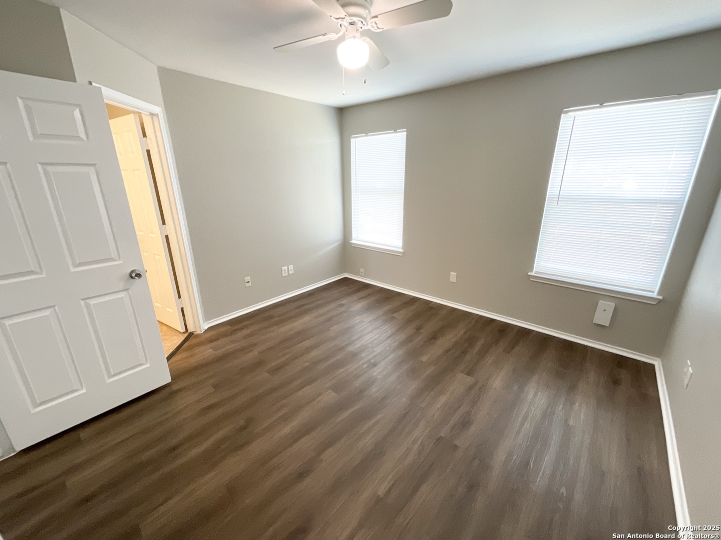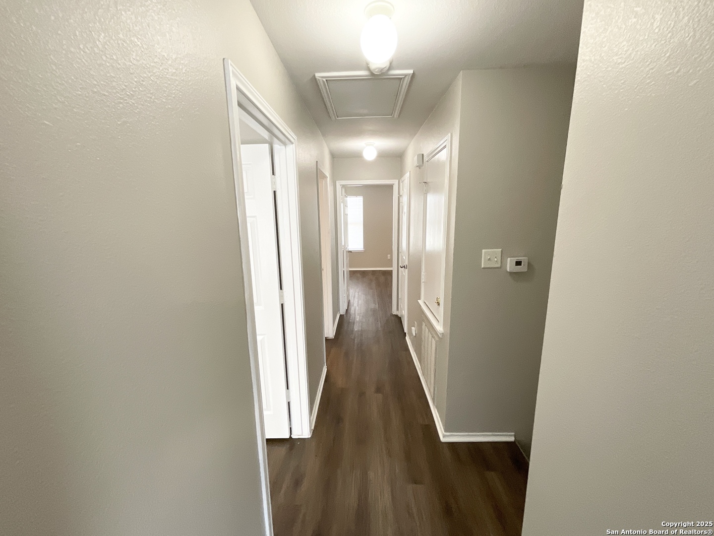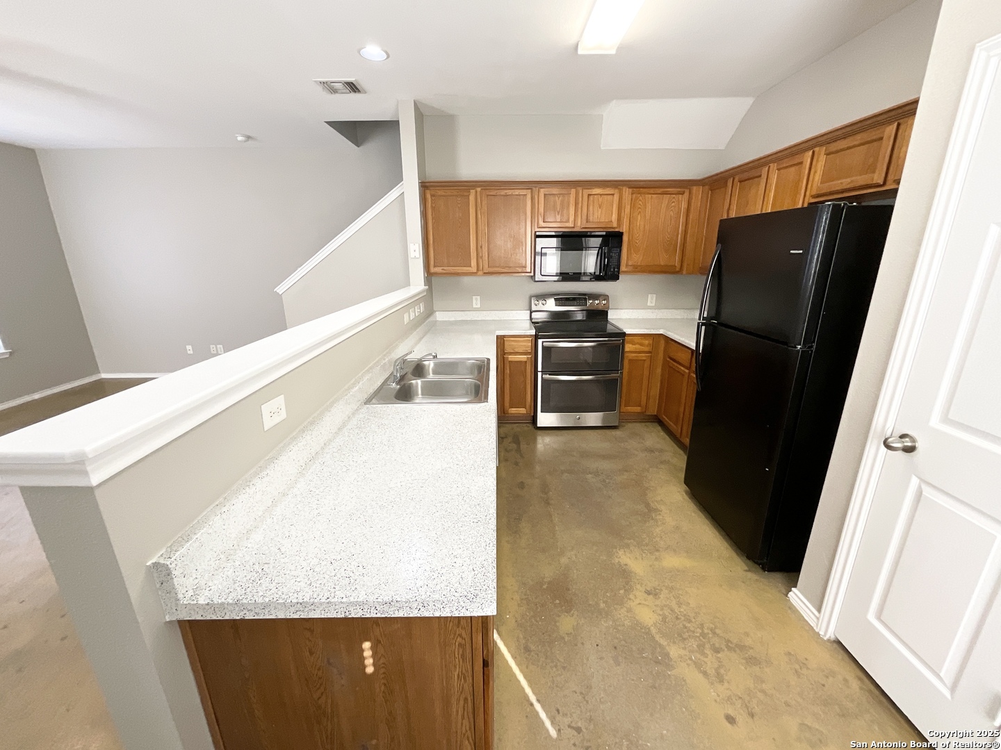 Welcome to this lovely, well-maintained unit in cul-de-sac. This home has brand new luxury vinyl flooring upstairs & low-maintenance stained concrete floors downstairs- no carpet! All 3 bedrooms are upstairs, each with a ceiling fan. The kitchen opens to the living area and has all the appliances you need to cook like a pro at home. Extra storage provided in the hallways downstairs and upstairs, as well as a pantry. This home has a guest restroom downstairs, and 2 full baths upstairs. There is a single car garage with garage door opener, and extra storage. Washer/dryer connections are in the garage. Nice sized backyard with privacy fence, and side yard. Convenient to HEB & Walmart, Randolph AFB, Fort Sam & BAMC, IH-35, IH-10, Loops 410 & 1604, restaurants, shopping and more!