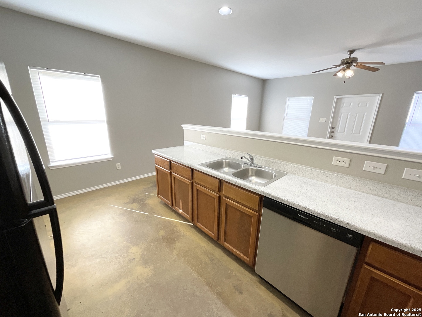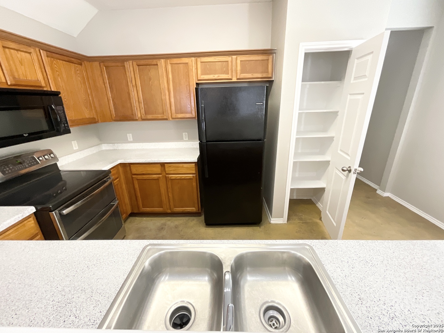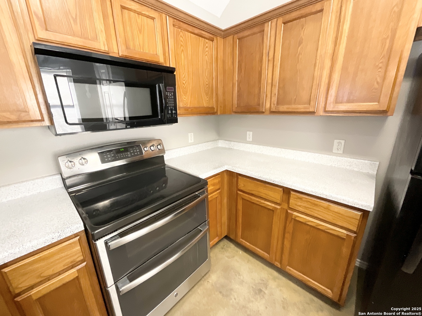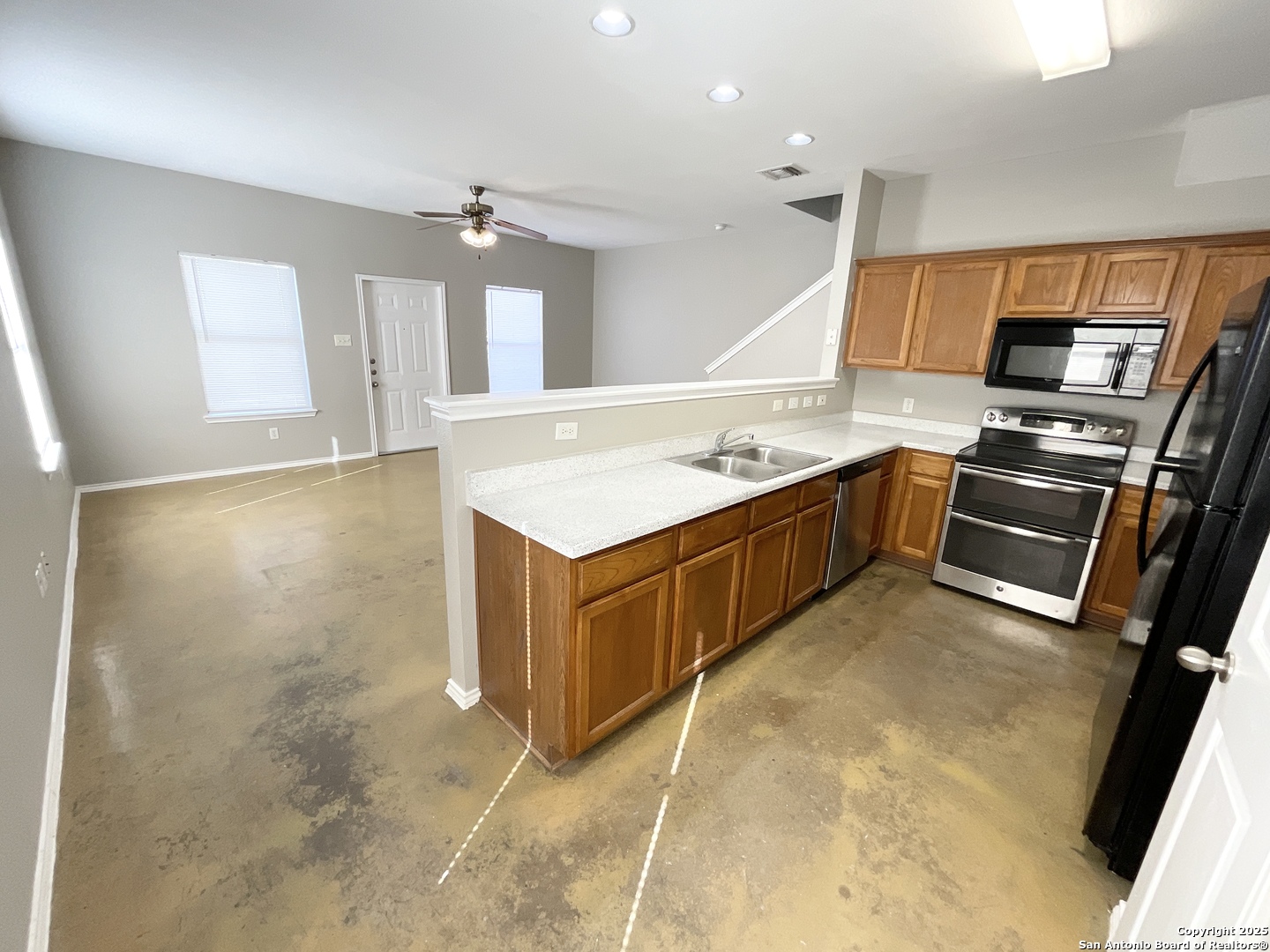 Welcome to this lovely, well-maintained unit in cul-de-sac. This home has brand new luxury vinyl flooring upstairs & low-maintenance stained concrete floors downstairs- no carpet! All 3 bedrooms are upstairs, each with a ceiling fan. The kitchen opens to the living area and has all the appliances you need to cook like a pro at home. Extra storage provided in the hallways downstairs and upstairs, as well as a pantry. This home has a guest restroom downstairs, and 2 full baths upstairs. There is a single car garage with garage door opener, and extra storage. Washer/dryer connections are in the garage. Nice sized backyard with privacy fence, and side yard. Convenient to HEB & Walmart, Randolph AFB, Fort Sam & BAMC, IH-35, IH-10, Loops 410 & 1604, restaurants, shopping and more!