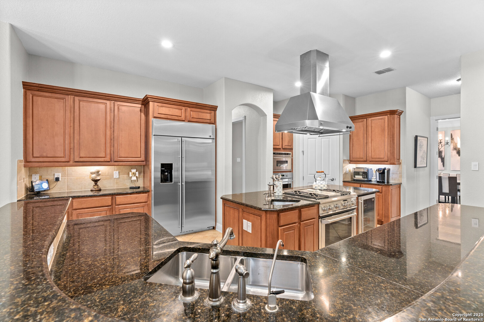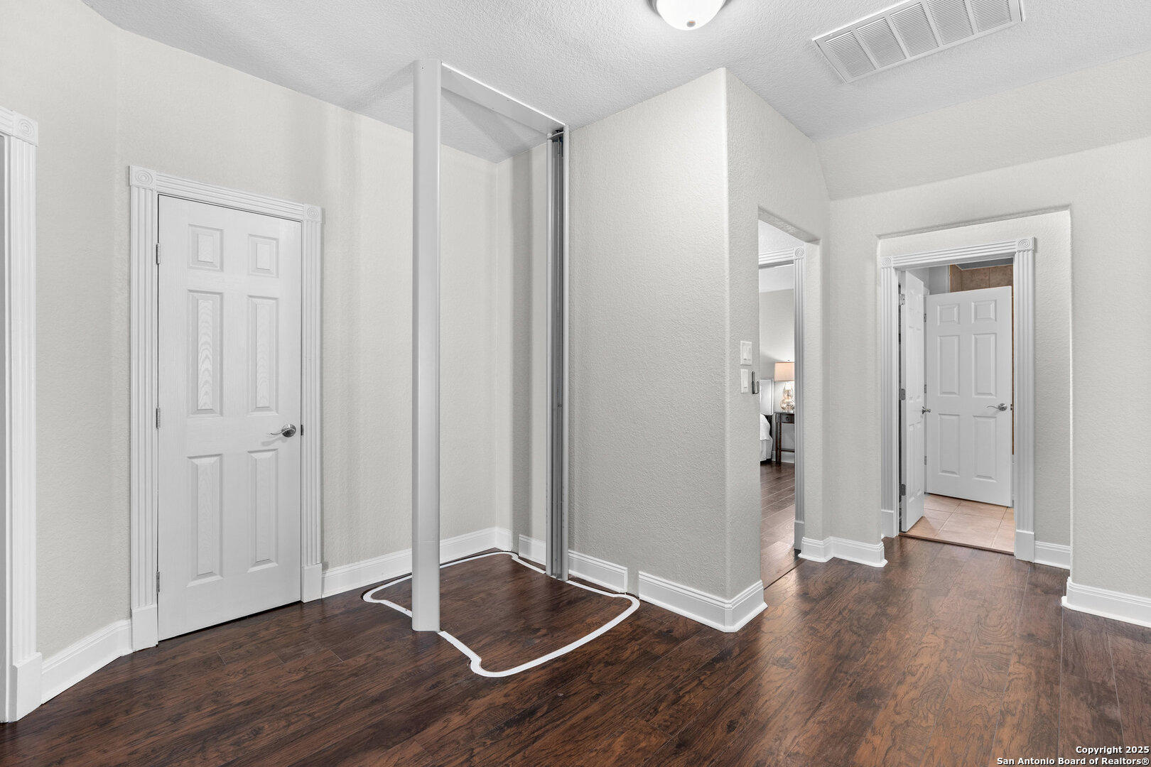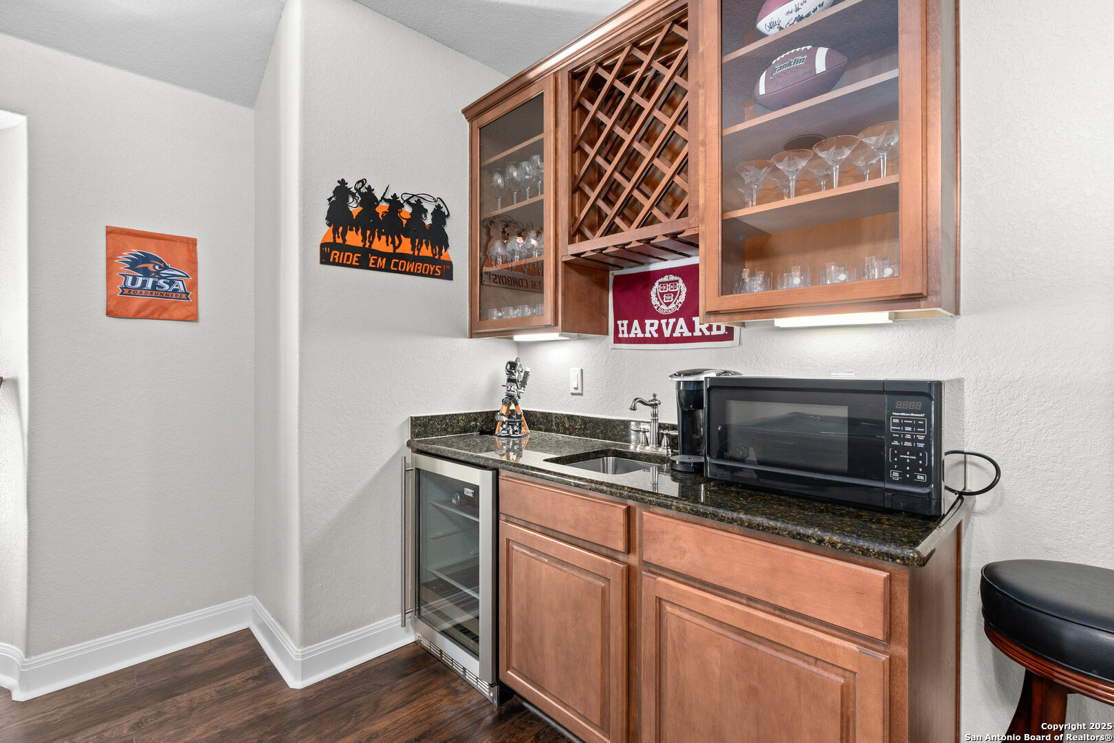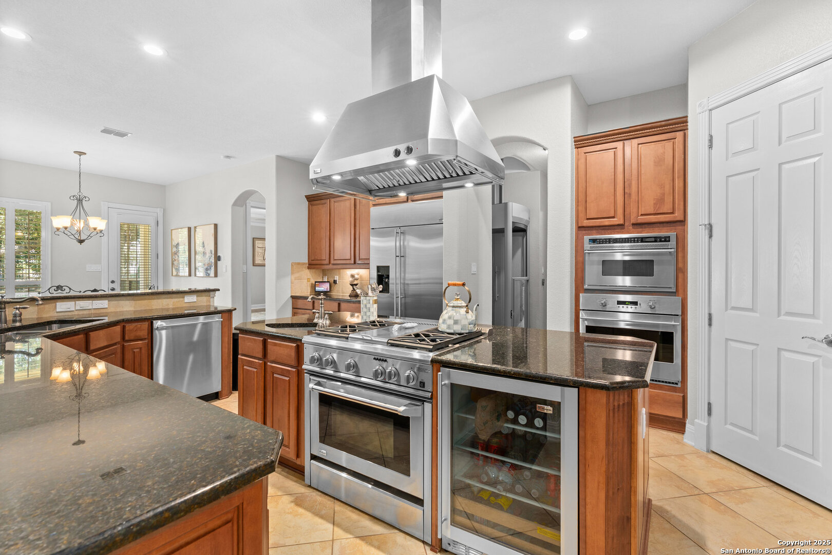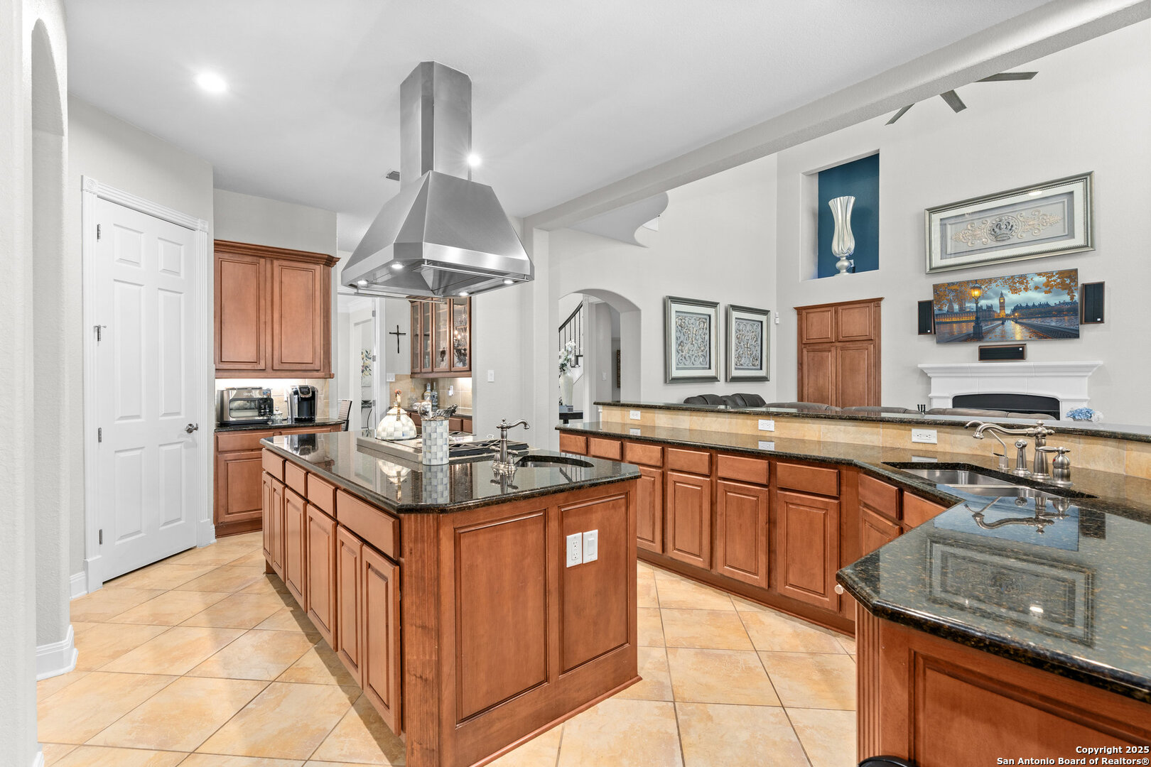 Discover this exquisite Mediterranean home in The Dominion gated community, featuring an open layout with a grand family room and soaring two-story ceilings, perfect for entertaining. This residence offers two first-floor master suites, including one upgraded for handicap accessibility, and two additional upstairs bedrooms with en-suite baths for added privacy. The chef's kitchen boasts stainless steel appliances, gas cooking, a butler's pantry, and a granite island that seamlessly connects to the family room. The home features plantation shutters and engineered hardwood flooring throughout, adding a touch of elegance and timeless style. Convenience is key with a STILTZ Lift handicap-accessible elevator, a handicap-accessible guest bath, a cloud-enabled security system, an upstairs game room, and a private theater with projector and surround sound. Enjoy outdoor living with a covered patio, iron fencing, mature landscaping, and a beautifully maintained backyard, perfect for relaxation and gatherings. This meticulously upgraded home is ideal for multi-generational living, combining luxury with everyday practicality. Schedule your private tour today!