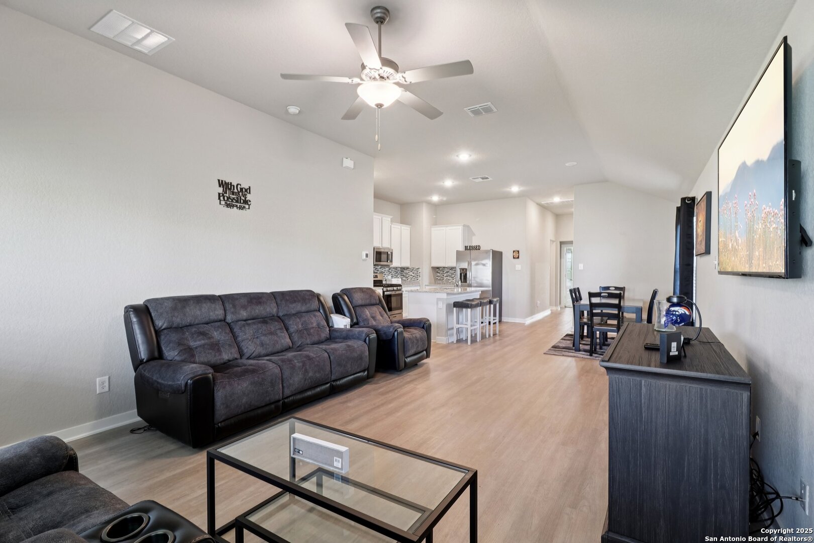 Welcome to this almost-new, gently lived-in 3-bedroom, 2-bath home located in the desirable Winding Brook neighborhood of San Antonio. Featuring a spacious kitchen with a central island, this home offers an open and functional layout perfect for both everyday living and entertaining. The bedrooms are generously sized, with the primary suite boasting a large walk-in closet for added convenience. Additionally, the home is equipped with added perks to include a stainless steel REFRIGERATOR and 3 FLAT-SCREEN TV.S. All existing cameras in the home will also convey. Enjoy the benefits of Northside ISD schools and a community with excellent HOA amenities, including a pool, park, and playground. Conveniently situated just minutes from shopping centers, restaurants, and everyday necessities, this home offers both comfort and accessibility. Don't miss your chance to own a move-in-ready home in one of San Antonio's sought-after communities!