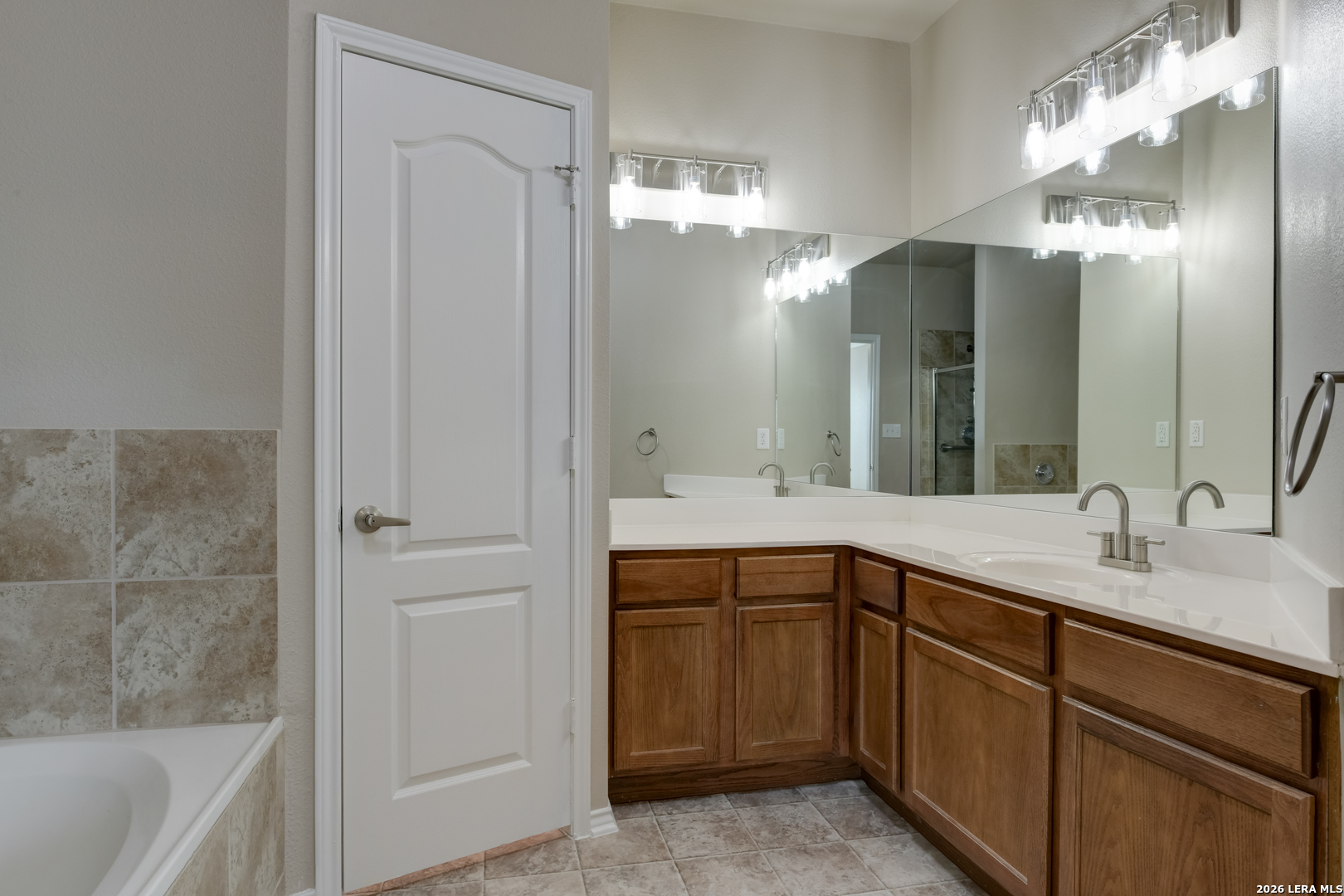 Welcome to your new home located in the Medical Center area with low maintenance, and gated neighborhood access! This home is move in ready and features high ceilings throughout, new carpet & title flooring throughout, new paint inside & out, ceiling fans, updated lighting fixtures, blinds throughout, solid countertops & a 1 car attached garage with a driveway for an additional car. The floor plan features a split floorpan with the primary located in the back of the home with a walk in closet, attached bathroom with an updated tile shower, tiled garden tub and single vanity with an abundance of counter space. The backyard is a quaint size with grass & rocks. This home is available today & the landlord will install a fridge before move in!
