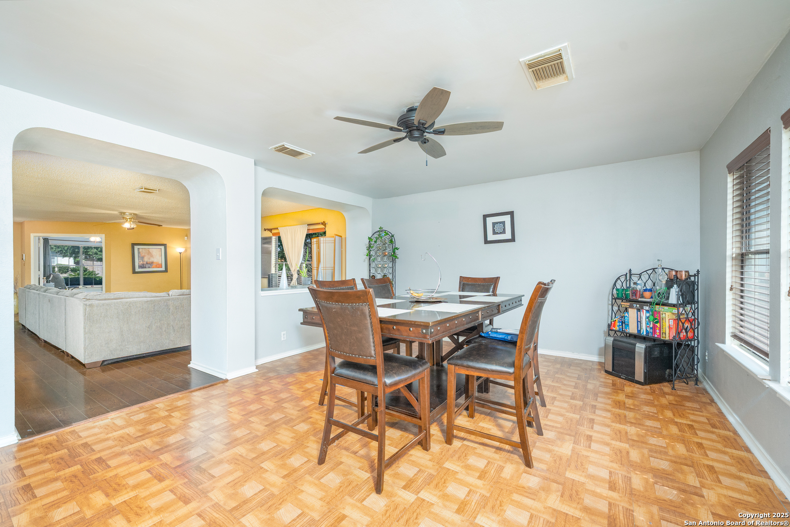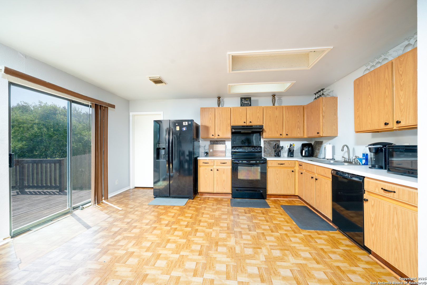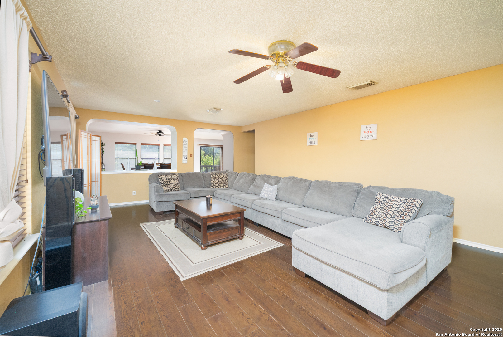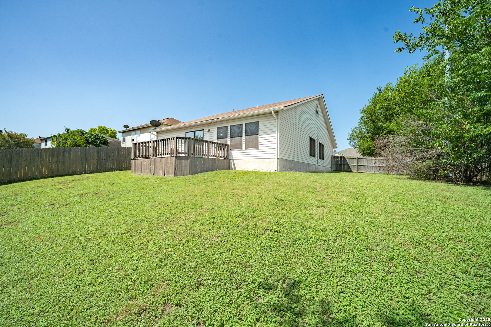 Amazing single story home in an established neighborhood with No HOA! The home features an open floor plan with no carpet at all. The living room, kitchen, and dining areas flow seemlessly together while still having their own proper space. The property features an oversized yard along the green belt sitting on .20 of an acre, and you can enjoy a beautiful sunset from the comfort of your own deck/patio. Less than 5 minutes from 1604, I-35, and Randolph AFB. The property is conveniently located within the NEISD and within walking distance of Raintree City Park.
