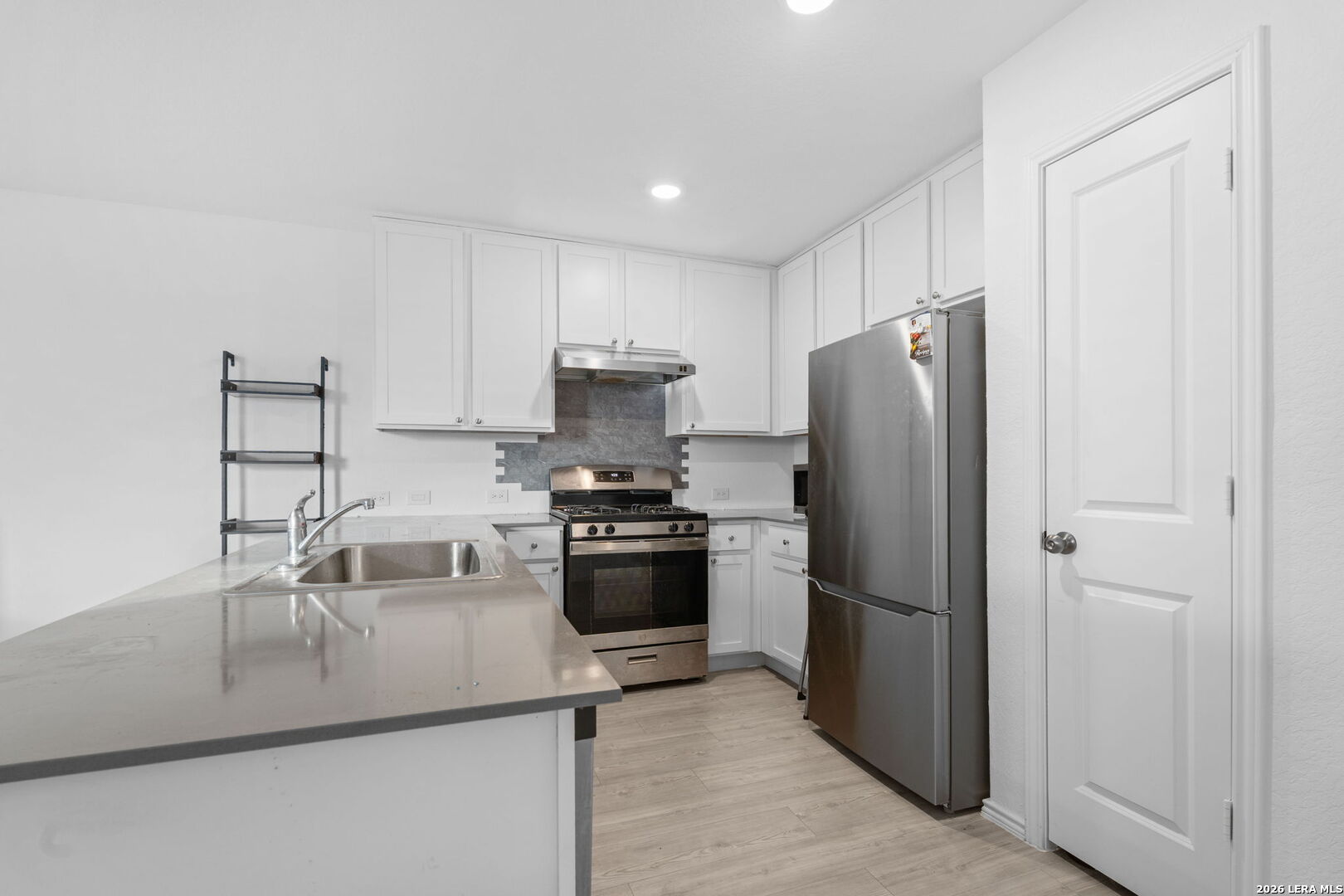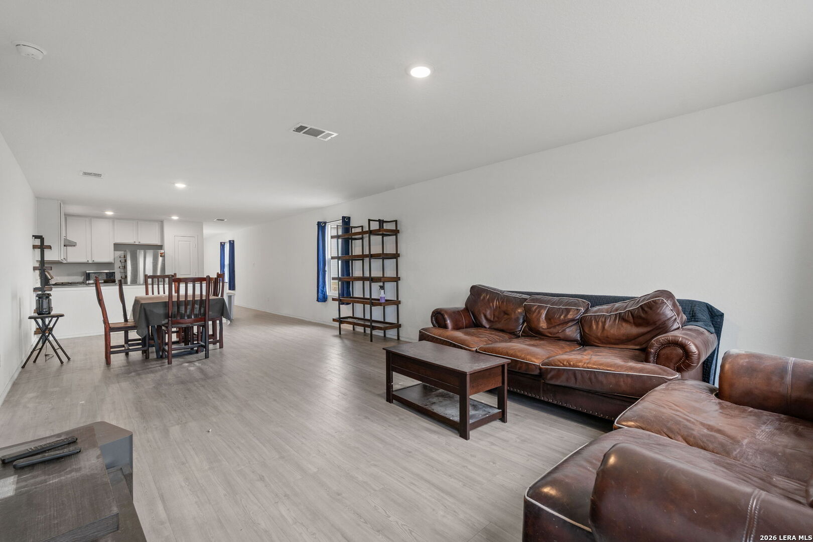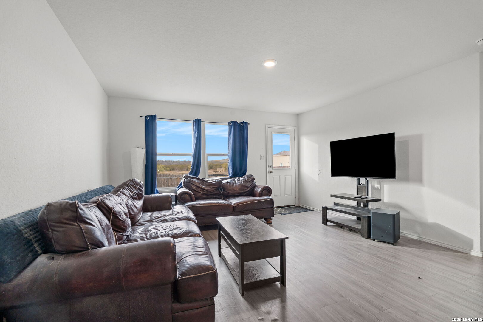 This beautifully designed 4-bedroom, 2-bath single-story home offers a thoughtful open-concept floor plan in the desirable Crescent Hill community with pool and playground amenities. The spacious living area flows seamlessly from the foyer and combines the kitchen, living room, and family room-perfect for entertaining and everyday living. The kitchen features a gas range with exterior-vented hood and solid quartz countertops. Tucked away at the back of the home for added privacy, the master suite includes a full bath and walk-in closet and backs to a peaceful greenbelt. Conveniently located near Walmart, H-E-B, Lackland Air Force Base, with quick access to Loop 410. Schedule your showing today!