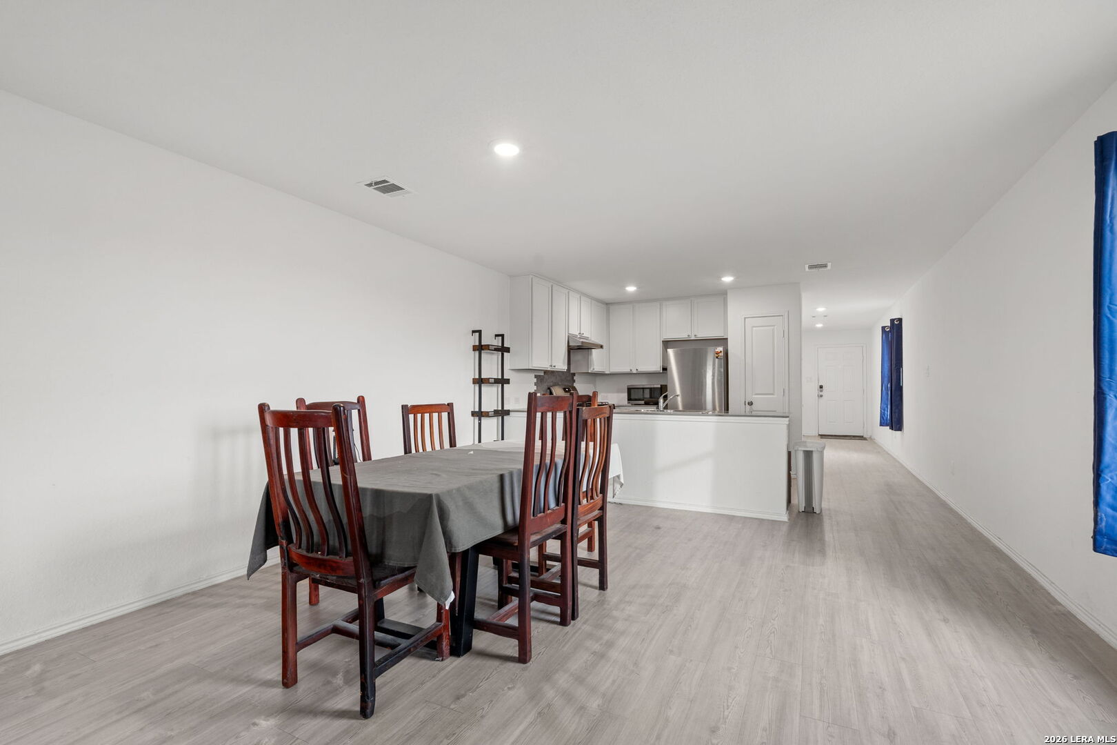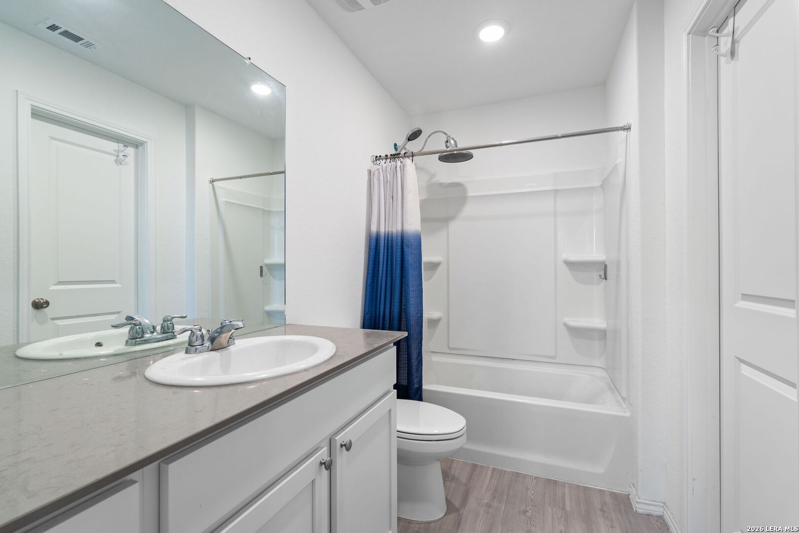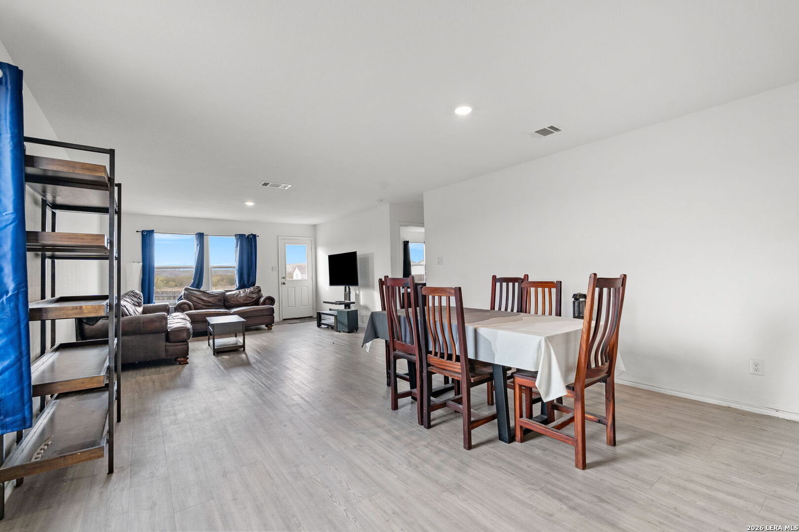 This beautifully designed 4-bedroom, 2-bath single-story home offers a thoughtful open-concept floor plan in the desirable Crescent Hill community with pool and playground amenities. The spacious living area flows seamlessly from the foyer and combines the kitchen, living room, and family room-perfect for entertaining and everyday living. The kitchen features a gas range with exterior-vented hood and solid quartz countertops. Tucked away at the back of the home for added privacy, the master suite includes a full bath and walk-in closet and backs to a peaceful greenbelt. Conveniently located near Walmart, H-E-B, Lackland Air Force Base, with quick access to Loop 410. Schedule your showing today!
