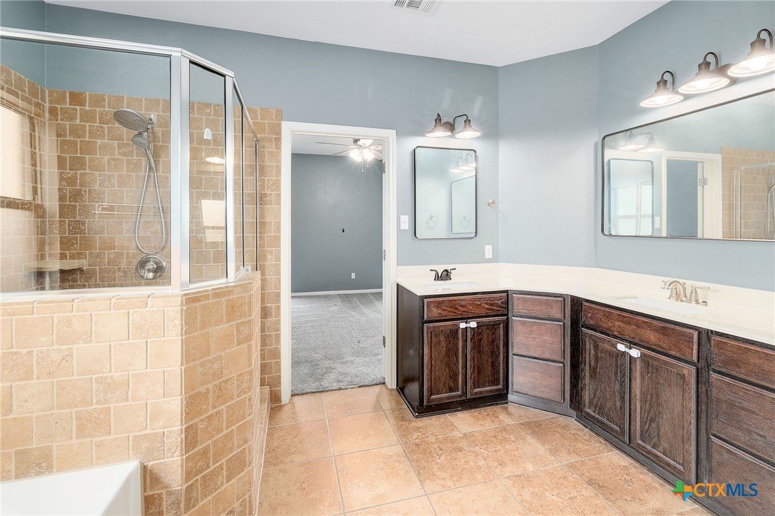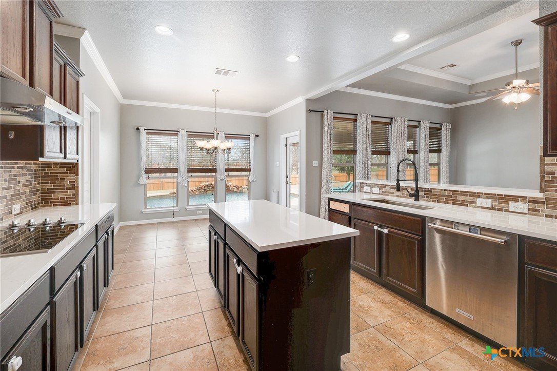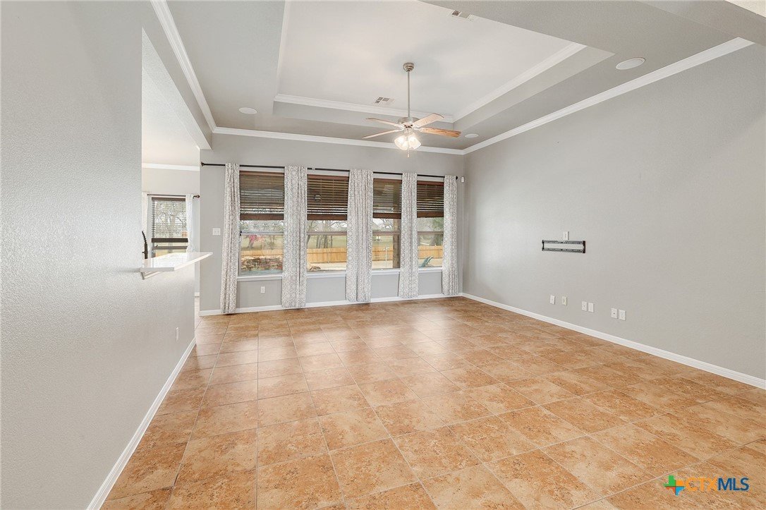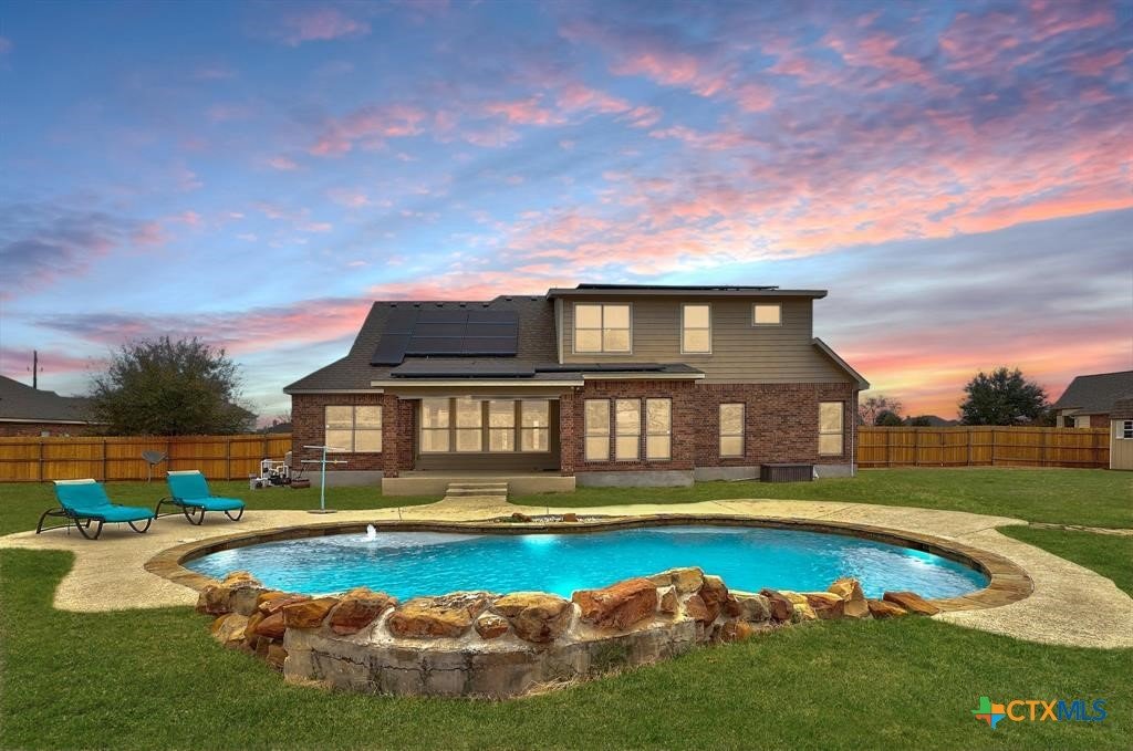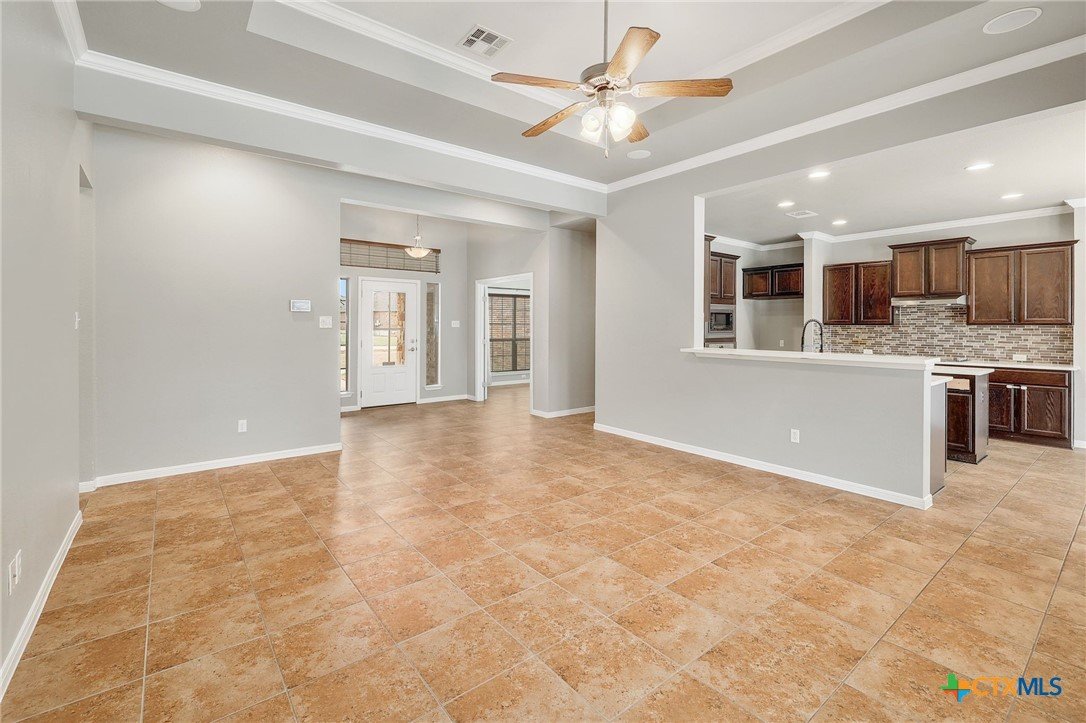 Nestled within a private gated community on a sprawling 0.75-acre lot, this home offers a highly functional layout designed for modern living. The open-concept interior maximizes every square foot, featuring a seamless flow between the kitchen, dining area, and living room—perfect for keeping the family connected. The kitchen is built for efficiency, equipped with a central island, ample cabinetry, and durable countertops that overlook the main living space. With multiple bedrooms and an expansive upstairs loft, the floor plan provides dedicated spaces for a home office, a gym, or a playroom to suit your specific needs. The exterior is designed for utility and recreation, offering a massive, level backyard that provides plenty of room for pets, gardening, or outdoor activities. The deep, covered back patio is outfitted with dual ceiling fans, creating a comfortable, shaded environment for outdoor dining or relaxing by the in ground pool. Because the property backs directly to a park and greenbelt, you enjoy a permanent natural buffer with no rear neighbors and direct access to community walking trails. This home combines a secure, gated environment with the practical benefits of extra acreage and a thoughtfully organized living space.