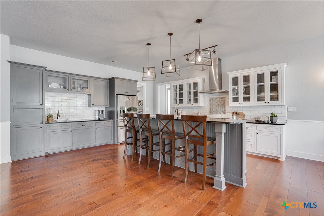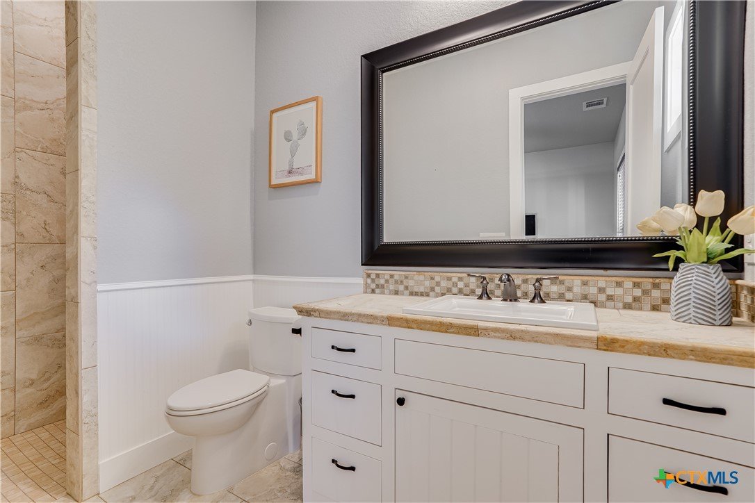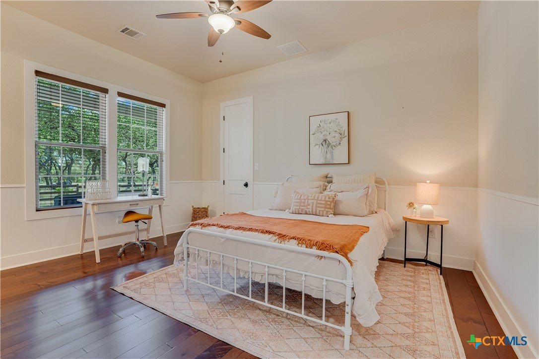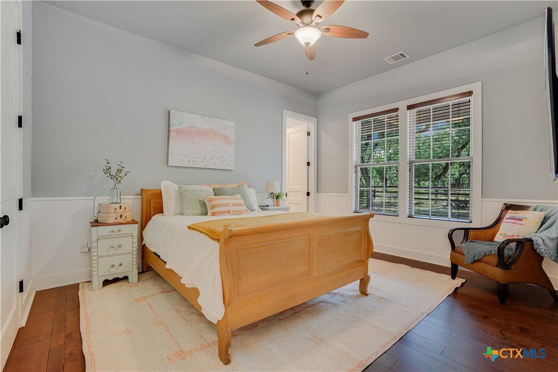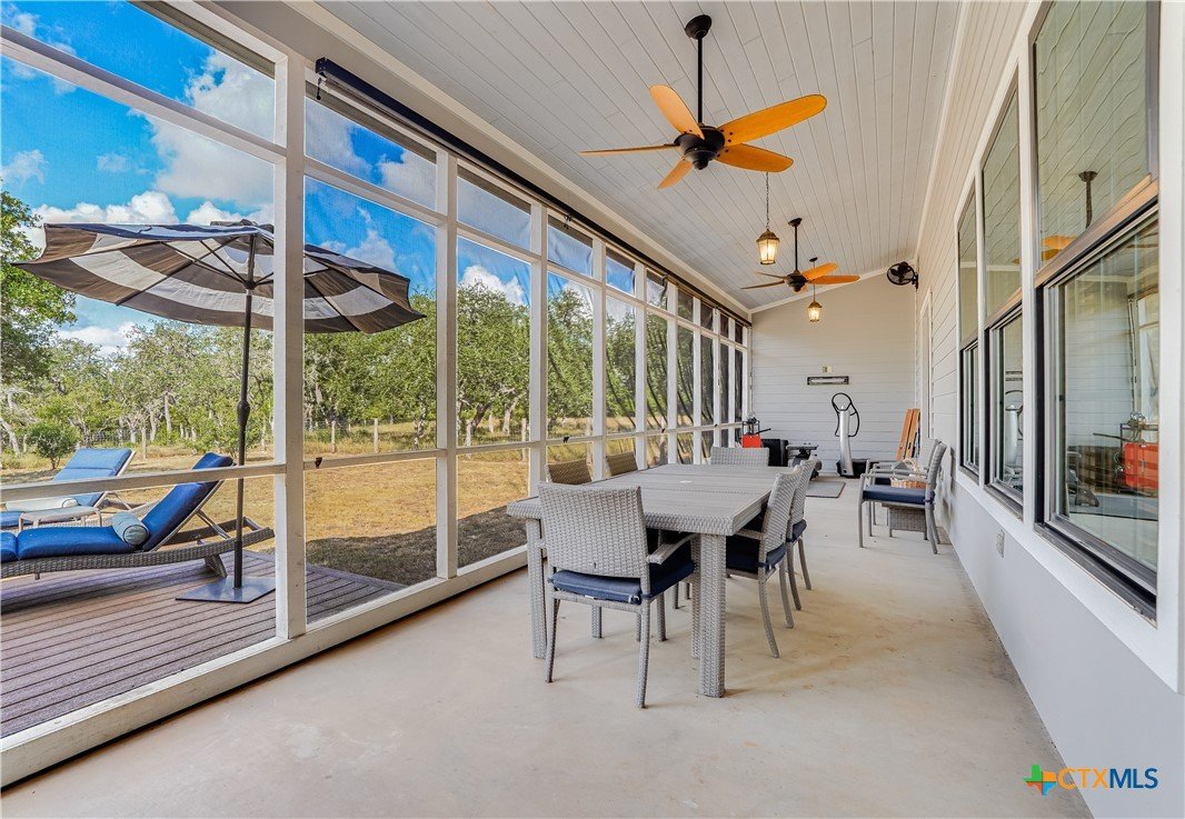 Tucked away in the desirable Big Sky Ranch subdivision, this inviting home offers privacy while being just minutes from all that Wimberley has to offer. Thoughtful upgrades and Hill Country charm combine to create a truly special property. Step inside to find shiplap accents, upgraded light fixtures, and ceiling fans throughout. The open floor plan features a spacious living room with a wood-burning fireplace and a chef’s kitchen complete with island, deep farm sink, large pantry, upgraded stainless appliances, propane Wolf multi-burner range, and KitchenAid refrigerator. A generous utility room is conveniently located just off the kitchen. Designed for comfort, the home offers three spacious bedrooms, each with a private bath, plus a guest half bath. The primary suite boasts a clawfoot soaking tub, walk-in shower, and large walk-in closet. Wood floors run throughout the home, with tile in all bathrooms. Need a quite place for an office, craft room or game room; head out to the bonus room over the garage. Home has spray foam insulation to help keep those electric bills low. Enjoy the outdoors year-round from the large covered front porch or screened back porch, both with ceiling fans to keep you cool. Or step out on your Trex deck into the hot tub. The fenced front and back yards make this a pet-friendly property, while majestic oak trees provide shade and beauty. Additional features include: Oversized 2-car garage with adjoining workshop; Generac whole-house generator; Starlink internet or Spectrum (for high speed internet); Agricultural exemption (via cattle) for significant tax savings; and a firepit area. Located within the highly sought-after Wimberley ISD, this property offers both convenience and tranquility—an ideal place to call your forever home.