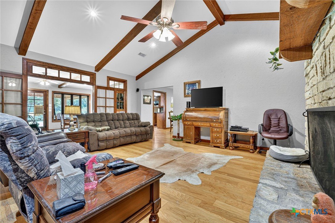 Experience the perfect blend of space, style, and serenity with this stunning 10-acre retreat just outside Hamilton, TX. The impressive 3,300 sq. ft. brick home offers 3 spacious bedrooms, as well as fourth space that can utilized as a bedroom or family room, and 3.5 baths, designed for both comfort and entertaining. The inviting living room features a cozy wood-burning fireplace and flows seamlessly into a bright breakfast nook and gourmet kitchen with granite countertops, stainless steel appliances, and a center island. Enjoy elegant meals in the formal dining room and appreciate the convenience of a large utility room and generous storage throughout. The primary suite is a true escape with a soaking tub, separate shower, split vanities, and rich granite finishes. Natural light pours through expansive windows, highlighting every detail. Step outside to your private oasis—an oversized covered patio with a wood-burning fireplace, built-in grill, and ceiling fans sets the stage for unforgettable gatherings. Play a match on your private tennis court, relax under the canopy of mature trees, or take in the peaceful views of the neighboring city lake. Complete with a carport and storage shed, this property is a rare combination of luxury, recreation, and tranquility.