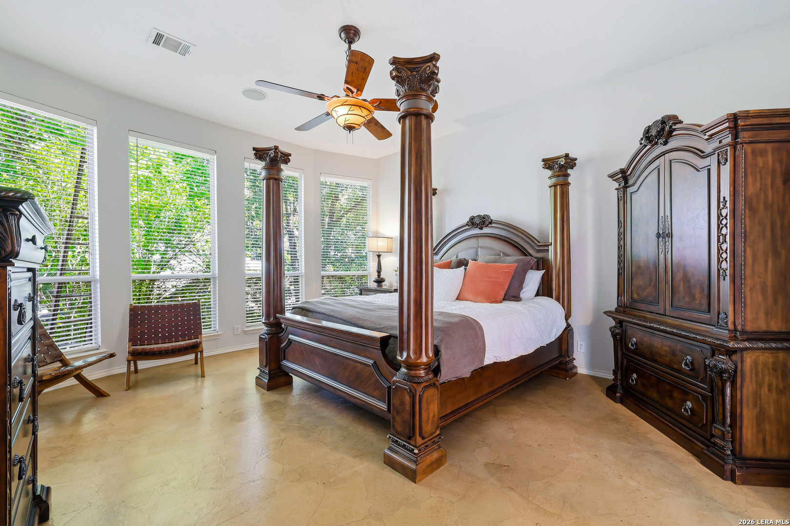Welcome to the Beautiful 5Bedroom/4Bath home nestled at the desirable Oaks of Sonterra gated community. Stunning 2 Story residence features an open floor plan with 3 Family Living Spaces, a Media Room that includes seating and surround sound. Master and Second Bedroom downstairs which can be used for Guest Room or Mother-In-Law room, offering Multiple Generational Living. Upstairs includes 3bedroom, Gameroom/Bonus room, Media Room for Family Entertainment. Step inside to discover High End details throughout the home, seamless flow for everyday living. The patio is designed to offer another dining area, entertainment and relaxation. Location is key! Shopping, Dining, minutes to Airport, Downtown, La Cantera, The Pearl and much more! Priced to Sell!