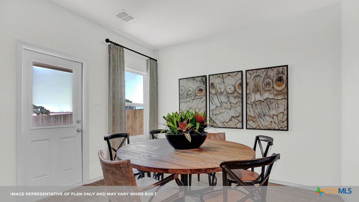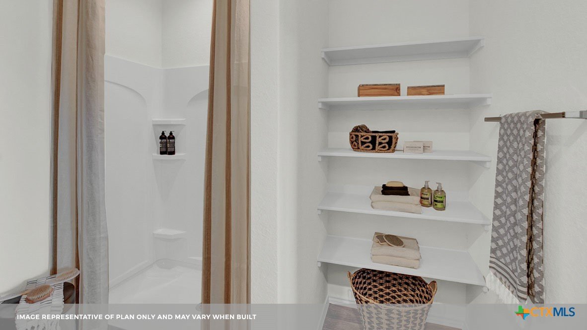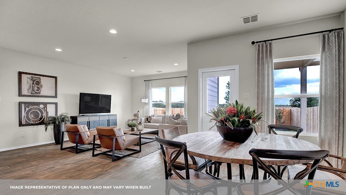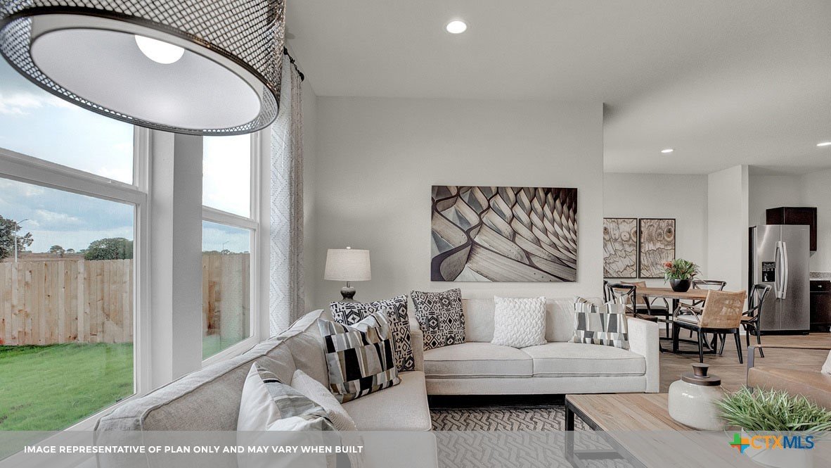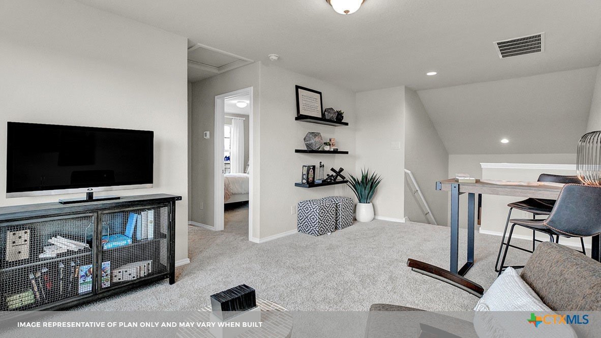 MOVE IN READY! Find all the space you need in our Midland floorplan at Arroyo Ranch in Seguin, Texas. This two-story home includes 4 bedrooms, 3 bathrooms, a loft and 2 car garage within its 2,170 square feet of living space. Our homes in Arroyo Ranch feature brick or brick and stone exteriors and the Midland plan is available with 2 exterior elevations to choose from. Step inside this home and walk through the foyer to the kitchen, dining, and family room. This open concept space is perfect for hosting and entertaining, as well as everyday living. The L-shaped kitchen features granite countertops, a large island facing the family room, a corner pantry closet, stainless-steel appliances and 36’’ upper cabinets. The first floor includes 2 bedrooms and 2 bathrooms. The primary bedroom is at the back of the home, off the family room, and includes an attached bathroom. This relaxing bathroom space features a 5’ walk in shower, double sink vanity, private toilet area with a door, and a walk-in closet. At the front of the home is a secondary bedroom, bathroom, and utility room. The secondary bathrooms include a tub/shower combination. Ascend the stairs to the loft, an extra living space that could be used as an office or play area for the kids. Two additional bedrooms and a full bathroom are upstairs, allowing amble space for the whole family. The Midland includes vinyl flooring throughout the common areas of the home, and carpet in the bedrooms, loft, and stairwell. All our new homes feature a covered back patio, full sod, irrigation system in the front and back yard, and a 6’ privacy fence around the back yard. This home features our America’s Smart Home base package, which includes the Video Front Doorbell, Front Door Deadbolt Lock, Home Hub, Thermostat, and a Smart Switch.