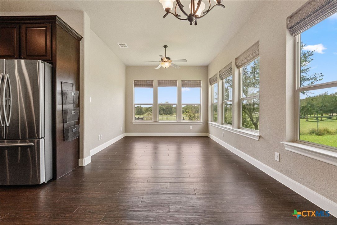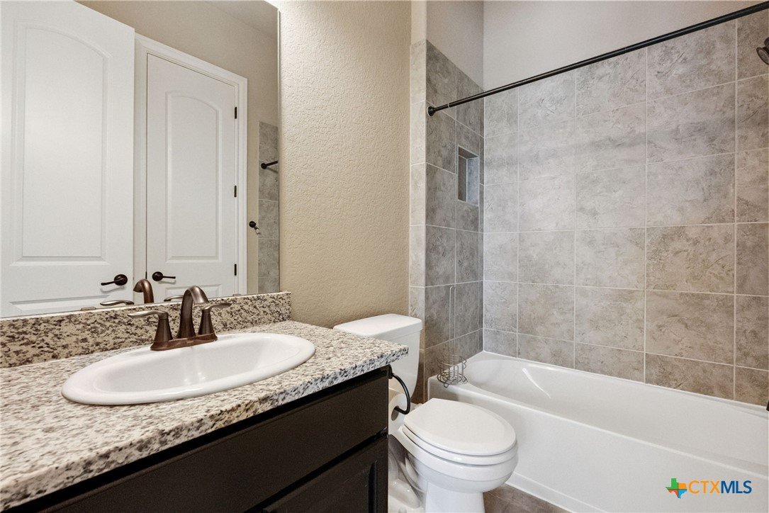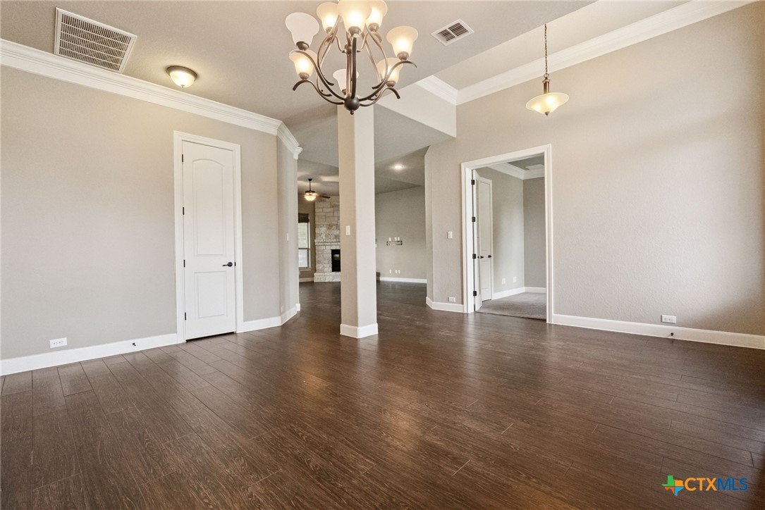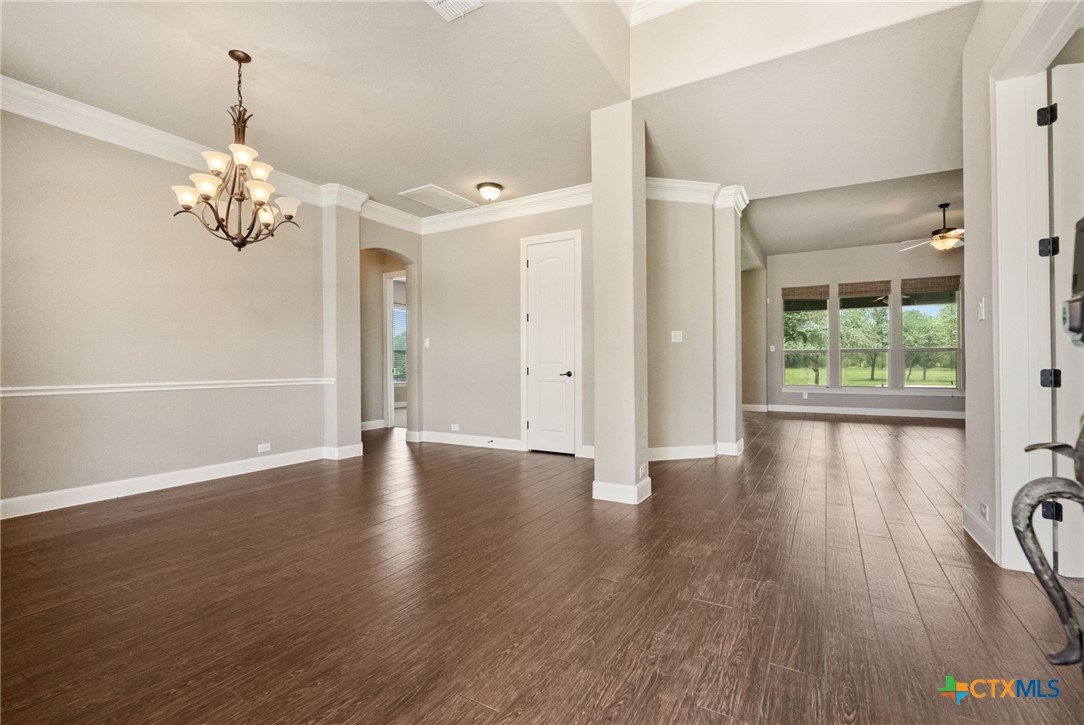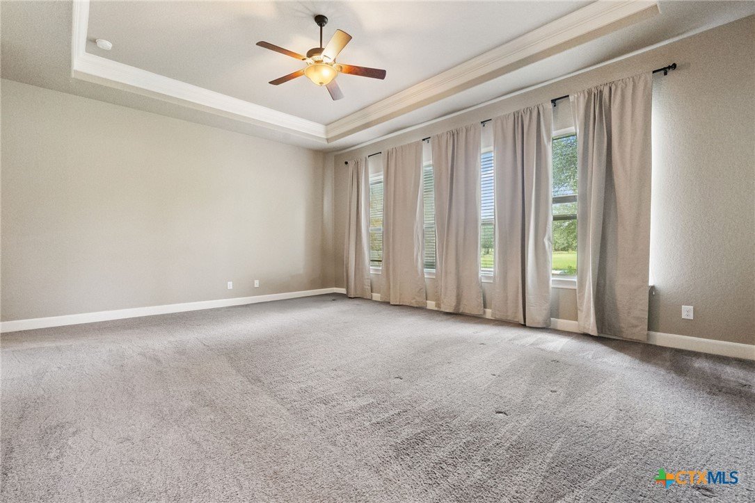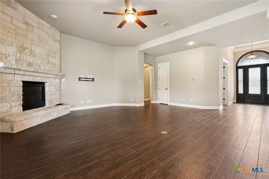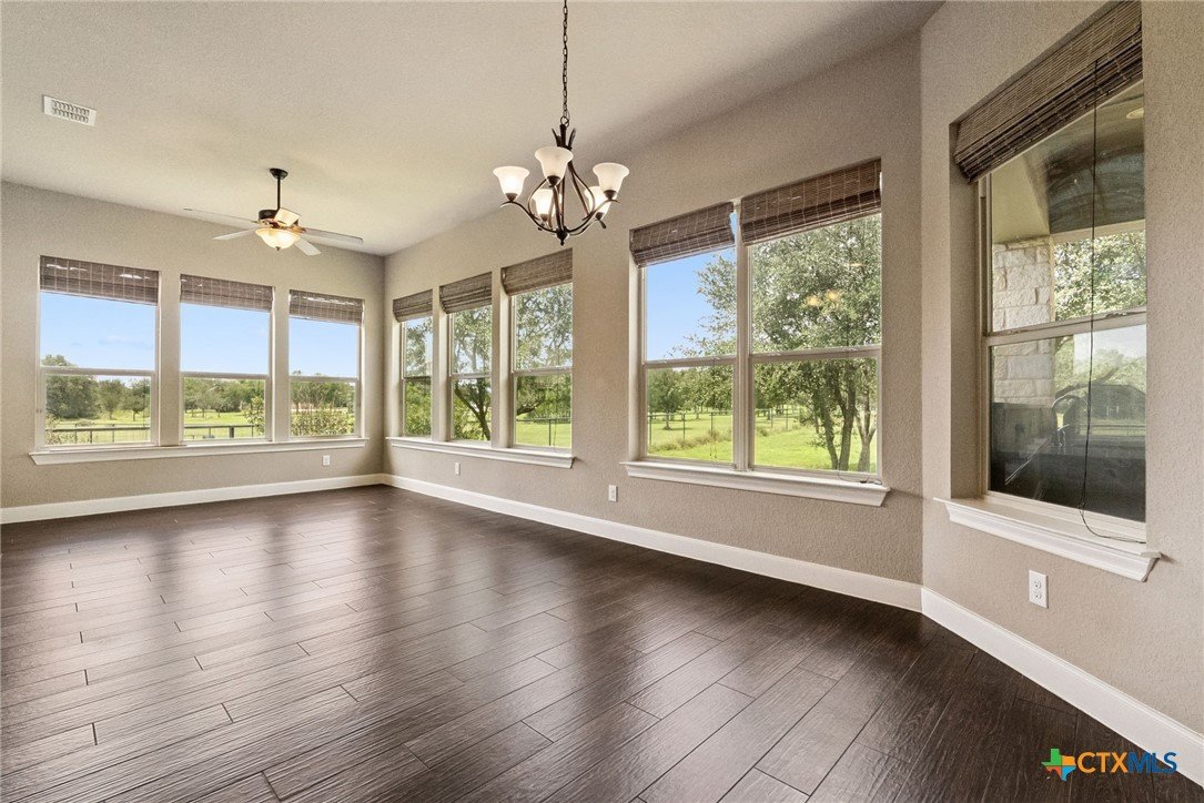 Welcome to your private Texas retreat! This beautifully designed 4-bedroom, 4-bathroom custom home sits at the end of a quiet cul-de-sac on a gated 1.7-acre lot, offering privacy, luxury, and space to entertain both inside and out. A grand circular driveway leads you to the stone and stucco exterior, surrounded by mature trees and well-kept landscaping. Inside, the home features tall ceilings, crown molding, and rich wood-look tile floors throughout the main living areas. The open-concept layout includes a spacious living room with a stone fireplace and large windows overlooking the backyard. The gourmet kitchen is a dream for any chef, complete with granite countertops, dark custom cabinetry, stainless steel appliances, a gas cooktop, and a large island perfect for gatherings. Just off the kitchen, the sun-drenched breakfast area offers peaceful views of the backyard, while the formal dining room adds a touch of elegance for entertaining guests. The primary suite is a true escape, featuring a large bedroom with soft natural light and a spa-inspired bathroom with dual vanities, a soaking tub, a walk-in shower, and plenty of storage. Each of the additional bedrooms is generously sized, and the layout includes a private study, ideal for working from home. Step outside to enjoy your own backyard oasis. The covered patio features a full outdoor kitchen and fireplace, perfect for entertaining year-round. Cool off in the sparkling in-ground pool or relax under the trees while enjoying the peaceful greenbelt view behind the home. This property blends upscale finishes, thoughtful design, and outdoor living in one incredible package. It’s not just a home—it’s a lifestyle!