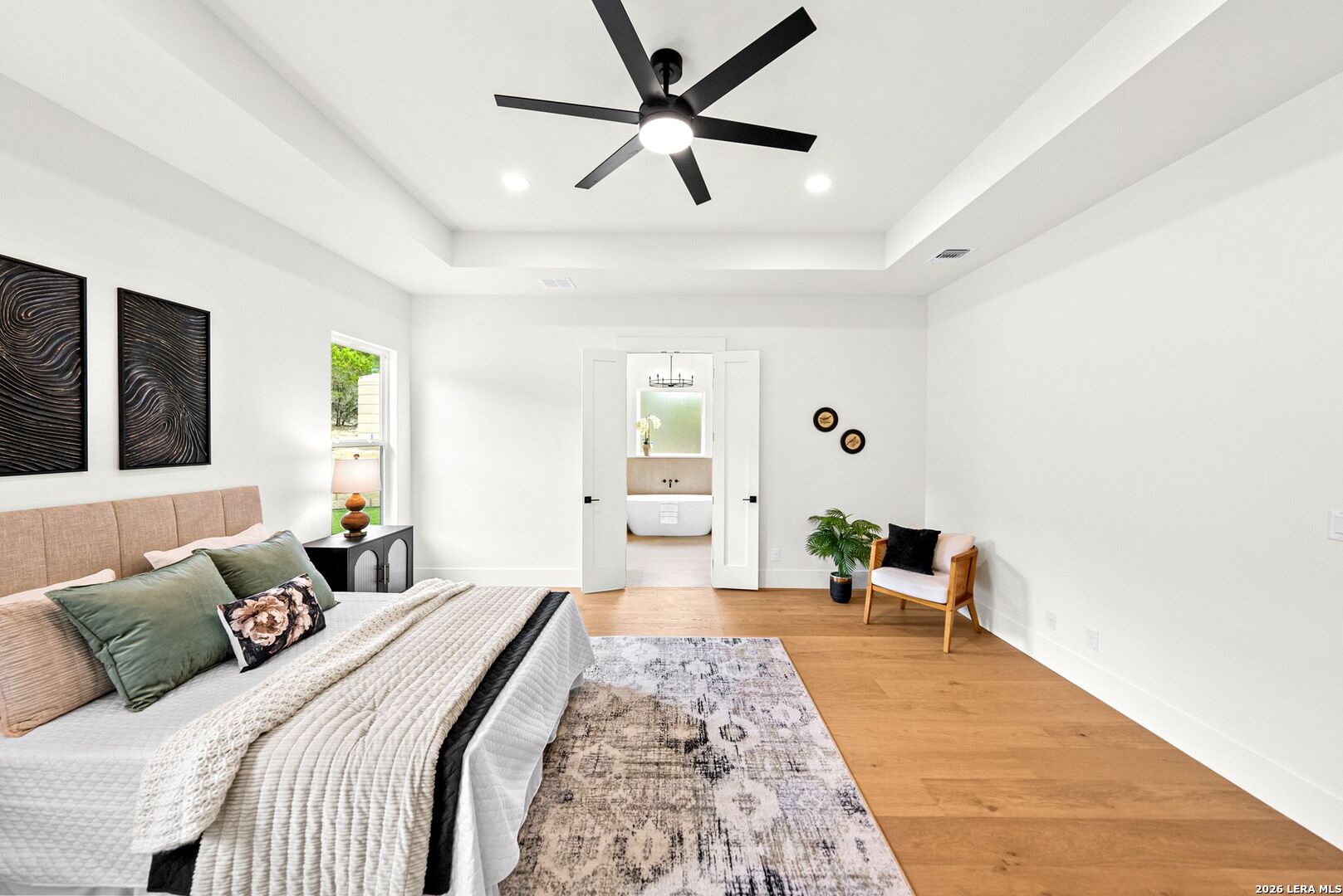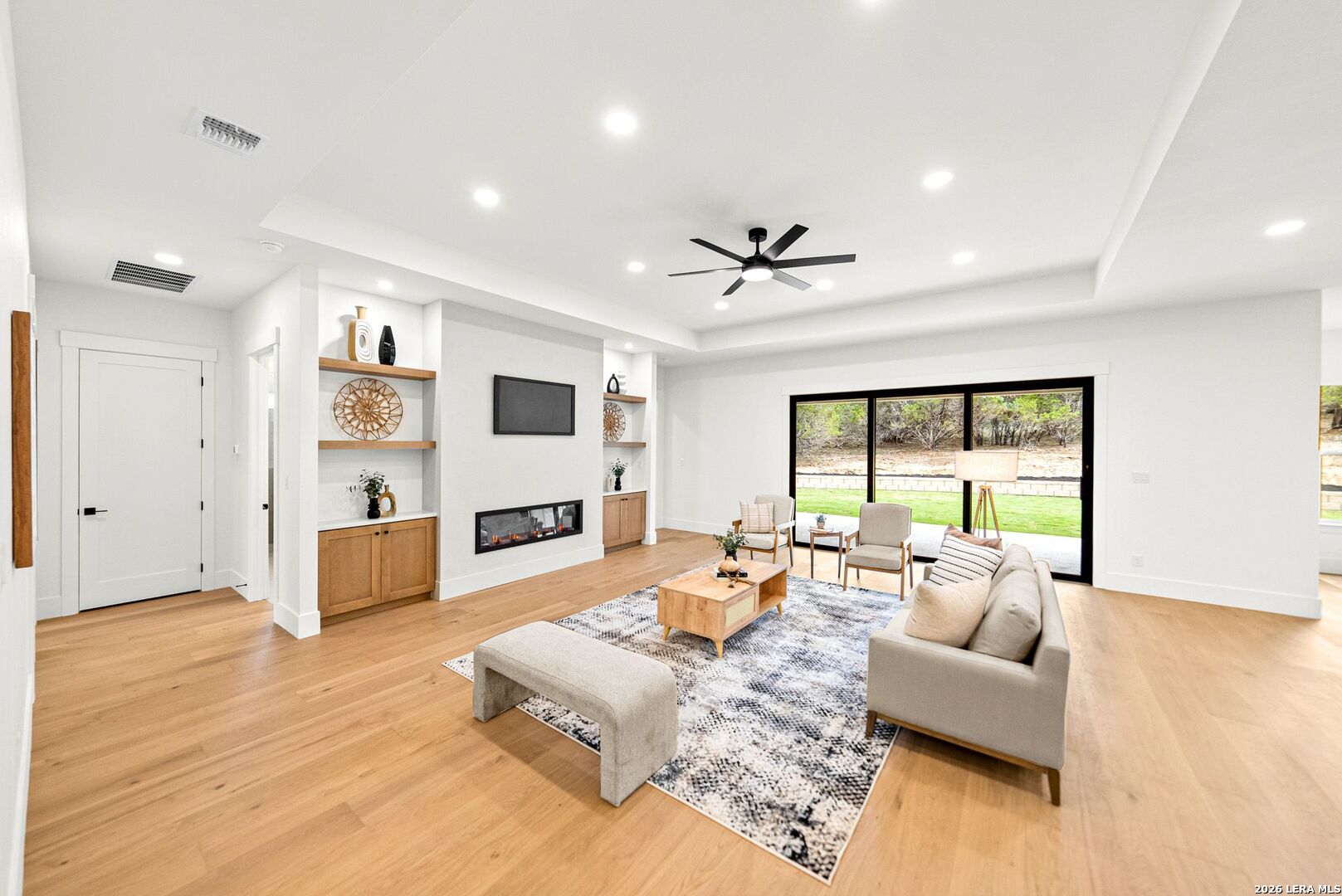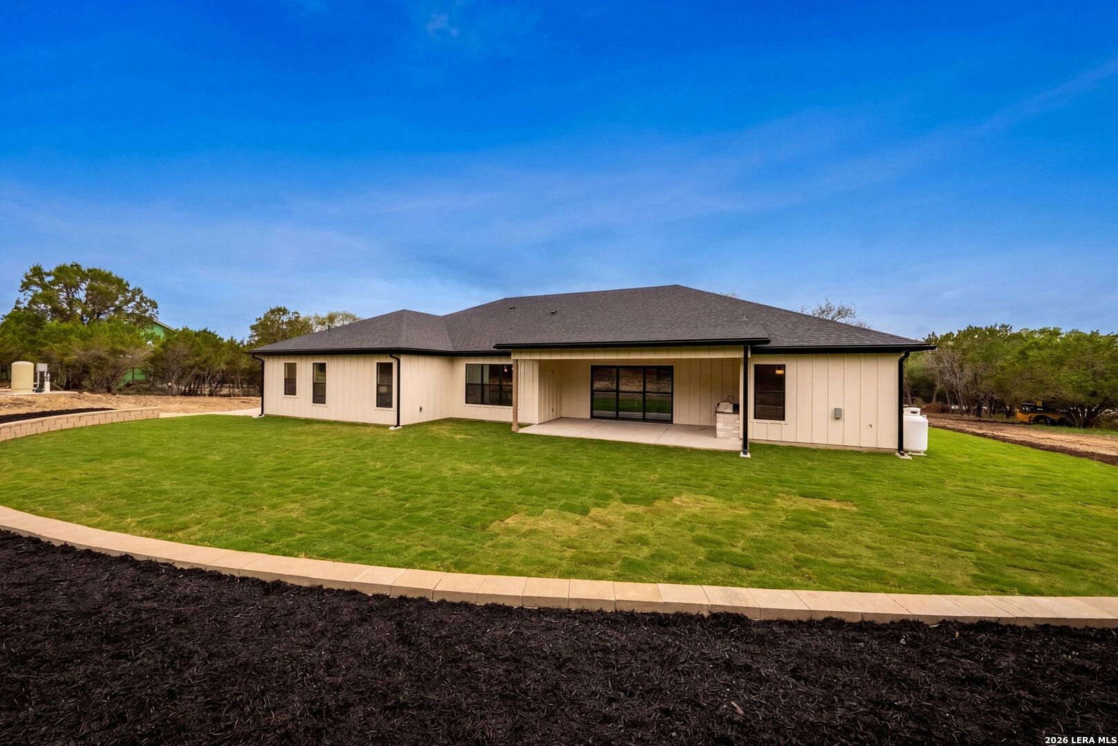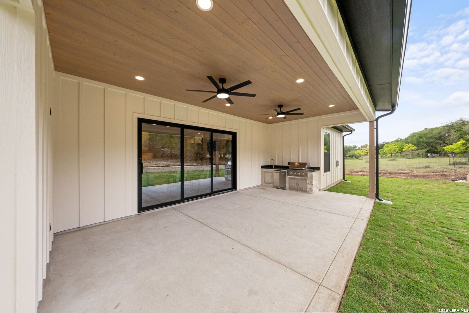 New by Pillar Homes - Experience Hill Country elegance in this new stunning modern ranch style property located in the established community of The Crossing in Boerne, TX. Sitting on almost 2 acres, this is a 4 bed, 3.5 bath, + office home that blends luxury craftsmanship with everyday comfort. Step through the oversized wrought iron front door into a bright, open living space featuring high ceilings, hardwood floors, venetian plaster fireplace, thoughtfully designed with custom details throughout. The gourmet kitchen includes quartz countertops, custom hood, huge eat-in island, and gas cooking - and the extended butlers pantry provides an additional prep and cook space - great for both entertaining and family gatherings. Seamlessly transition outdoors through the oversized patio slider to a private outdoor space equipped with an outdoor kitchen, perfect for enjoying the hill country's beautiful evenings. This property truly captures the charm of country living with modern luxury - don't miss your chance to call this retreat your own. Located right outside 46, easy commute to Boerne and Bulverde, 1-2-10 builder warranty included.