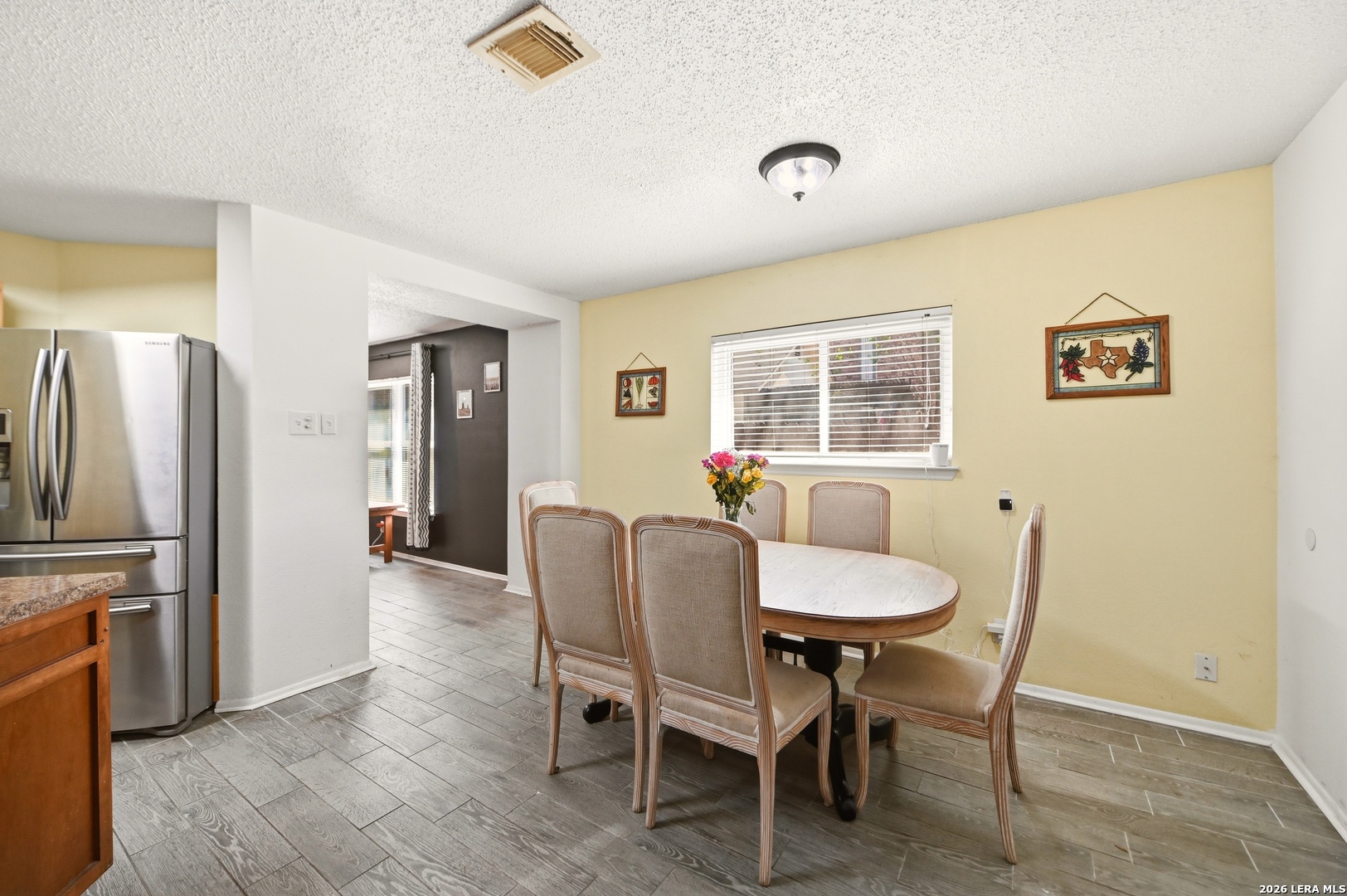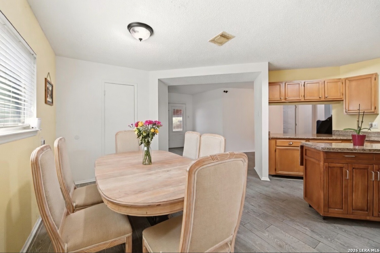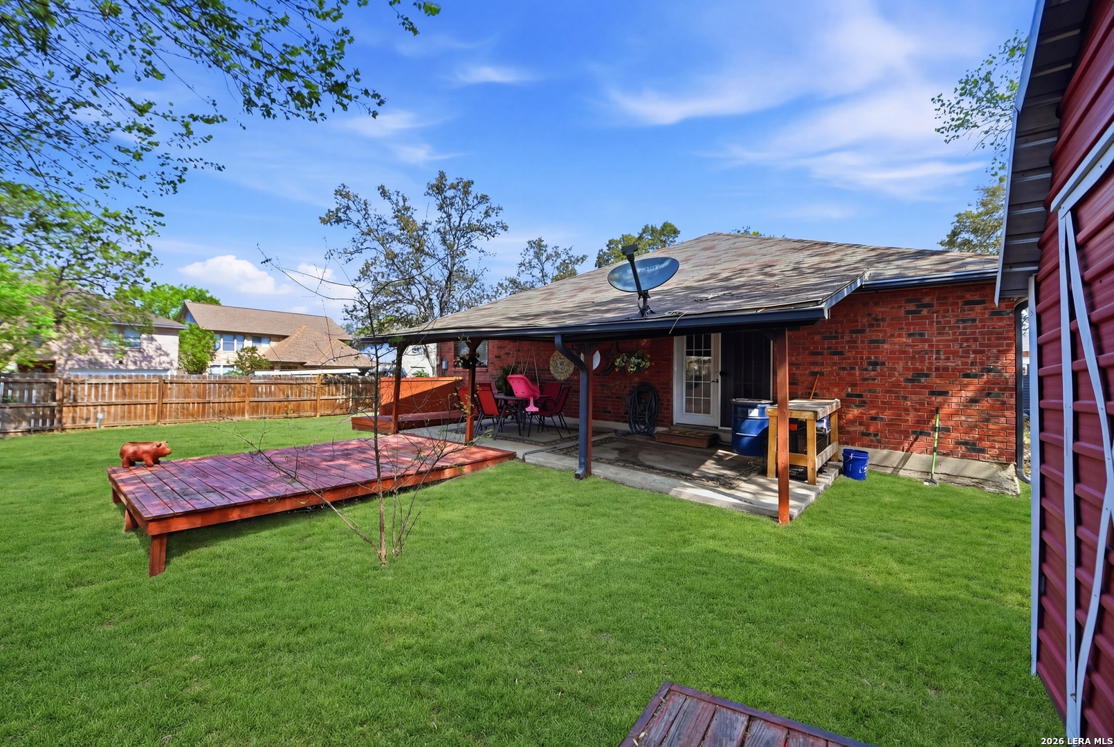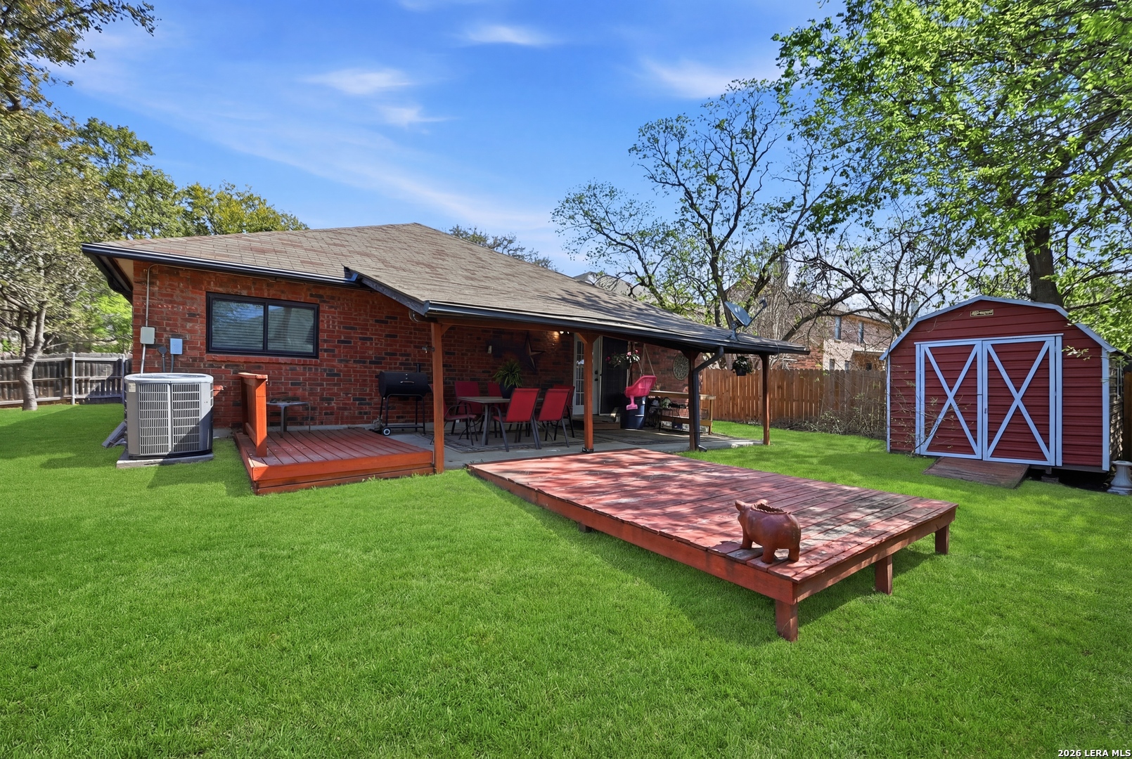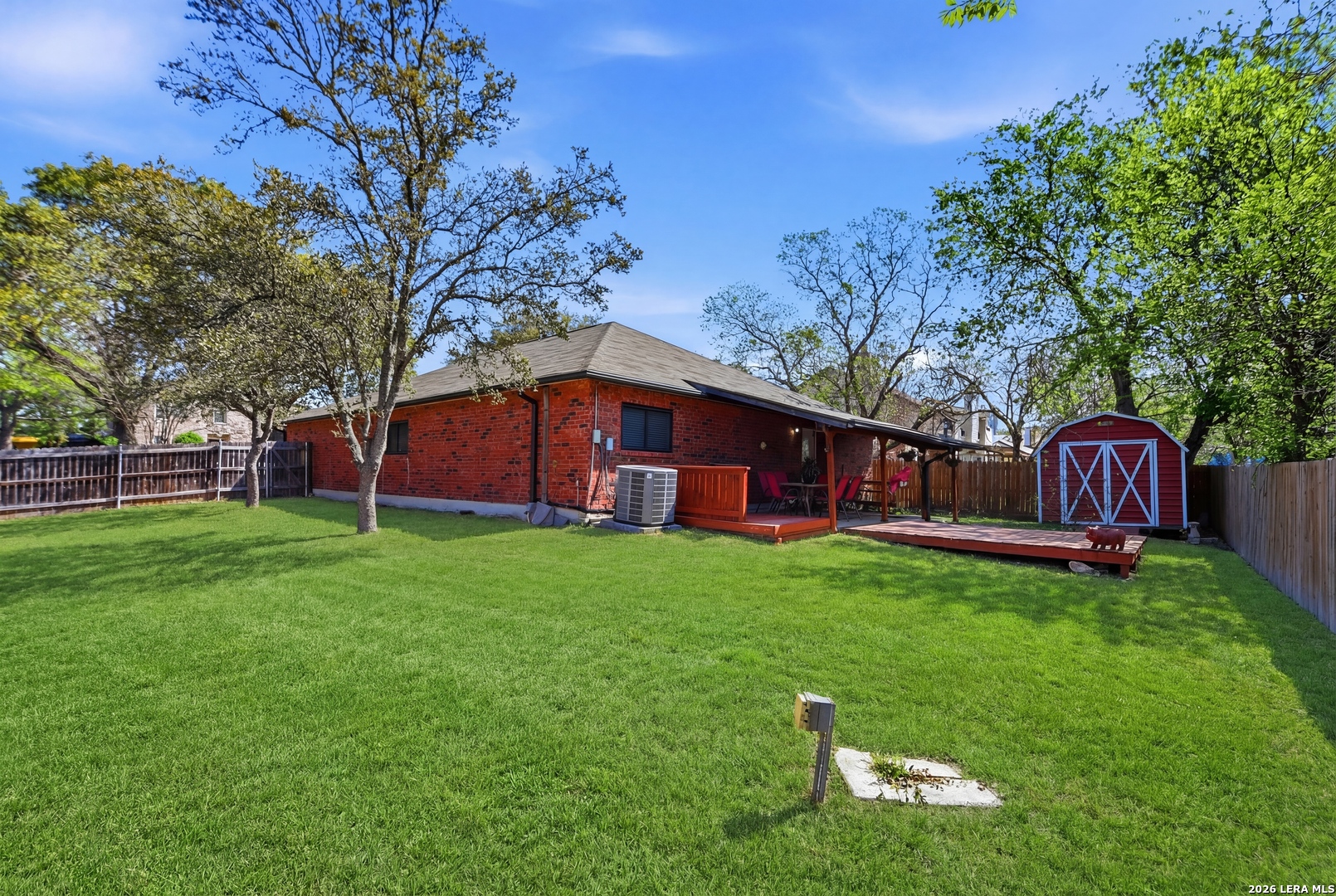 Welcome home to this beautifully maintained one-story gem situated on a spacious corner lot! This inviting 3-bedroom, 2-bath home offers an incredibly functional layout with a versatile bonus room currently being used as a fourth bedroom. Perfect for guests, a home office, or flex space to fit your needs. Step inside to find a light-filled, open floor plan featuring two living areas and two dining spaces, ideal for both everyday living and entertaining. The home boasts spacious rooms throughout and no carpet. Enjoy easy maintenance with wood-look tile flooring throughout! The updated kitchen and bathrooms add a modern touch, while the split owner's suite provides privacy and comfort. The primary retreat features a huge walk-in closet, dual vanities, and an oversized walk-in shower. Out back, you'll love relaxing or entertaining on the covered patio with an extended deck. A 10x12 shed provides extra storage, and the two-car attached garage adds convenience. With abundant natural light, flexible living spaces, and thoughtful updates throughout, this home truly offers both comfort and versatility. Don't miss it! Grass has been virtually edited.