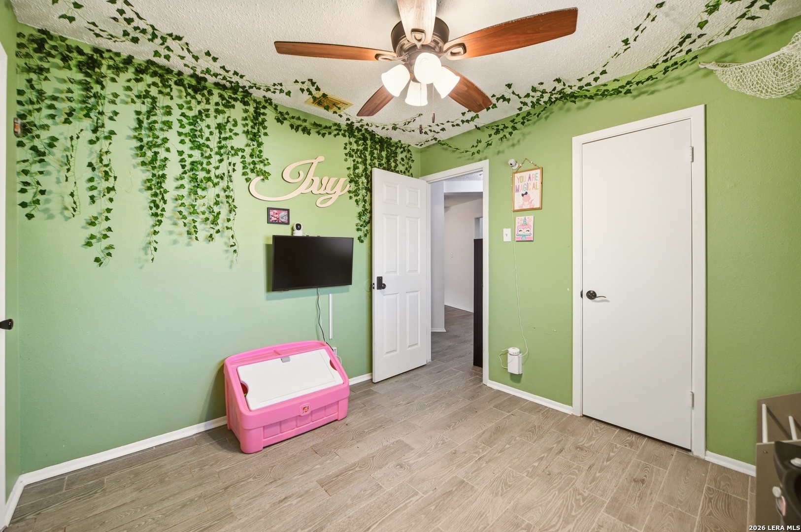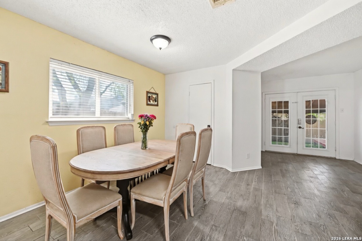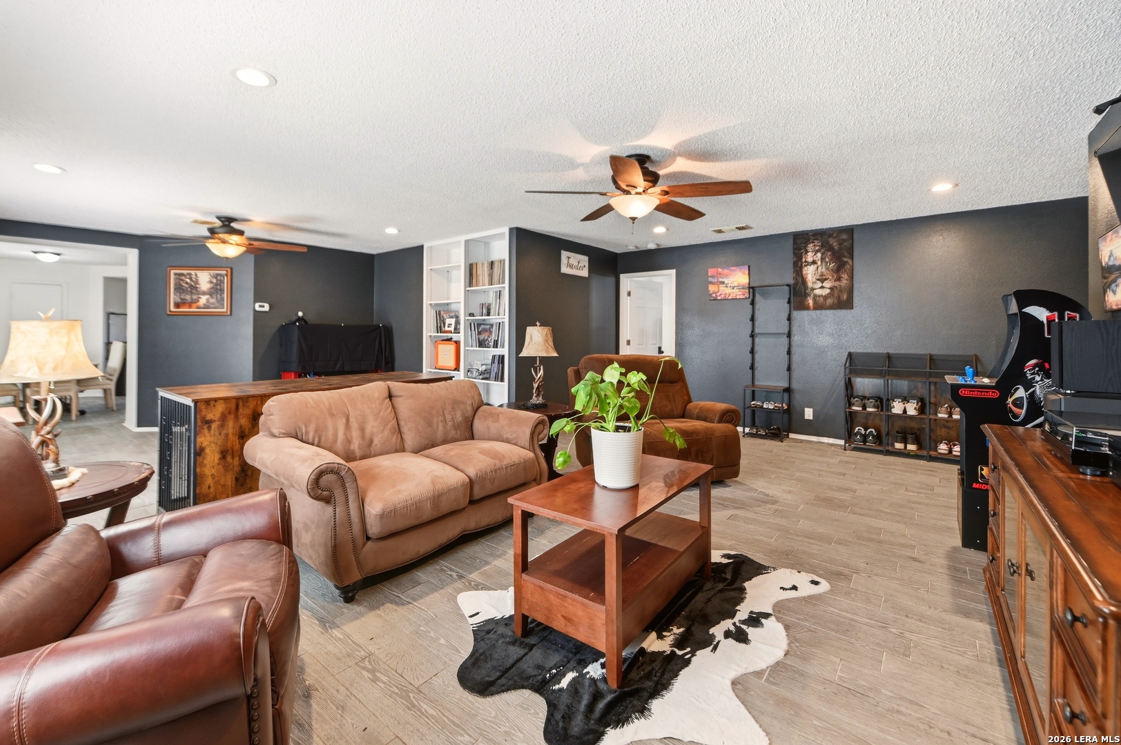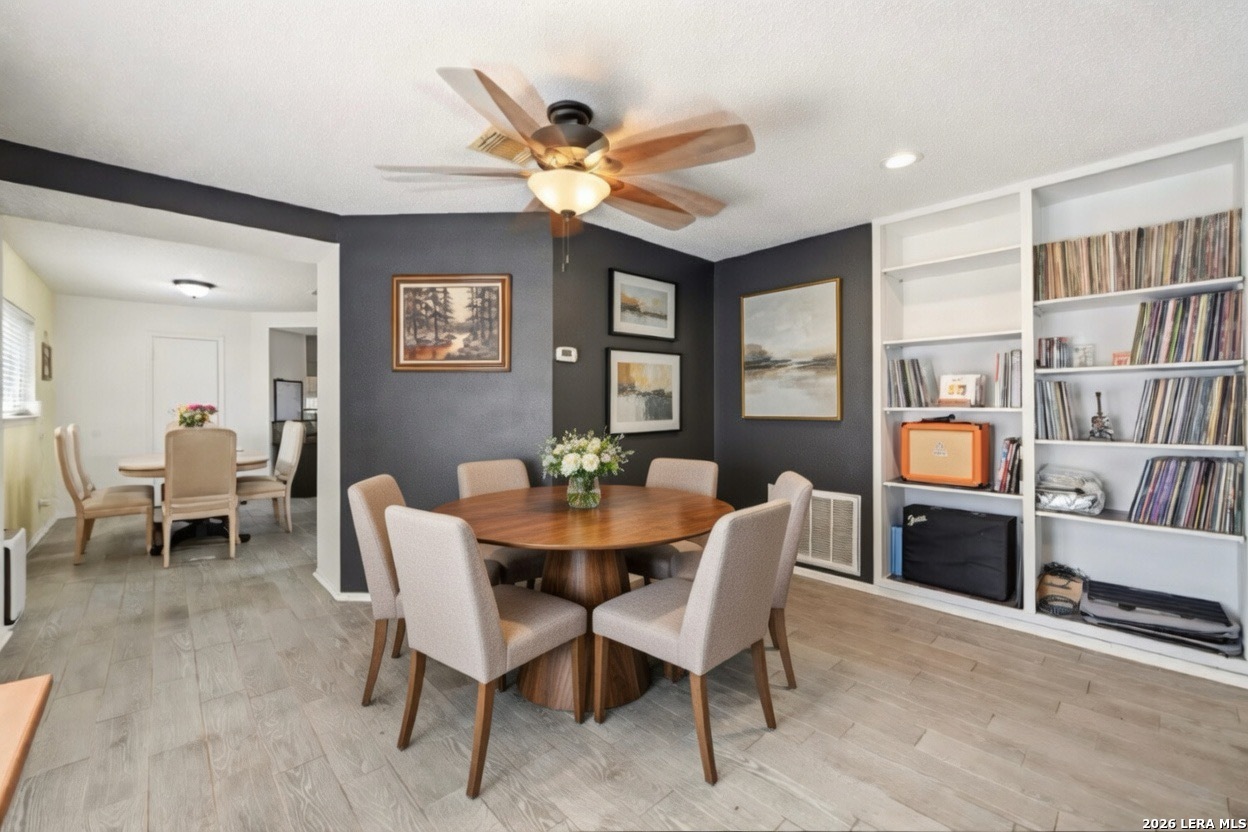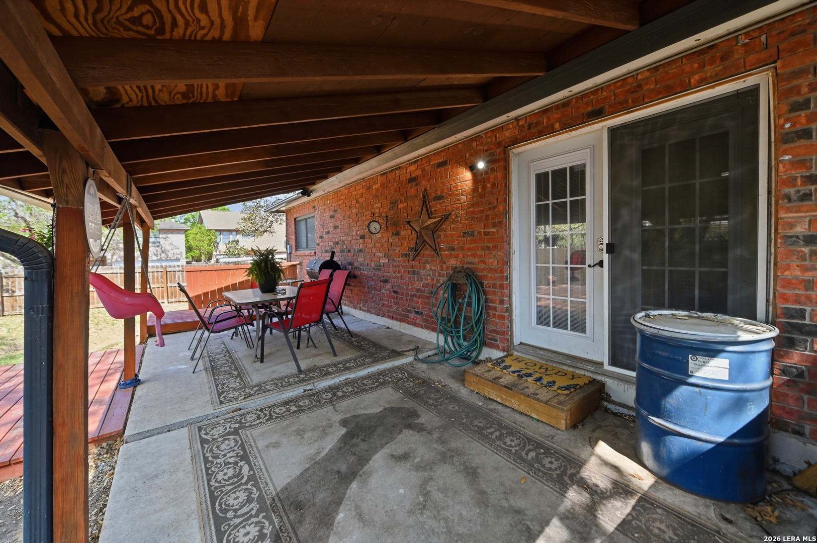 Welcome home to this beautifully maintained one-story gem situated on a spacious corner lot! This inviting 3-bedroom, 2-bath home offers an incredibly functional layout with a versatile bonus room currently being used as a fourth bedroom. Perfect for guests, a home office, or flex space to fit your needs. Step inside to find a light-filled, open floor plan featuring two living areas and two dining spaces, ideal for both everyday living and entertaining. The home boasts spacious rooms throughout and no carpet. Enjoy easy maintenance with wood-look tile flooring throughout! The updated kitchen and bathrooms add a modern touch, while the split owner's suite provides privacy and comfort. The primary retreat features a huge walk-in closet, dual vanities, and an oversized walk-in shower. Out back, you'll love relaxing or entertaining on the covered patio with an extended deck. A 10x12 shed provides extra storage, and the two-car attached garage adds convenience. With abundant natural light, flexible living spaces, and thoughtful updates throughout, this home truly offers both comfort and versatility. Don't miss it! Grass has been virtually edited.