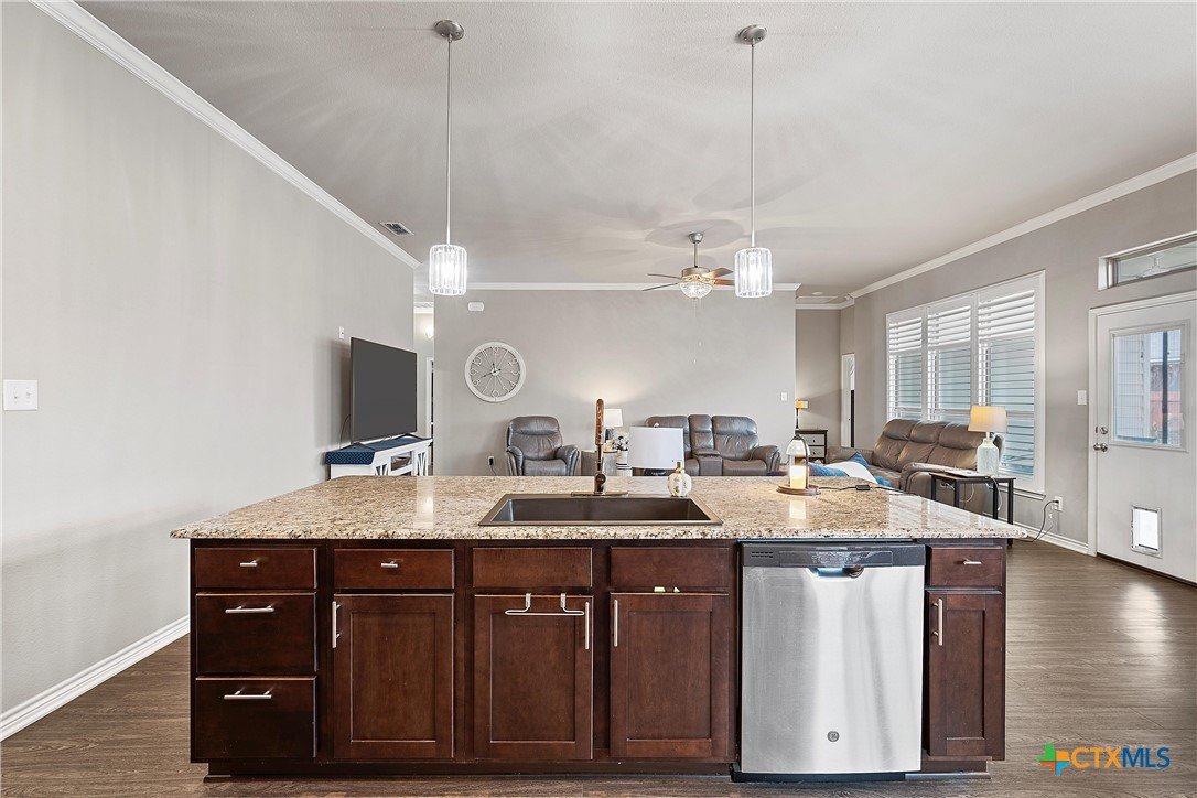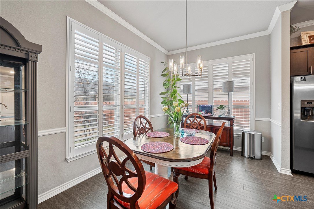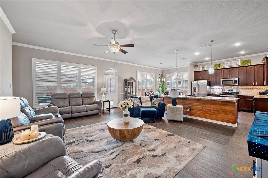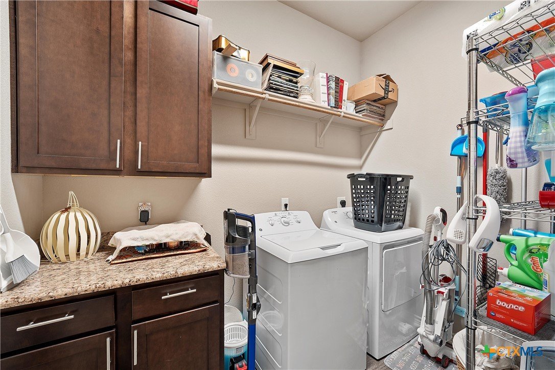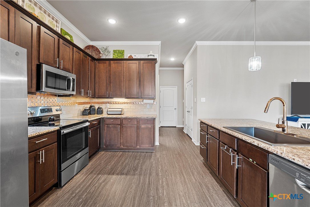 Meticulously maintained, like new Rio Grande plan from esteemed builder, Kiella Homes! Same new plans at over 400k, but why wait when this gem has it all?! You'll love upgrades such as custom Plantation shutters in the living and dining areas. A separate office with doors makes for more room space to get work done. New roof in 2024! You'll fall in love entertaining on the HUGE back patio, or simply enjoying your morning coffee. Luxury laminate vinyl plank flooring throughout, with no carpet and many updates and upgrades. Don't miss this gem of luxury living in the sought after community of Hills of Westwood in Temple! Refrigerator and full size matching washer and dryer convey with offer deemed acceptable to sellers!