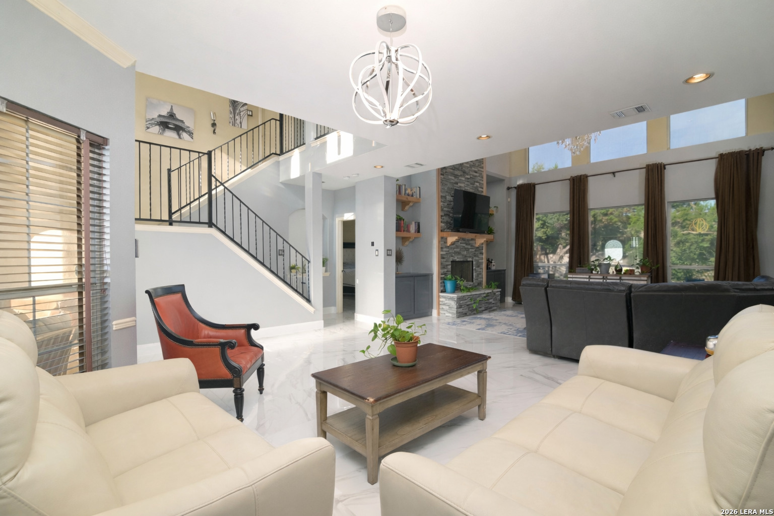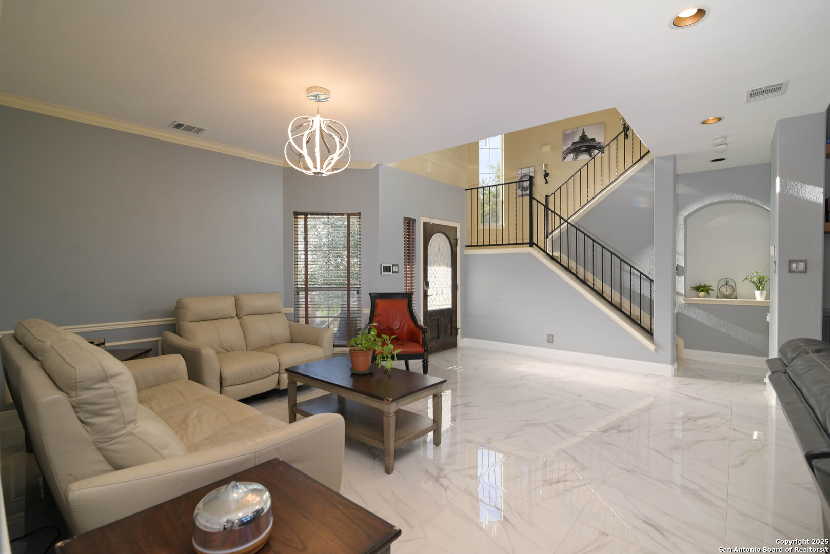 Welcome to Legend Hills, where quiet streets and a strong sense of community set the tone. This spacious two-story home sits on a generous yard shaded by mature trees, creating a private retreat for evenings outdoors or weekend gatherings. Inside, the thoughtful layout shines with dual master suites and multiple living areas, giving everyone space to spread out or come together with ease. The flow from kitchen to dining to living makes hosting simple, while upstairs bedrooms and game room offer flexibility for family, guests, or home office needs. With access to neighborhood amenities-clubhouse, pool, and tennis-and minutes from The Rim and La Cantera, this home combines comfort, convenience, and community in one inviting package.