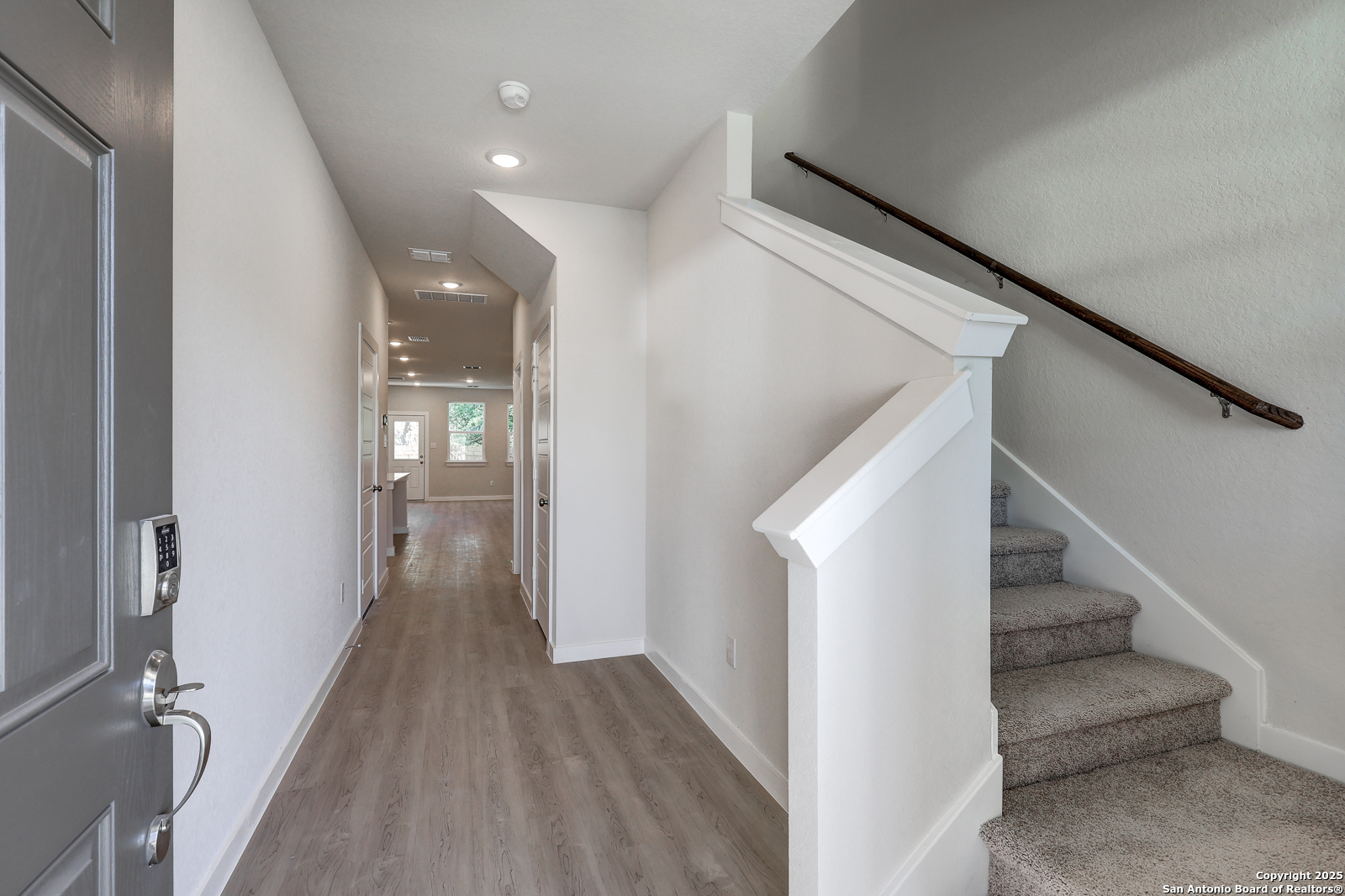 At the heart of the Hawthorne Plan plan, you'll find a welcoming open kitchen with a convenient center island and a built-in pantry. The kitchen oversees a spacious dining area and an airy great room a few steps away. The luxurious owner's suite is adjacent, boasting a walk-in closet and a private bath. You'll also find a powder room on this floor. There are three bedrooms upstairs, one which can be optioned as a versatile loft space. An additional full bath rounds out this level. Additional home highlights and upgrades: White kitchen cabinets, quartz countertops and backsplash Luxury "wood-look" vinyl plank flooring in common areas Stainless-steel Whirlpool appliances Elite Water filtration system Soft water loop upgrade Cultured marble countertops and modern rectangular sinks in bathrooms Kohler plumbing fixtures Landscape package with full sprinkler system Keyless entry Garage door opener with two remotes Exceptional included features, such as our Century Home Connect smart home package and more