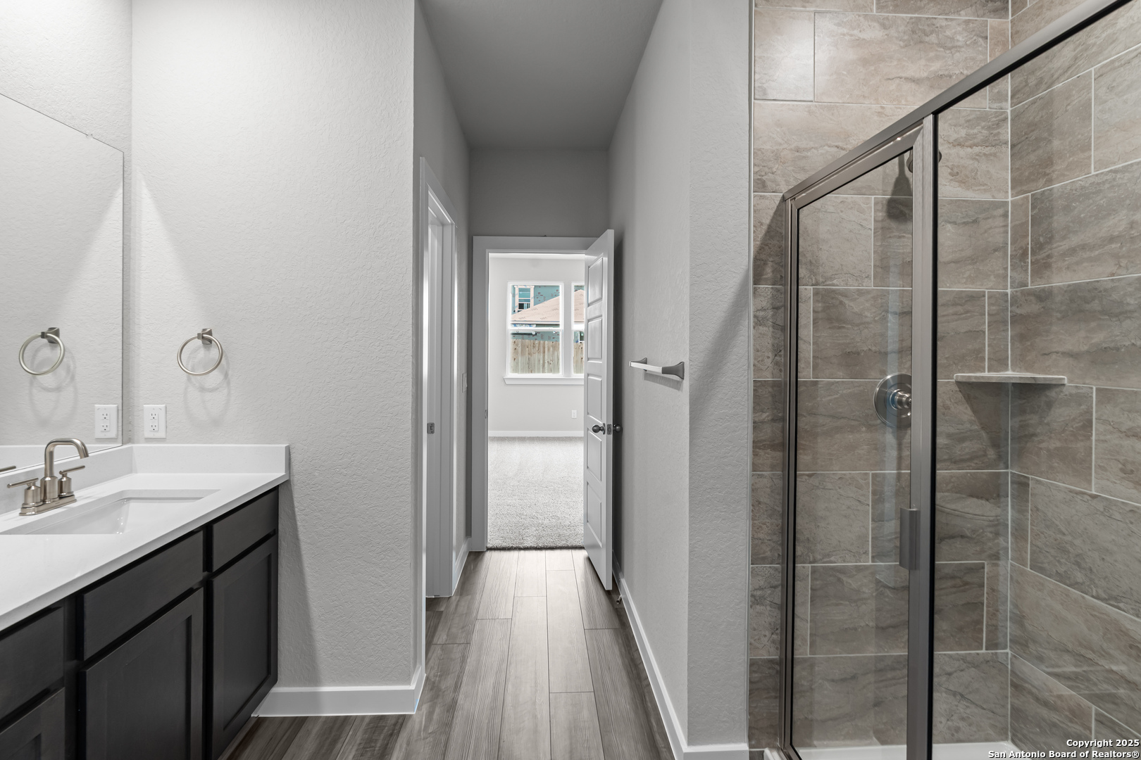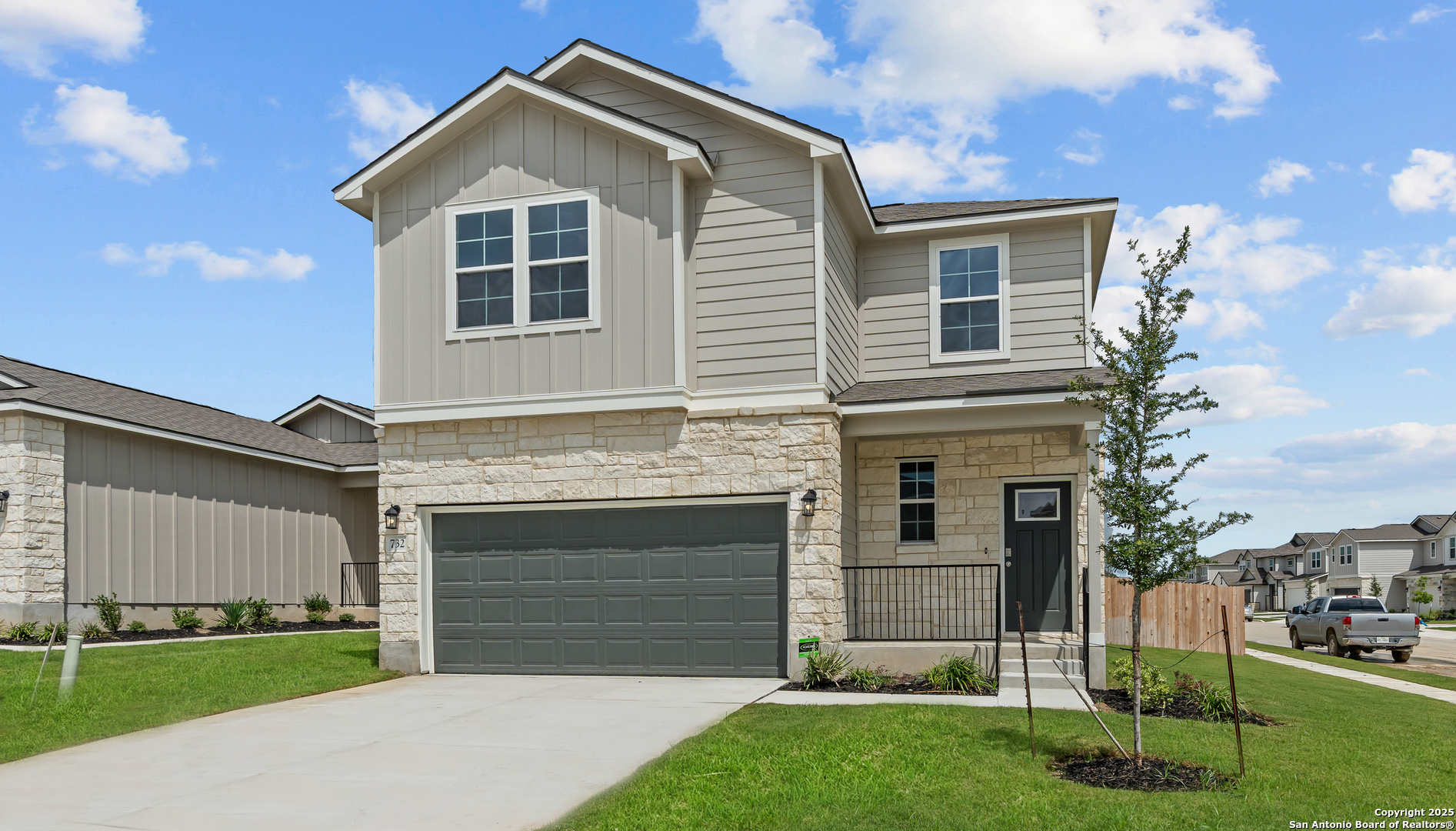 Spacious Design: This open-concept floorplan is thoughtfully crafted to complement any lifestyle. At its heart is a spacious, upgraded kitchen with gas appliances, a generous pantry, a dedicated dining area, and a large island that doubles as a central gathering space. Thoughtful Lifestyle Options: Homeowners will appreciate the privacy of having all secondary bedrooms upstairs, while the primary suite remains conveniently located on the main floor. The upstairs loft adds flexible space-ideal for a game room, home office, or entertainment area. Luxurious Owner's Retreat: The primary suite offers a spa-like retreat with a spacious walk-in shower, dual sinks, and a large walk-in closet. For added convenience, the laundry room is located just outside the entry. Schedule a tour to visit 732 Langston Lane, situated in the desirable community of Highland Ridge, in the heart of New Braunfels, with easy access to top-rated Comal ISD schools, shopping, and entertainment! Smart home package includes front door lock, kitchen and front lights, and thermostat. Design center available for customized options on a new build. VA Buyers $1 earnest money & closing costs covered Zipp Family Sport Park Opening Soon! 21 Fields for soccer, baseball, softball, pickle ball, volleyball, lacrosse and more. The park will also feature walking trails, batting cages, a splash pad, a playground, picnic tables, an amphitheater and some retail amenities. 3.5 acre amenity park has been set aside for the community.