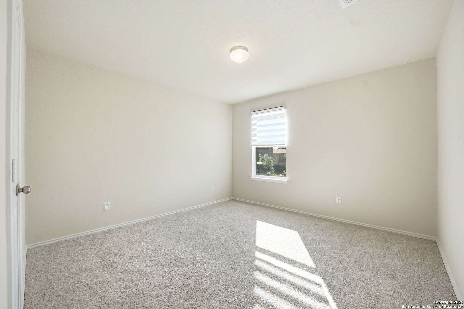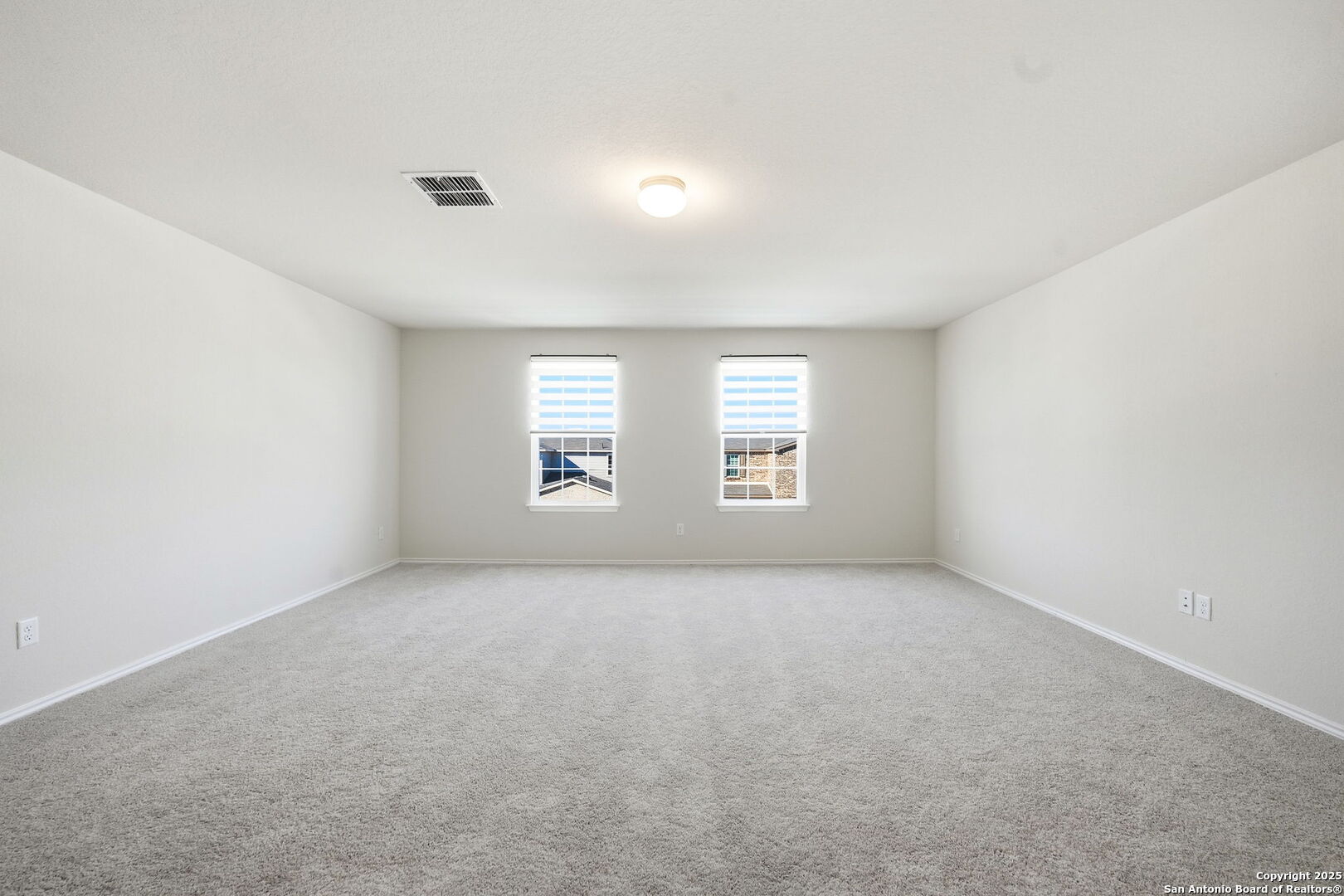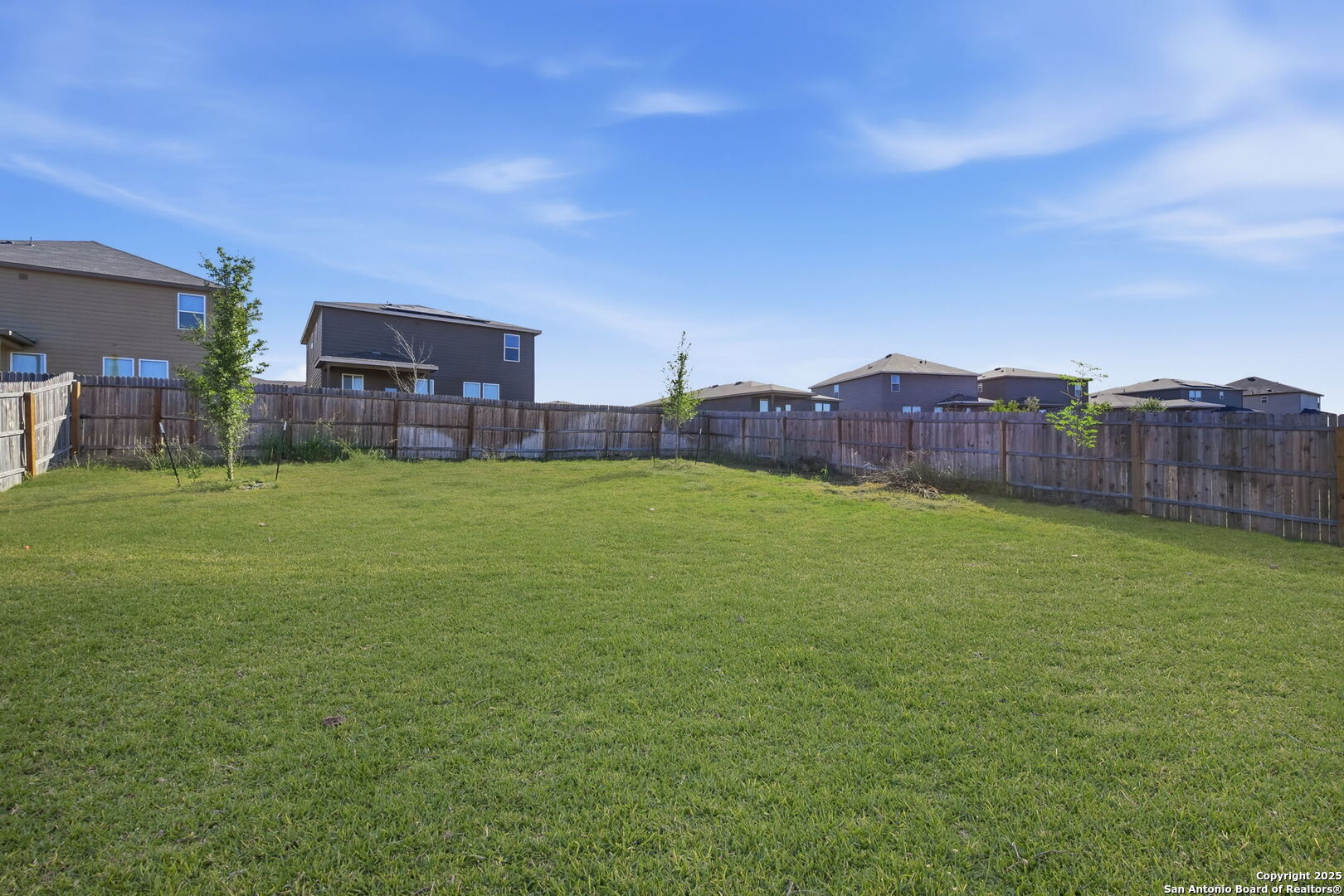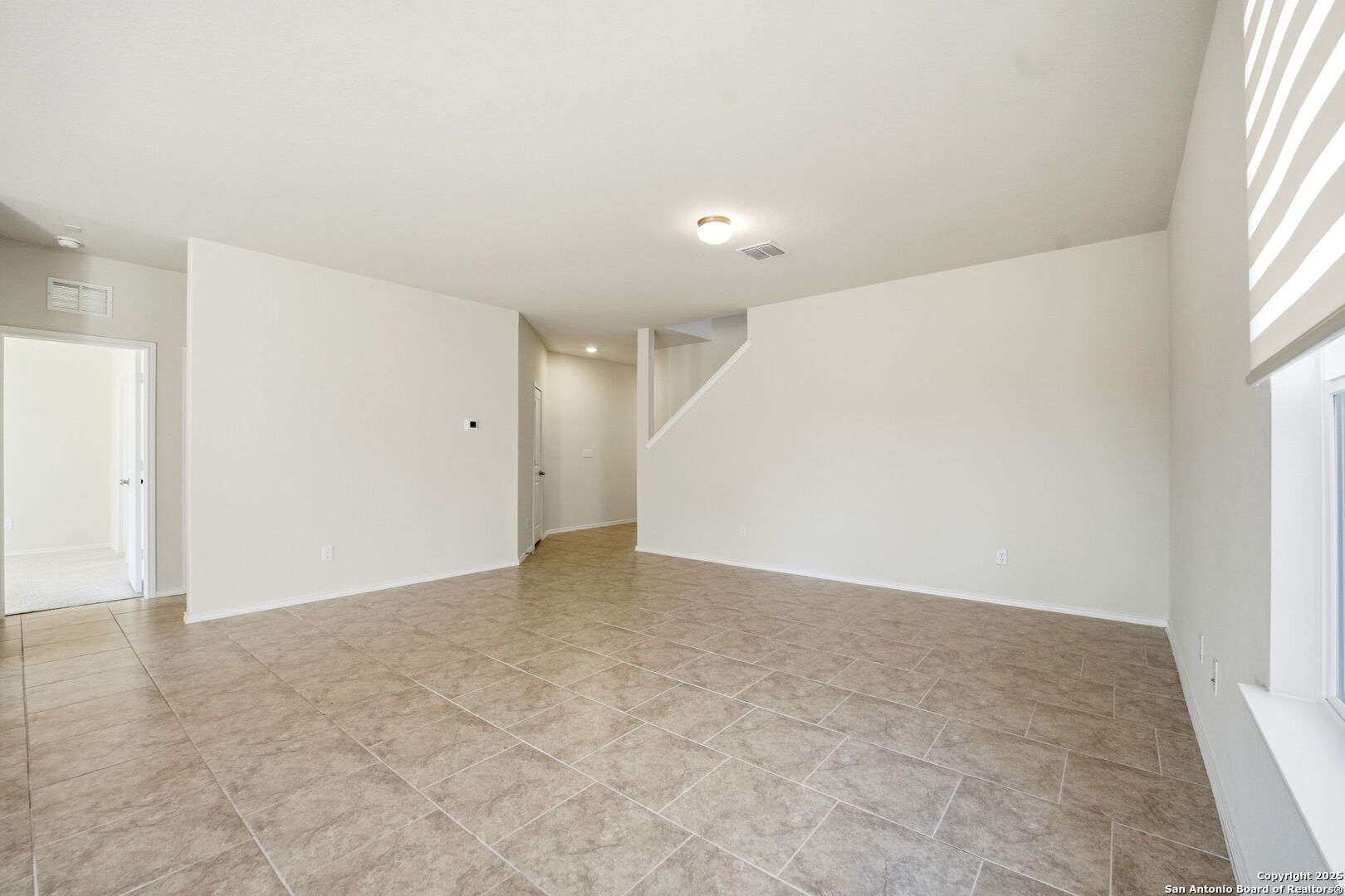 Newer build in the Cinco Lake community, this thoughtfully designed home blends modern style with everyday functionality. The open floor plan highlights recessed lighting, elegant custom blinds in the living area, and rich dark cabinetry paired with granite countertops and stainless steel appliances. A spacious kitchen island adds extra seating and prep space, creating a seamless setting for both cooking and entertaining. A flexible room on the first floor is ideal for a home office or creative studio, while the primary suite on the main level includes a full bath and walk-in closet. Upstairs, a comfortable loft provides additional living space, complemented by a conveniently located laundry room. Additional enhancements include a water softener, gutters, and a fully fenced backyard designed for privacy and easy upkeep. Residents can enjoy community amenities such as a pool and neighborhood park. Located just minutes from Lackland Air Force Base, SeaWorld, and major destinations across San Antonio, with quick access to Loop 1604, shopping, dining, and entertainment.