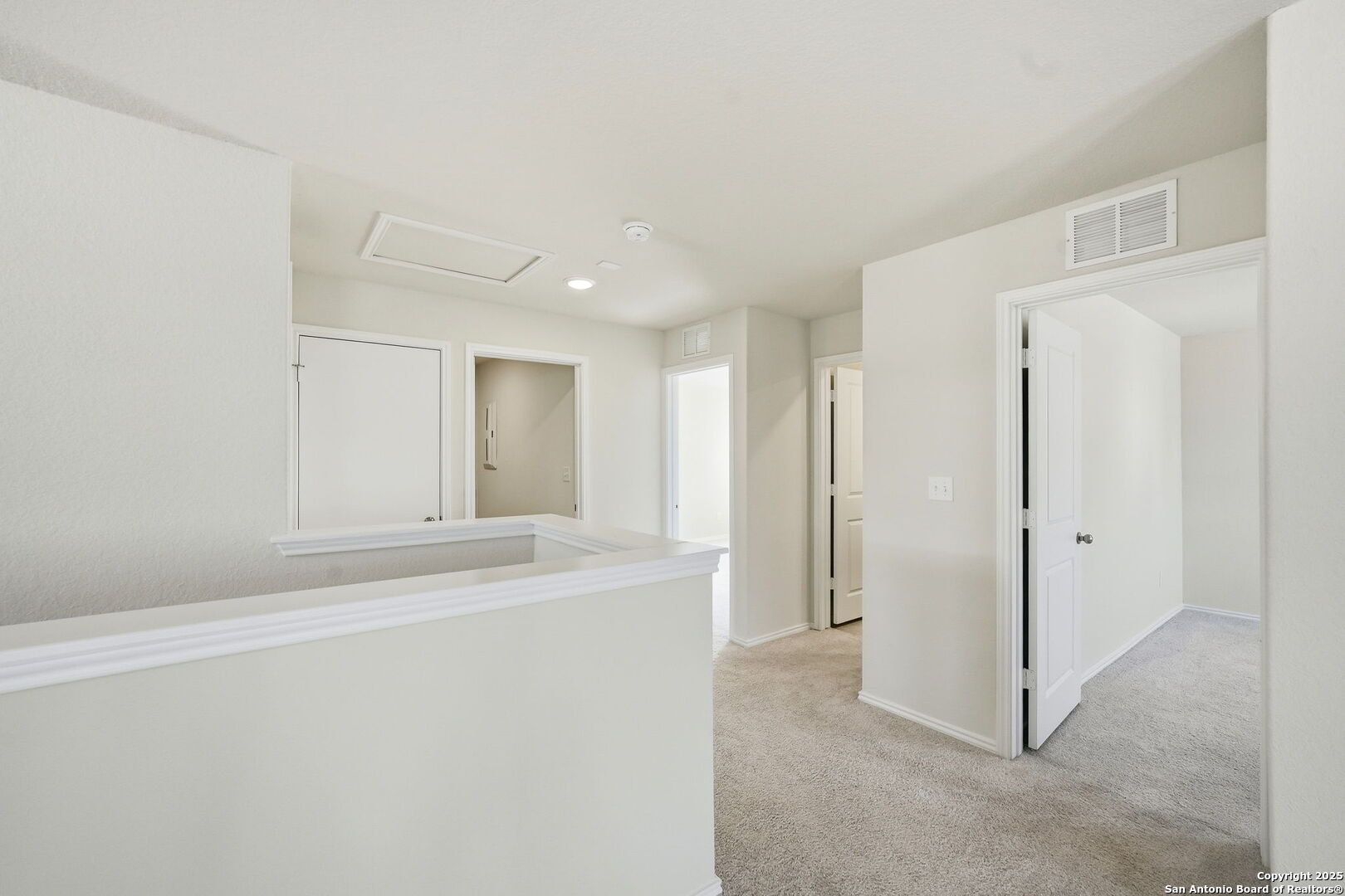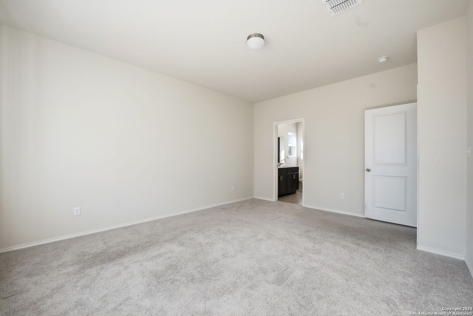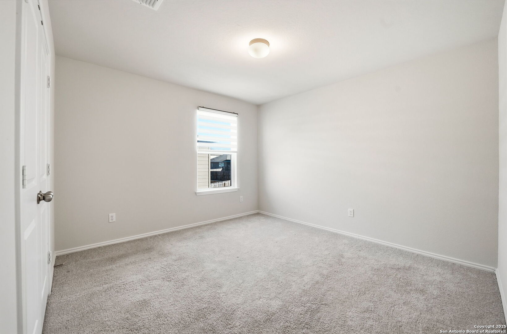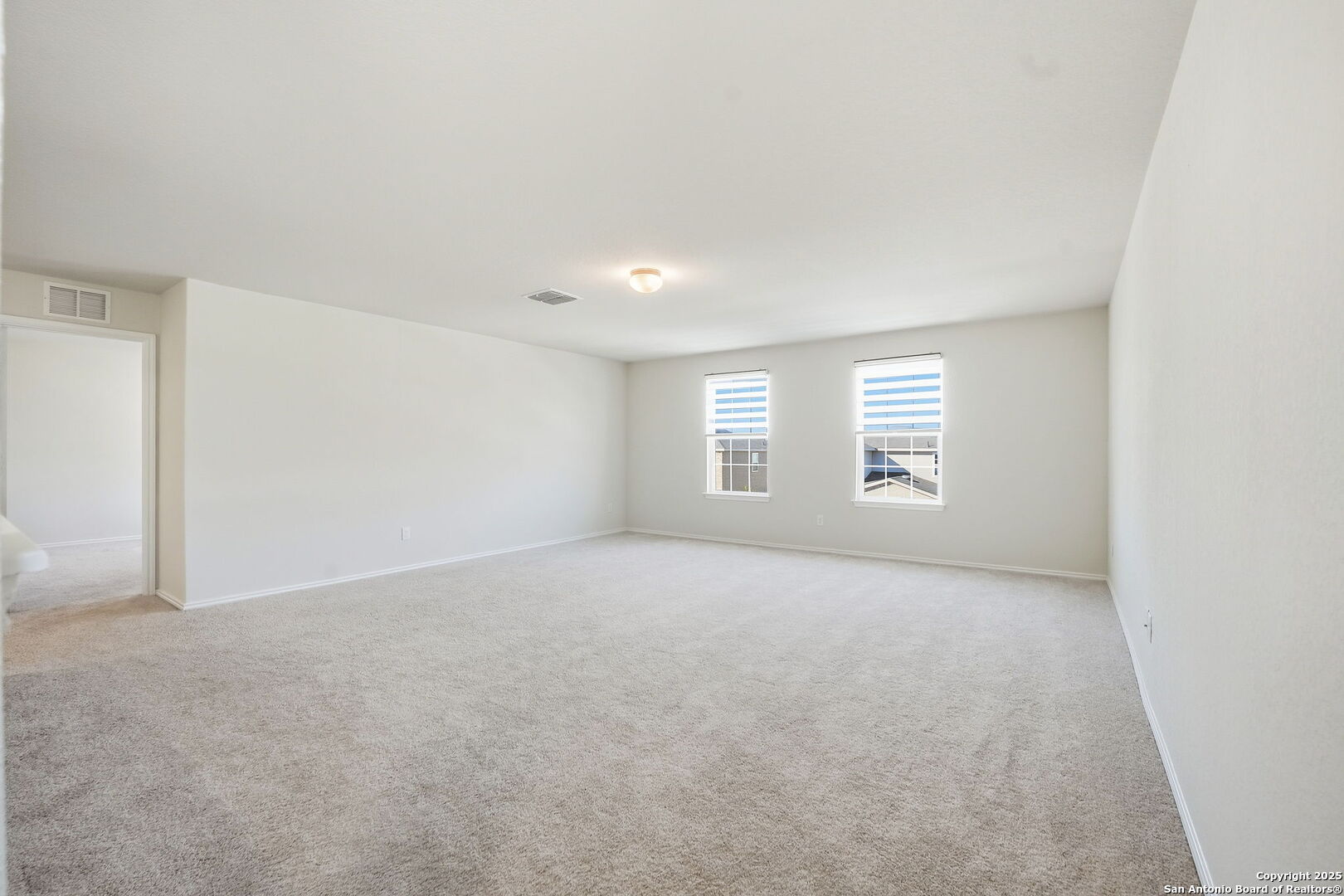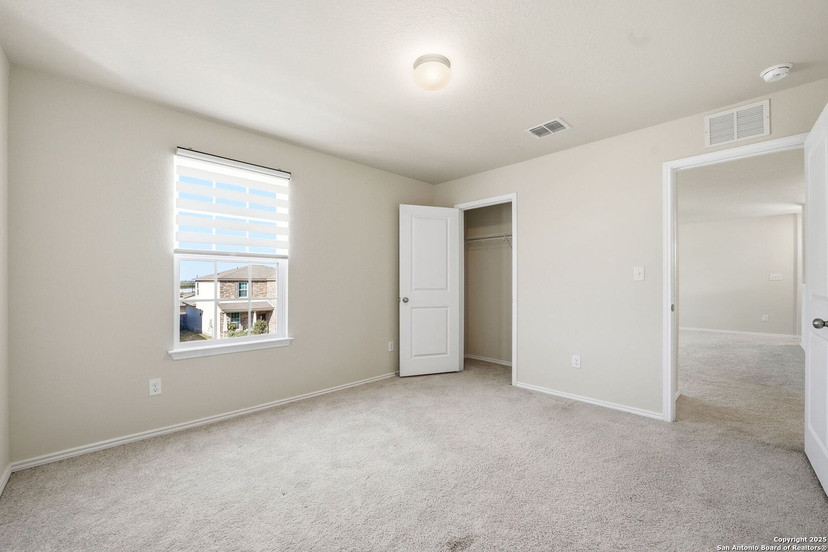 Newer build in the Cinco Lake community, this thoughtfully designed home blends modern style with everyday functionality. The open floor plan highlights recessed lighting, elegant custom blinds in the living area, and rich dark cabinetry paired with granite countertops and stainless steel appliances. A spacious kitchen island adds extra seating and prep space, creating a seamless setting for both cooking and entertaining. A flexible room on the first floor is ideal for a home office or creative studio, while the primary suite on the main level includes a full bath and walk-in closet. Upstairs, a comfortable loft provides additional living space, complemented by a conveniently located laundry room. Additional enhancements include a water softener, gutters, and a fully fenced backyard designed for privacy and easy upkeep. Residents can enjoy community amenities such as a pool and neighborhood park. Located just minutes from Lackland Air Force Base, SeaWorld, and major destinations across San Antonio, with quick access to Loop 1604, shopping, dining, and entertainment.