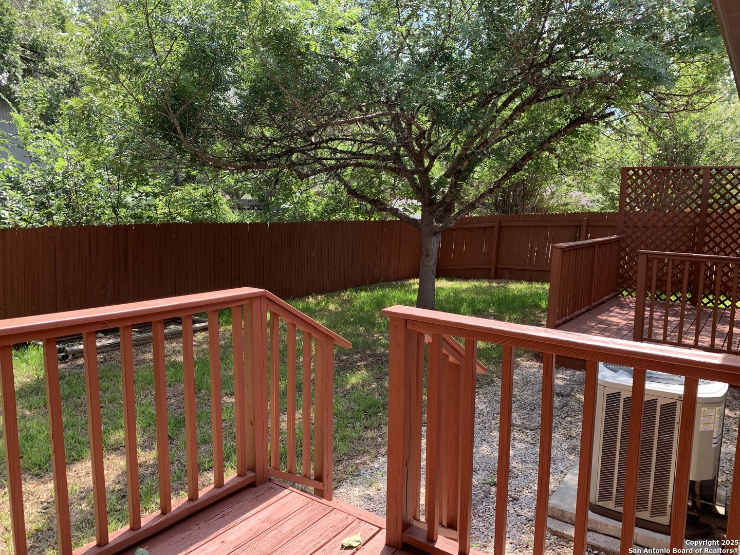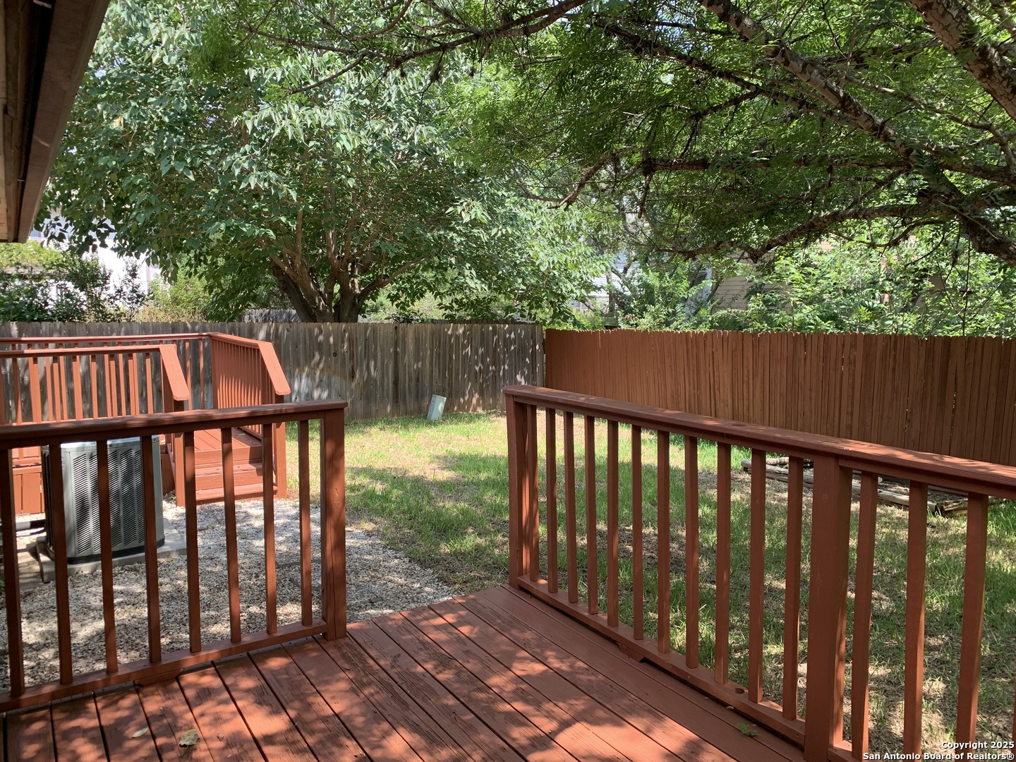 Take a look at this move-in ready rental home on a corner lot in Hunters Chase. Open floor plan with living room / dining room combo. Island kitchen with plenty of cabinets and counters and breakfast room with access to one of the decks and the backyard. Primary suite with full bathroom, walk in closet and access to the 2nd deck and backyard. Ring Doorbell, Google Fiber Internet. Community pools and playgrounds. Freshly planted grass in backyard. Full sprinkler system. Greenspace and wooded trails in neighborhood within walking distance.