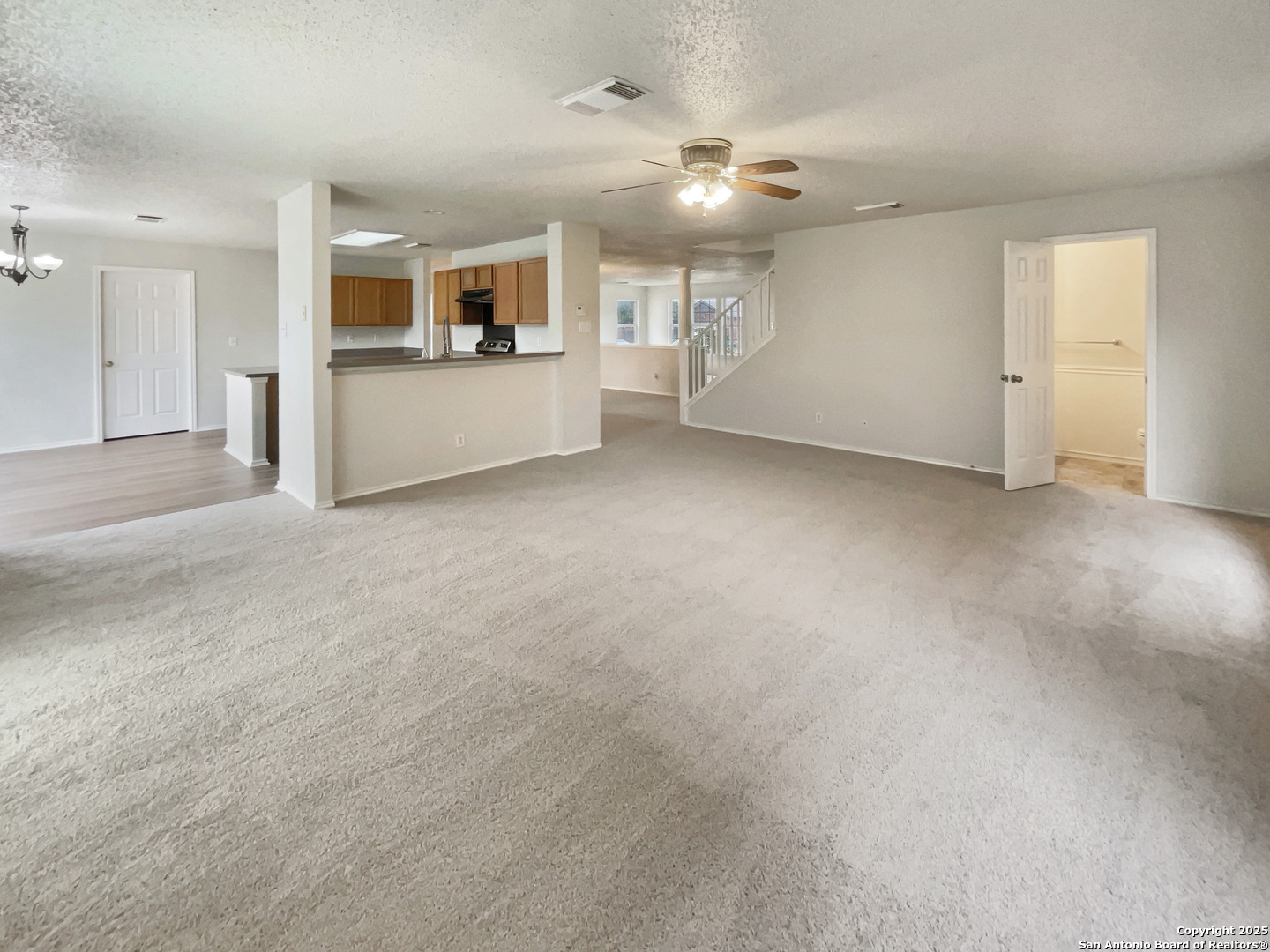 Welcome to 7327 Caddington Drive, a beautifully updated 4-bedroom, 2.5-bath home offering over 3,200 square feet of living space in the desirable Northampton community! This move-in-ready gem boasts fresh interior paint and new flooring throughout (Nov 2025), giving it a clean, modern feel from the moment you walk in. Enjoy three large living areas, including a versatile upstairs loft and a formal dining room perfect for family gatherings or entertaining. The open-concept kitchen flows easily into the main living space, creating an inviting atmosphere filled with natural light. Energy savings come easy with paid-off solar panels, keeping utility costs low year-round. The primary suite features ample space for a sitting area and an en-suite bath with a walk-in shower and soaking tub. All secondary bedrooms are generously sized, offering room for everyone. Outside, you'll find a spacious backyard ready for your personal touch-ideal for outdoor dining, play, or pets. Conveniently located near schools, shopping, and Randolph AFB, this home offers the perfect combination of comfort, efficiency, and space.