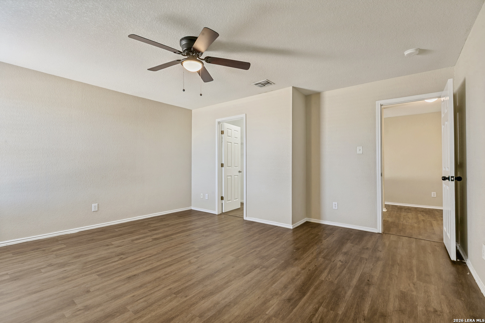 Spacious rental has three bedrooms and a loft. Lots of windows, big closets, wood laminate flooring throughout, big backyard, covered patio, refrigerator included. Nice neighborhood with jogging trail. Close to Lackland AFB and easy access to Loop 410.