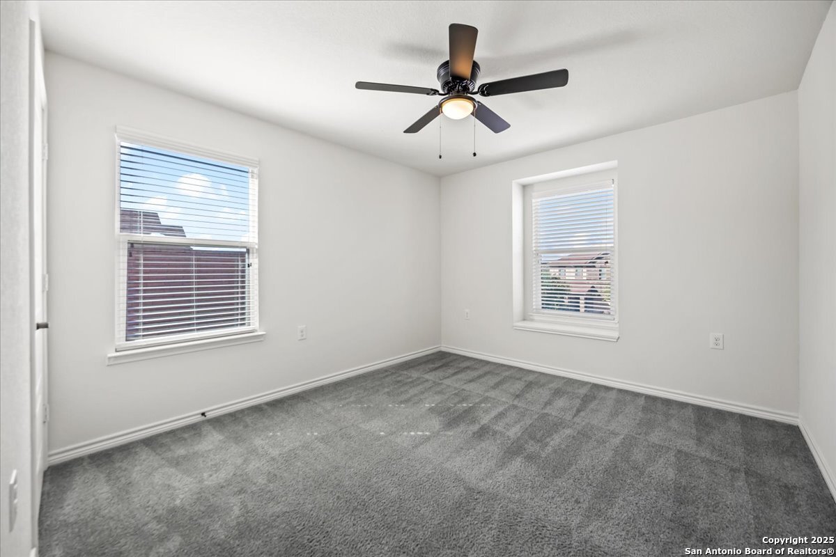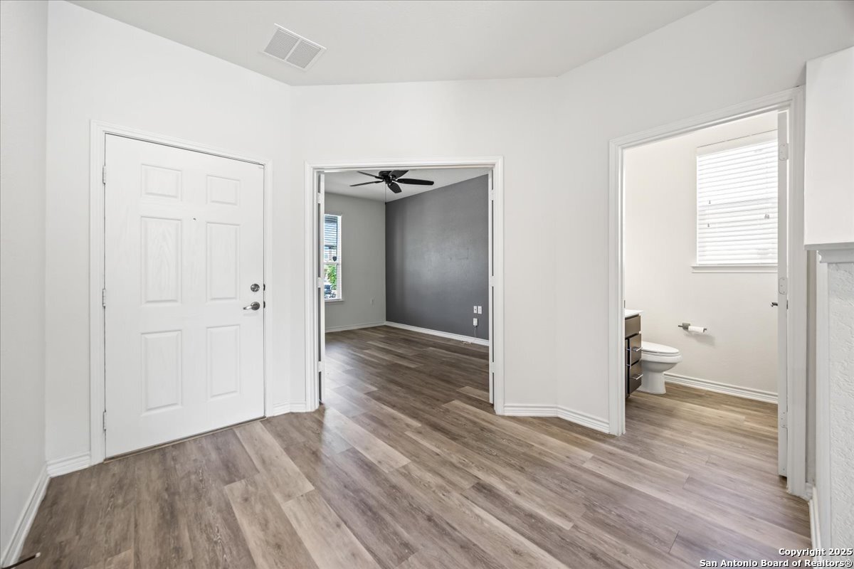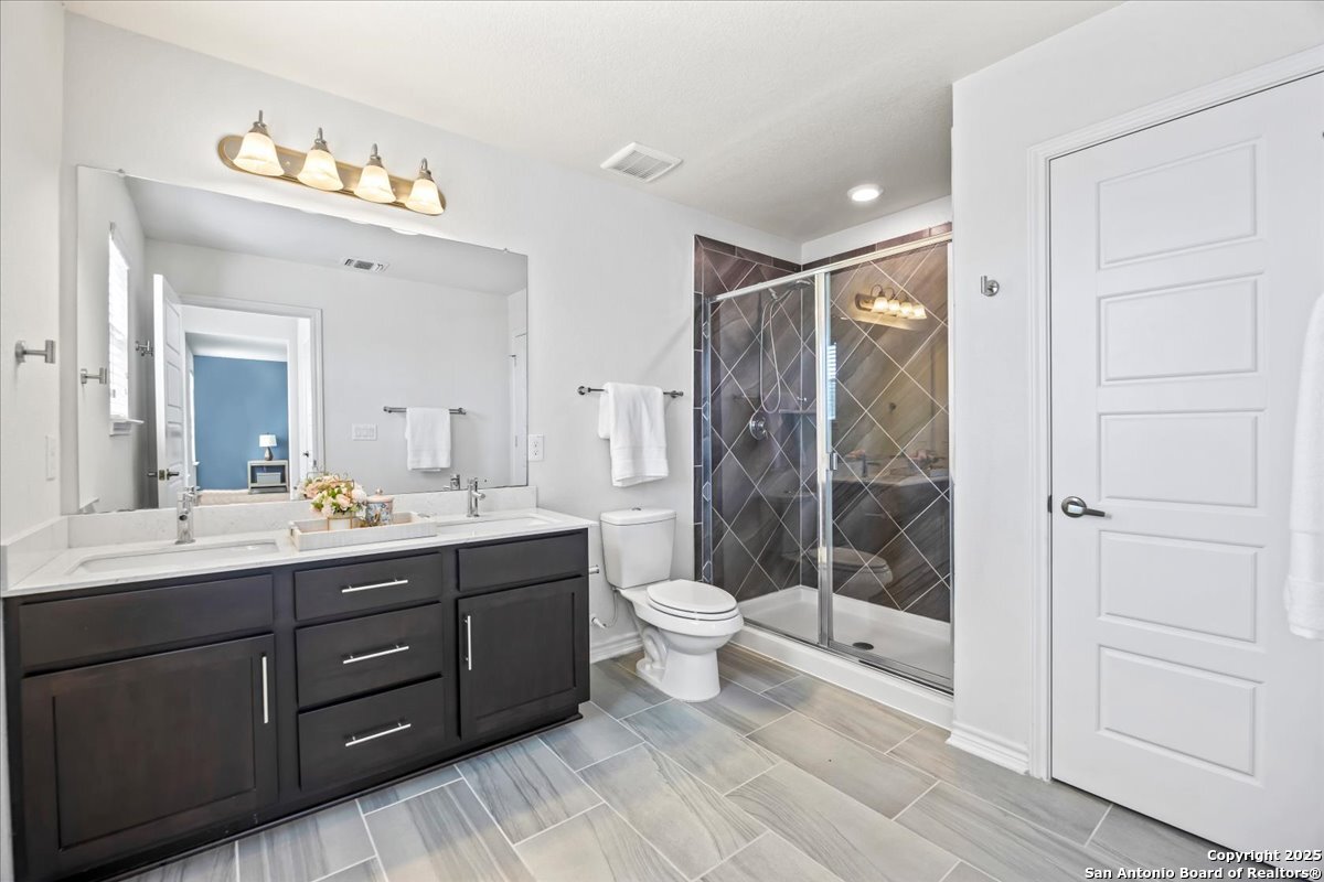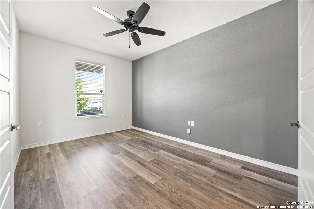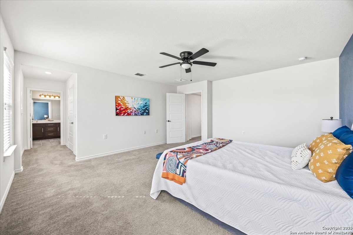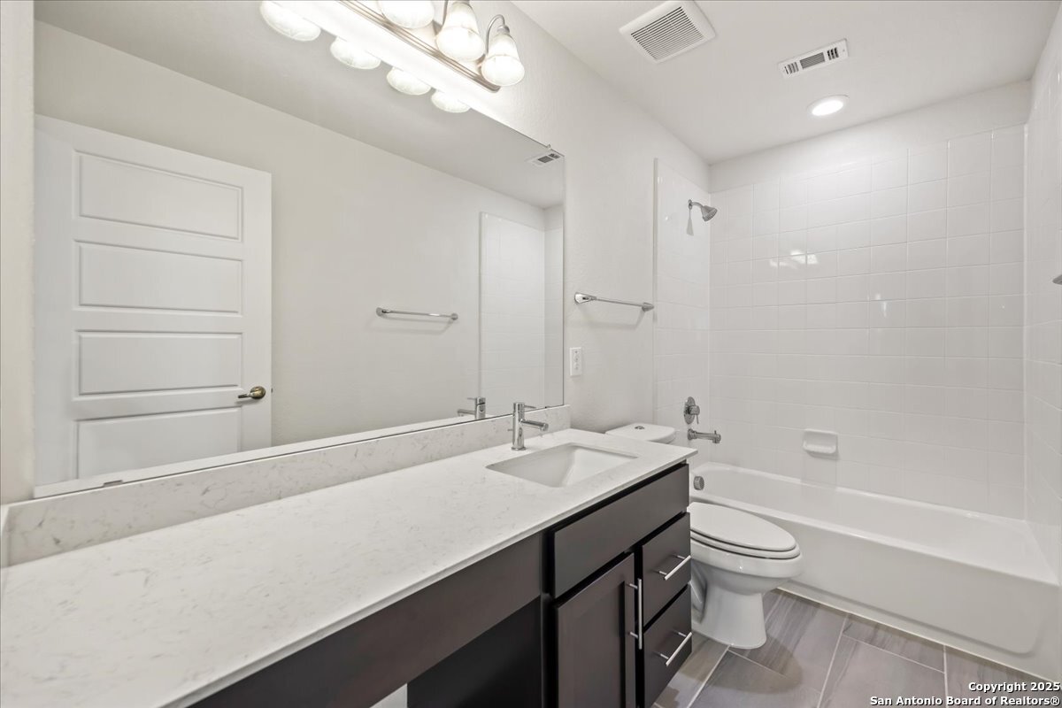 This well-maintained home offers a practical and flexible layout with three bedrooms, two and a half bathrooms, a dedicated office on the main level, and a spacious loft upstairs-ideal as a second living area, game room, or guest space. Natural light fills the home, highlighting its clean design and upgraded features. The kitchen and bathrooms feature upgraded quartz countertops, offering both durability and a modern touch. Luxury vinyl plank flooring throughout the first level adds comfort and ease of maintenance. The oversized primary bedroom provides a quiet retreat, with enough space for a sitting area or additional furniture. The adjoining bathroom includes a walk-in closet and a stand-alone shower in the owner's retreat. The garage has been finished with epoxy flooring, creating a polished and functional space for storage or automotive work. Conveniently located near major roads in San Antonio, this home offers quick access to shopping, schools, and daily essentials. Welcome home!