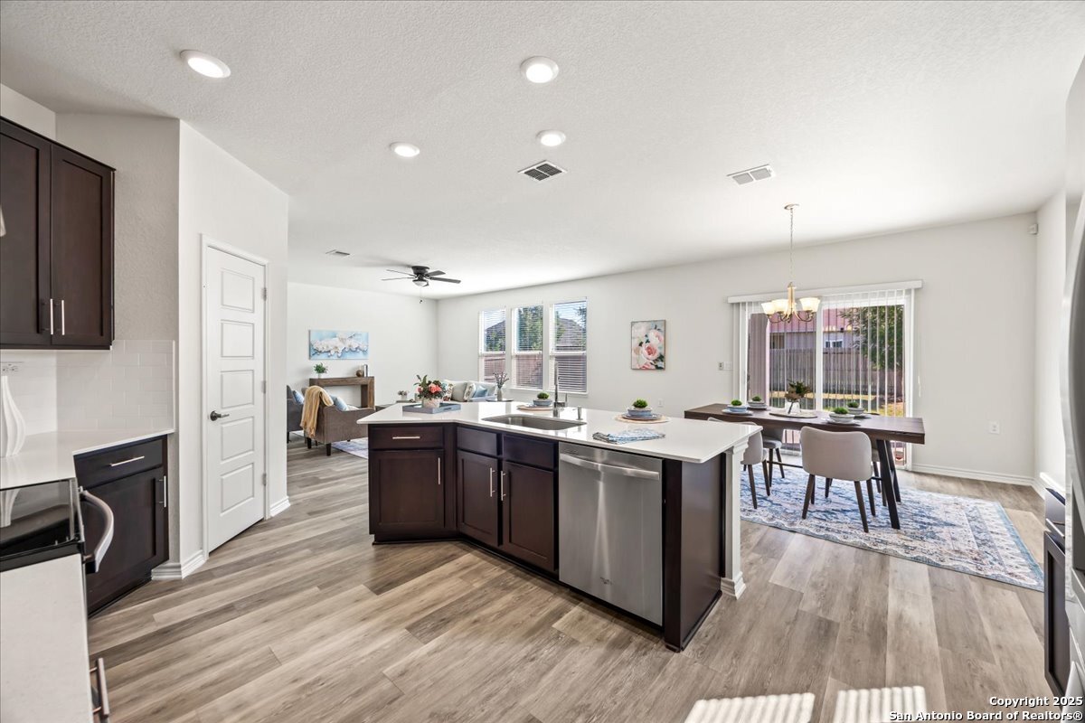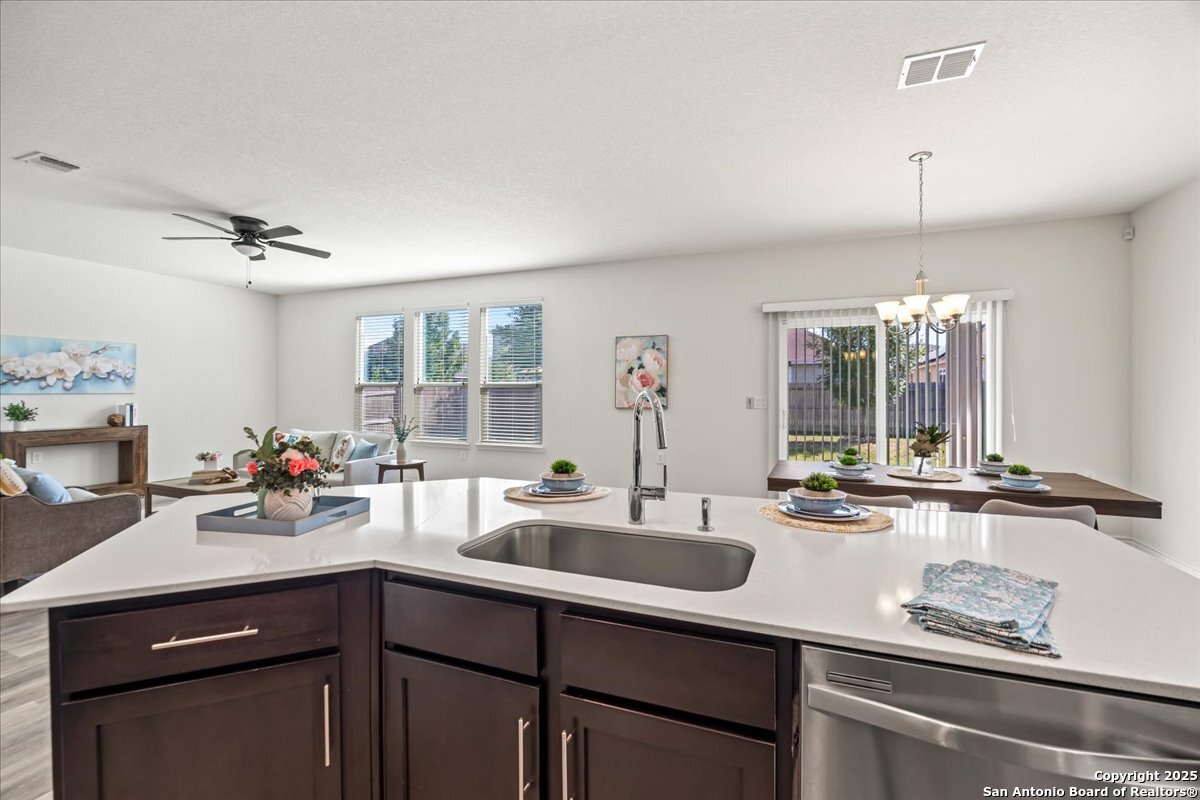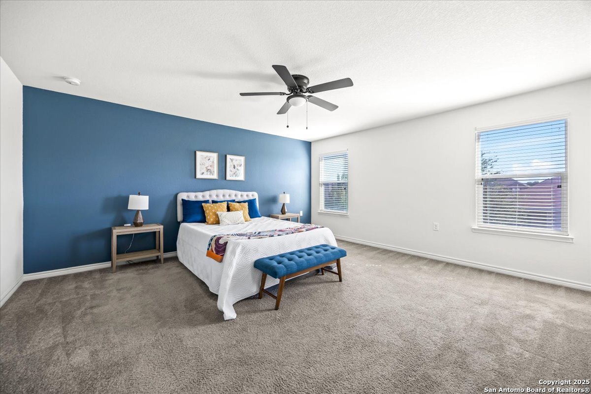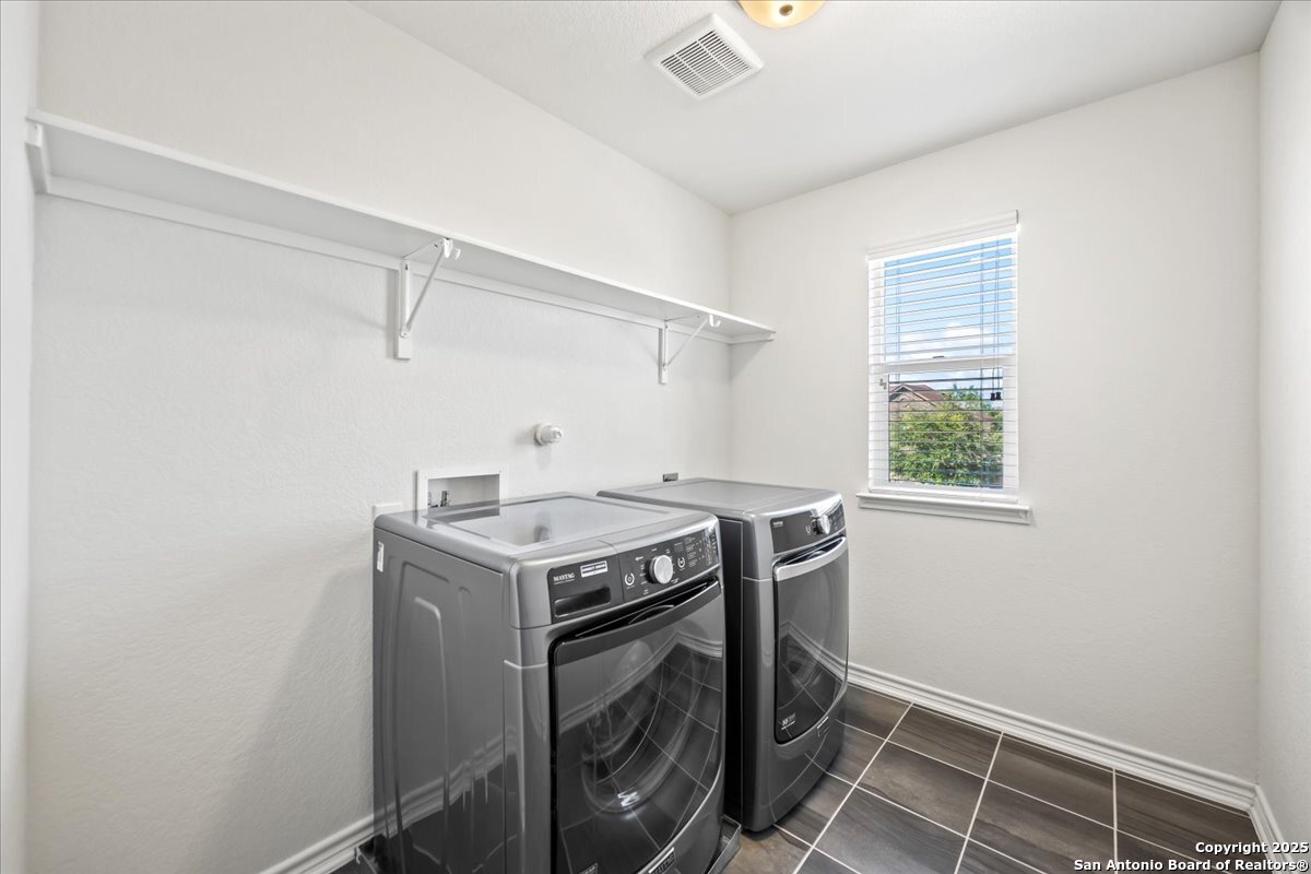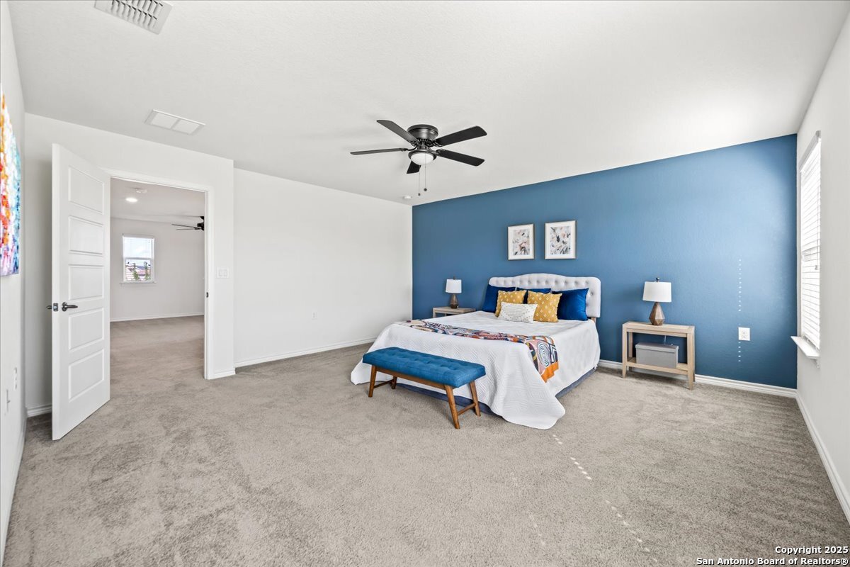 This well-maintained home offers a practical and flexible layout with three bedrooms, two and a half bathrooms, a dedicated office on the main level, and a spacious loft upstairs-ideal as a second living area, game room, or guest space. Natural light fills the home, highlighting its clean design and upgraded features. The kitchen and bathrooms feature upgraded quartz countertops, offering both durability and a modern touch. Luxury vinyl plank flooring throughout the first level adds comfort and ease of maintenance. The oversized primary bedroom provides a quiet retreat, with enough space for a sitting area or additional furniture. The adjoining bathroom includes a walk-in closet and a stand-alone shower in the owner's retreat. The garage has been finished with epoxy flooring, creating a polished and functional space for storage or automotive work. Conveniently located near major roads in San Antonio, this home offers quick access to shopping, schools, and daily essentials. Welcome home!