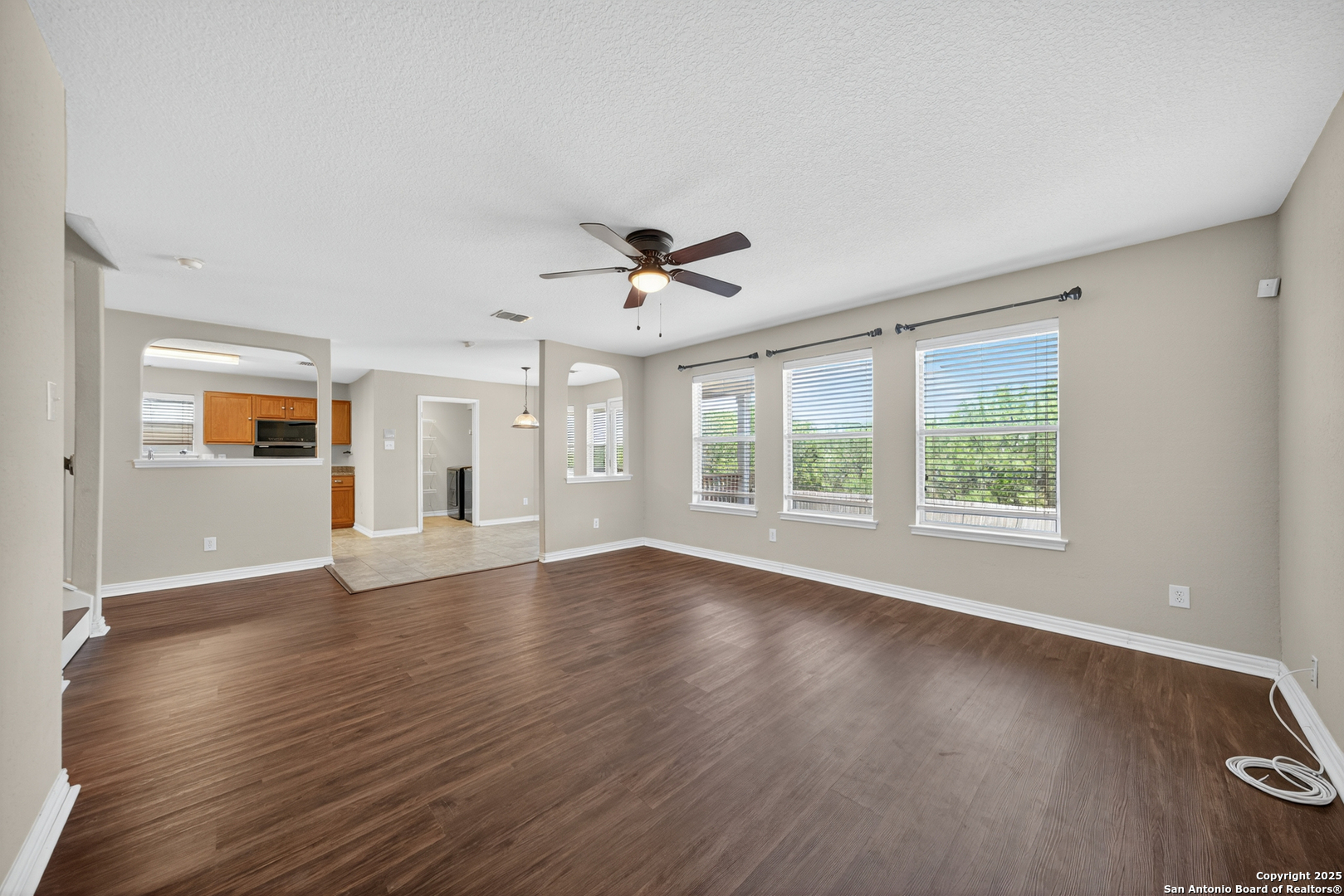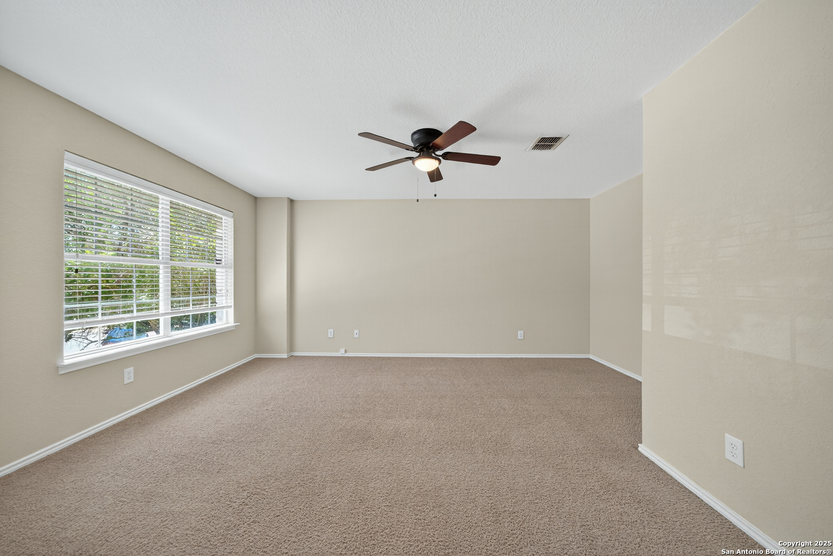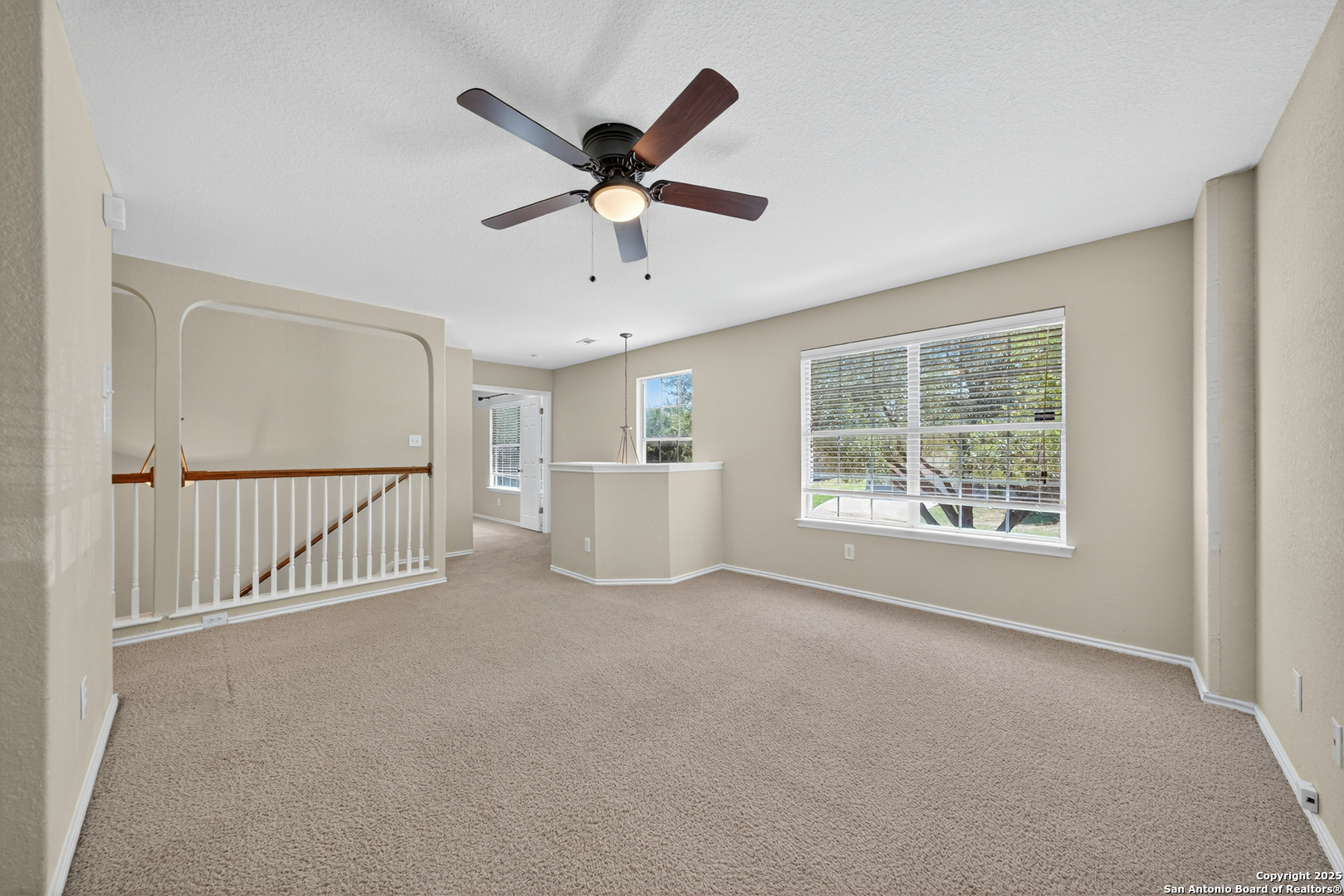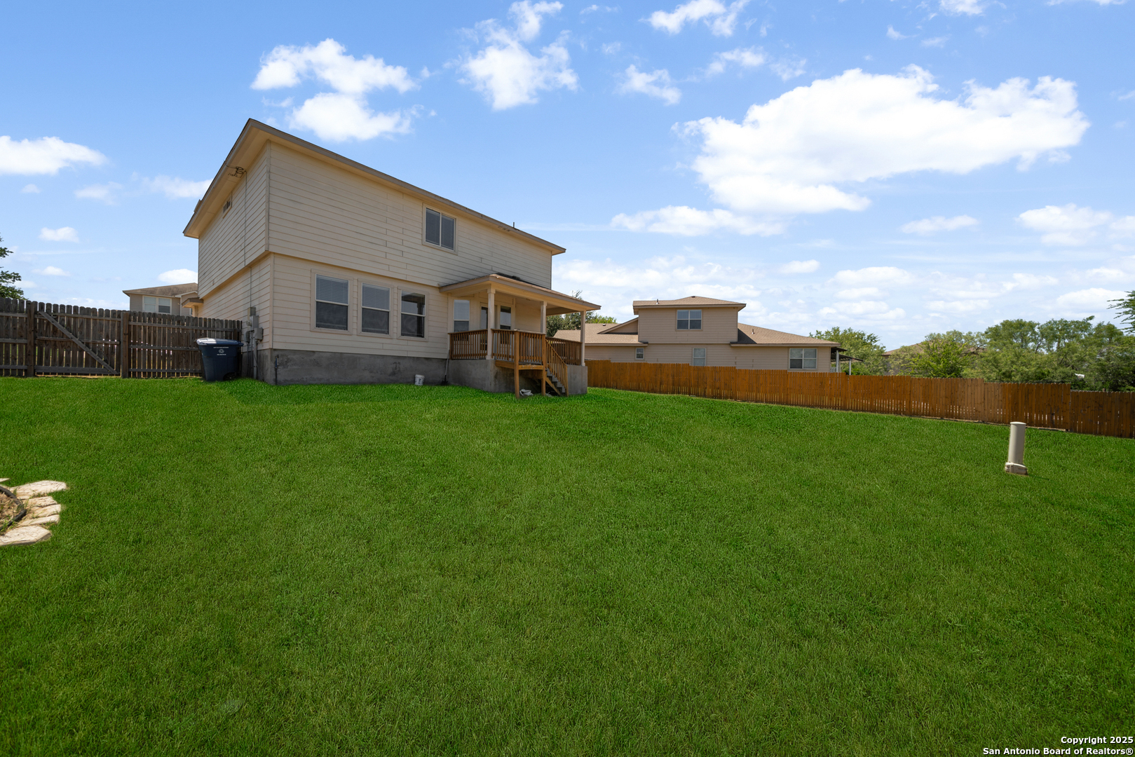 Details about a beautifully maintained, move-in ready home that I believe might be of interest. Upon entering, you'll find a spacious living room that flows seamlessly into a separate dining room, perfect for entertaining. The kitchen is designed with ample counter and storage space, and features large bay windows in the eat-in area, providing abundant natural light. Upstairs, there's an oversized game room that offers incredible flexibility; it can easily be converted into a home gym, a media room, or a fantastic space for kids and guests. Outside, you can escape to a spacious covered wood deck that overlooks a large, private yard, ideal for relaxation and outdoor activities. The home is situated in a beautiful community that boasts a swimming facility, sports court, basketball court, a lovely park, and various other amenities for residents to enjoy. Additionally, its location offers great convenience, especially being close to Lackland AFB.